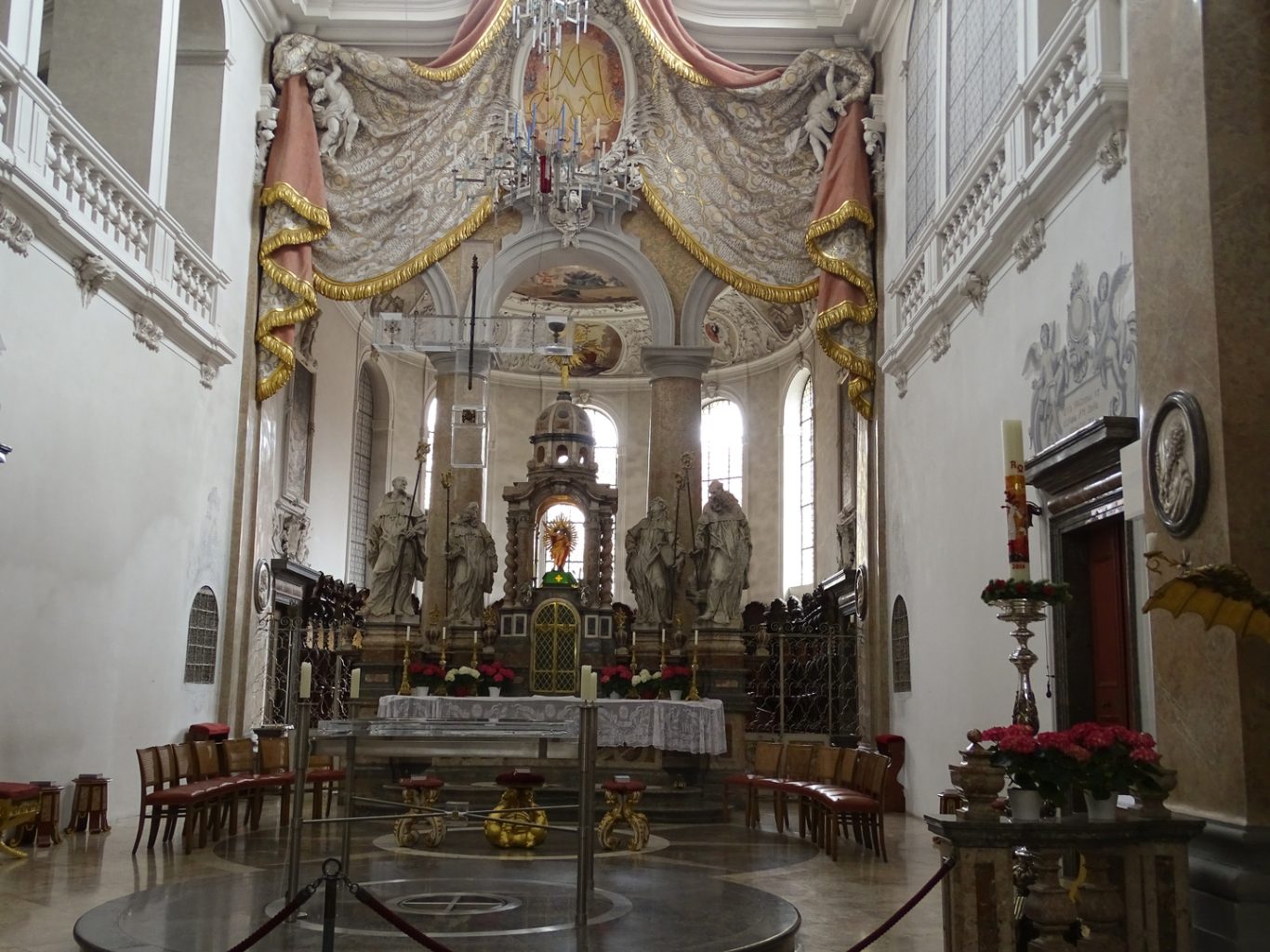 Nach einer Stippvisite am Lech, vorbei an schönen Votivbrunnen, Gasthaus- schildern und - Fassaden erreichten die erstaunten Besucher das geistige Juwel in Füssen, die Stadtpfarrkirche St. Mang. Die ehemalige Klosterkirche ist heute Pfarrkirche der Stadtpfarrei St. Mang.