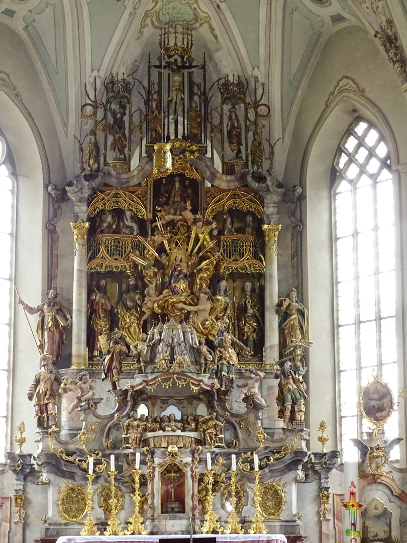 Nach einer Stippvisite am Lech, vorbei an schönen Votivbrunnen, Gasthaus- schildern und - Fassaden erreichten die erstaunten Besucher das geistige Juwel in Füssen, die Stadtpfarrkirche St. Mang. Die ehemalige Klosterkirche ist heute Pfarrkirche der Stadtpfarrei St. Mang.