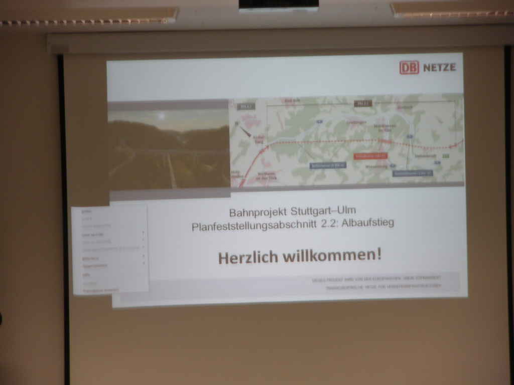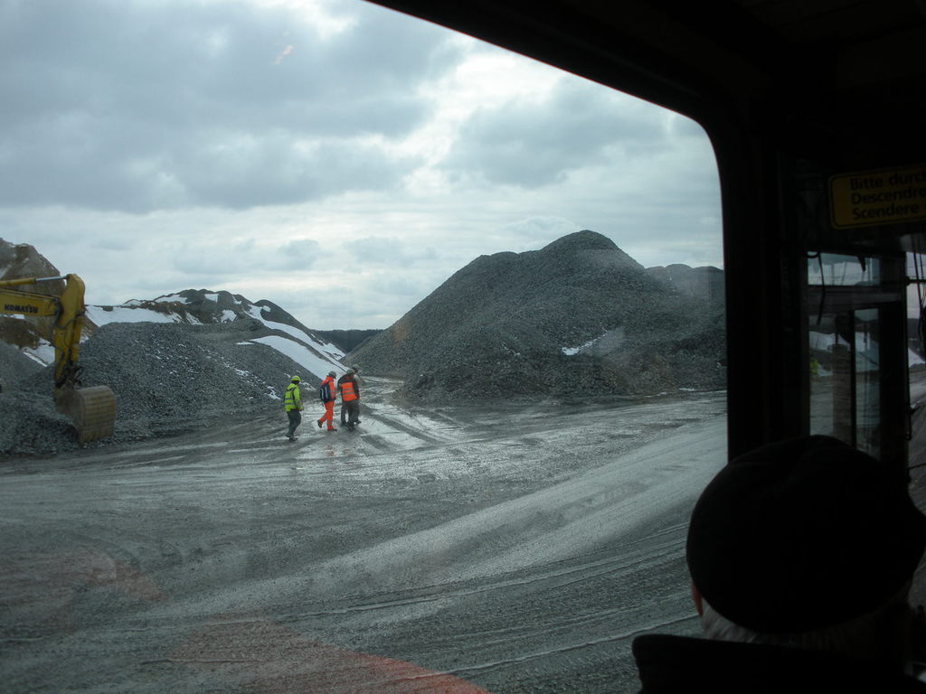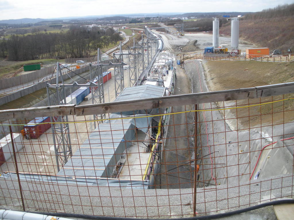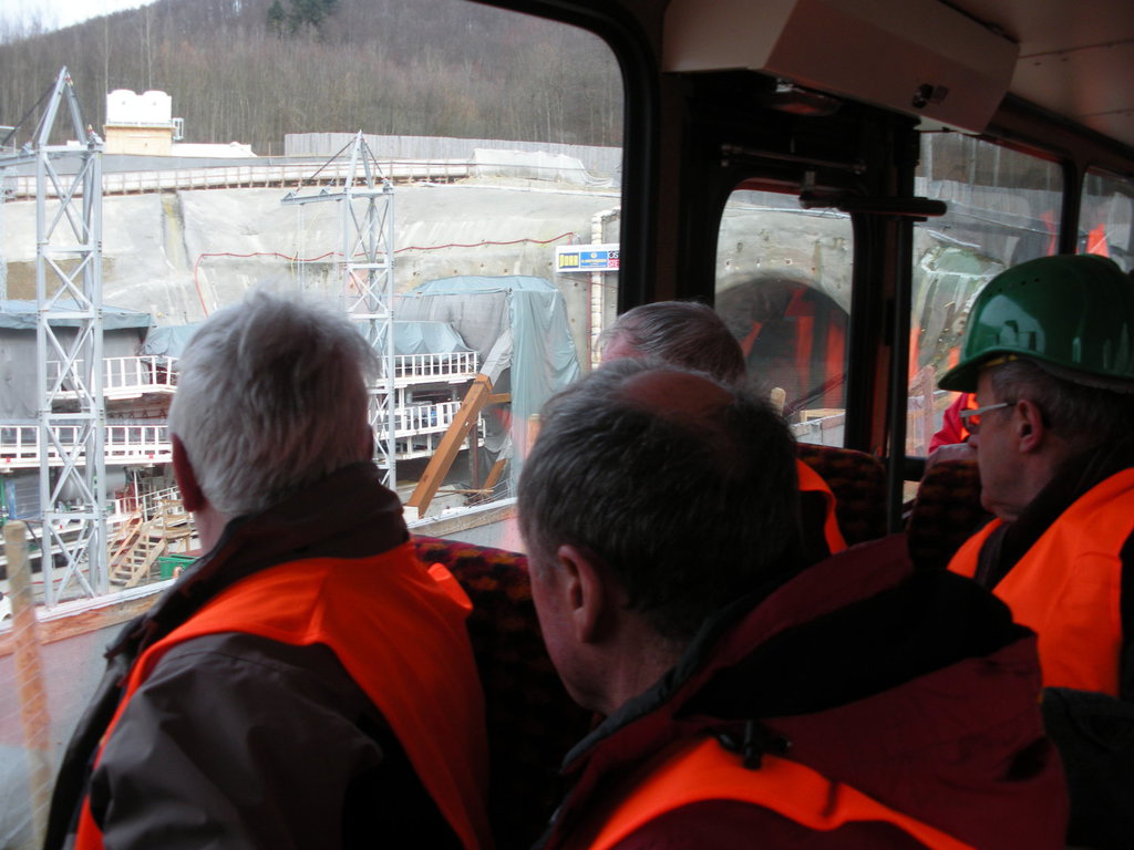 Ein Mitarbeiter der Pressestelle der „Bahnprojekt Stuttgart – Ulm e.V“ nahm uns zunächst freundlich in Empfang und sorgte im Ramen eines Diavortrages für unser notwendiges Grundverständnis zu den einzelnen baulichen Maßnahmen und ihrer Planung und Durchführung. Nunmehr ausgestattet mit dem notwendigen „Fachwissen“ begaben wir uns - ausgestattet mit Warnwesten und Schutzhelmen - mit dem Bus mitten hinein in das Baugeschehen auf die Baustraße zwischen Baggern, Kippladern und Abraumhalden auf eine etwa 3-stündige Besichtigungstour der Großbaustelle des Teilabschnittes „Steinbühltunnel“- eines der beiden großen Tunnelbauwerke des Albaufstiegs und wurden von unserem fürsorglichen Baustellenführer in die Welt der Baustellenlogistik und des Tunnelbaues eingeführt. Ein Blick auf das Tunnelportal Hohenstadt und den Zwischenangriff „Pfaffenäcker“ sowie die gigantische Tunnelbohrrmaschine , die sich mit einer Länge von über 100 m bei einer Tagesleistung von fünf Metern durch den Stollen fressen wird, veranschaulichte die Größe dieses Projekes auf eindrucksvolle Weise.