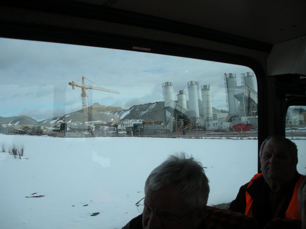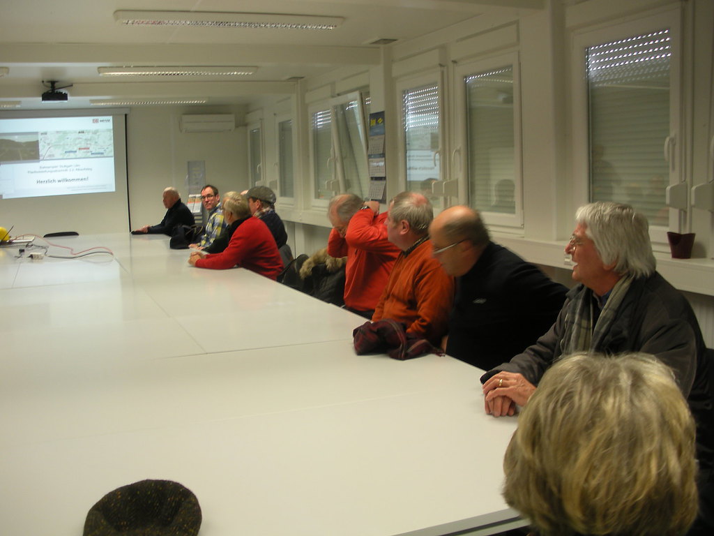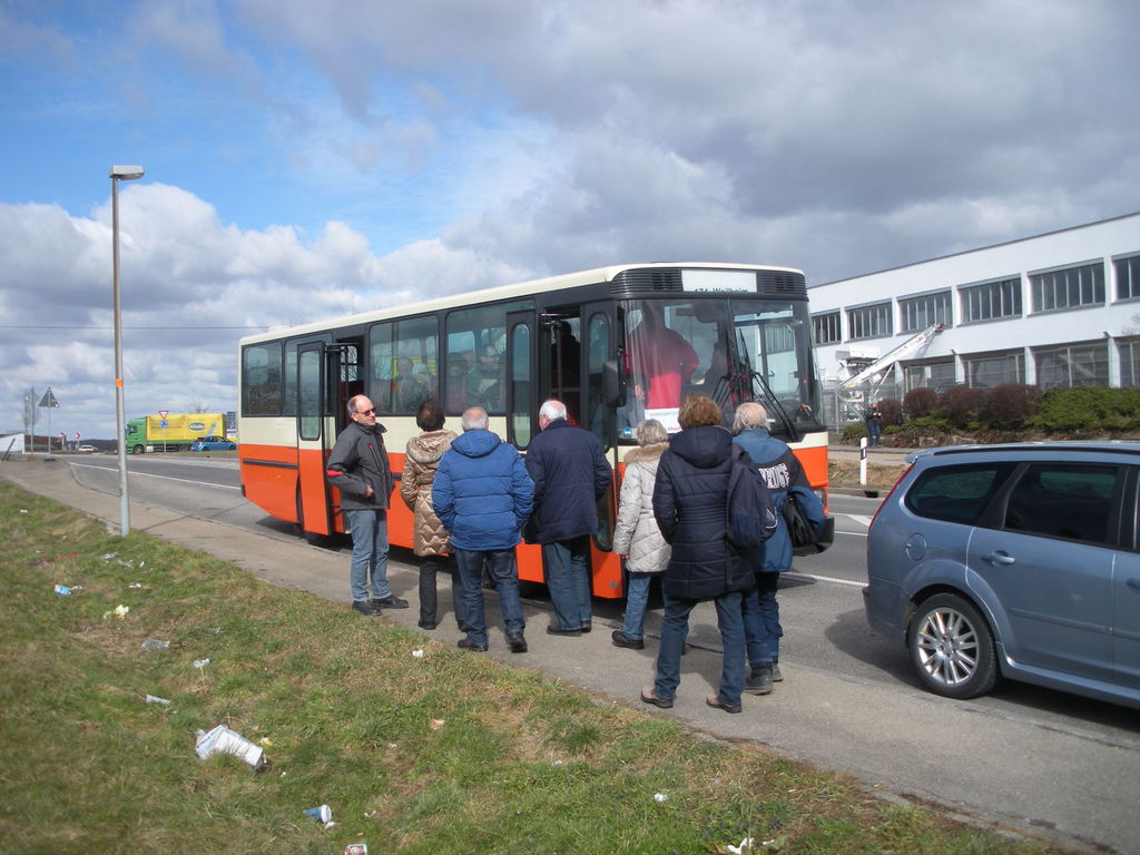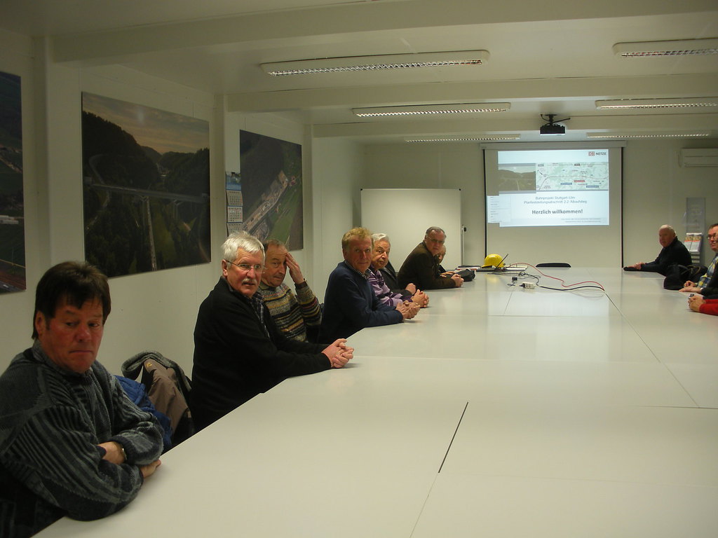 Max Herold war es zu verdanken, dass wir für den 5. März 2015 eine der gegenwärtig begehrtesten gleisbautechnischen Führungen in Europa erleben konnten und so machte sich eine stattliche Gruppe von Spurwechslern auf den Weg nach Aichelberg, wo bereits ein Bus bereit stand, der uns zum Standort des zentralen Baubüros brachte.