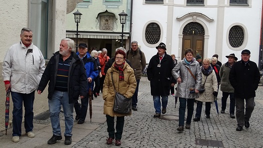 Am Dienstag, 26.04.2016 besuchte trotz widriger Wetterprognosen eine stattliche Zahl von Interessierten der Senioren-Gruppe "Spurwechsel" aus Ochsenhausen die geschichtlich bedeutende Stadt Füssen. Bei einem fachkundig geleiteten Rundgang informierte uns Herr Hense über Wissenswertes zu Füssens Geschichte und Geschichten. Bei gutem Wetter trafen wir uns im Zentrum und wanderten im Altstadtkern - vorbei an tollen Fassaden und altertümlichen, vom Krieg verschonten Gebäuden - zum Franziskanerkloster und der Kirche St.Stephan.