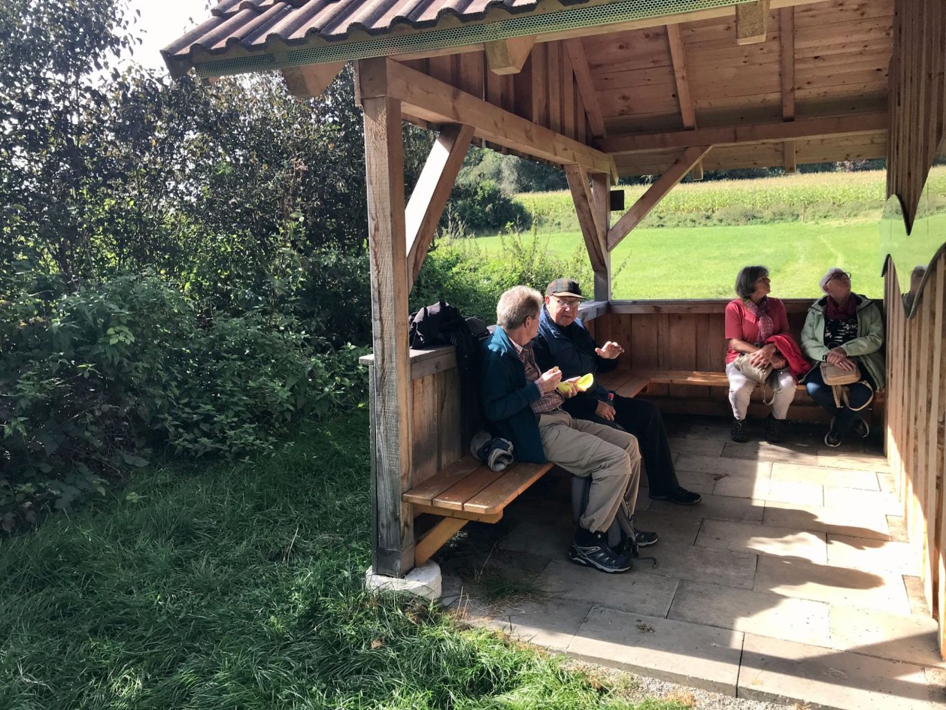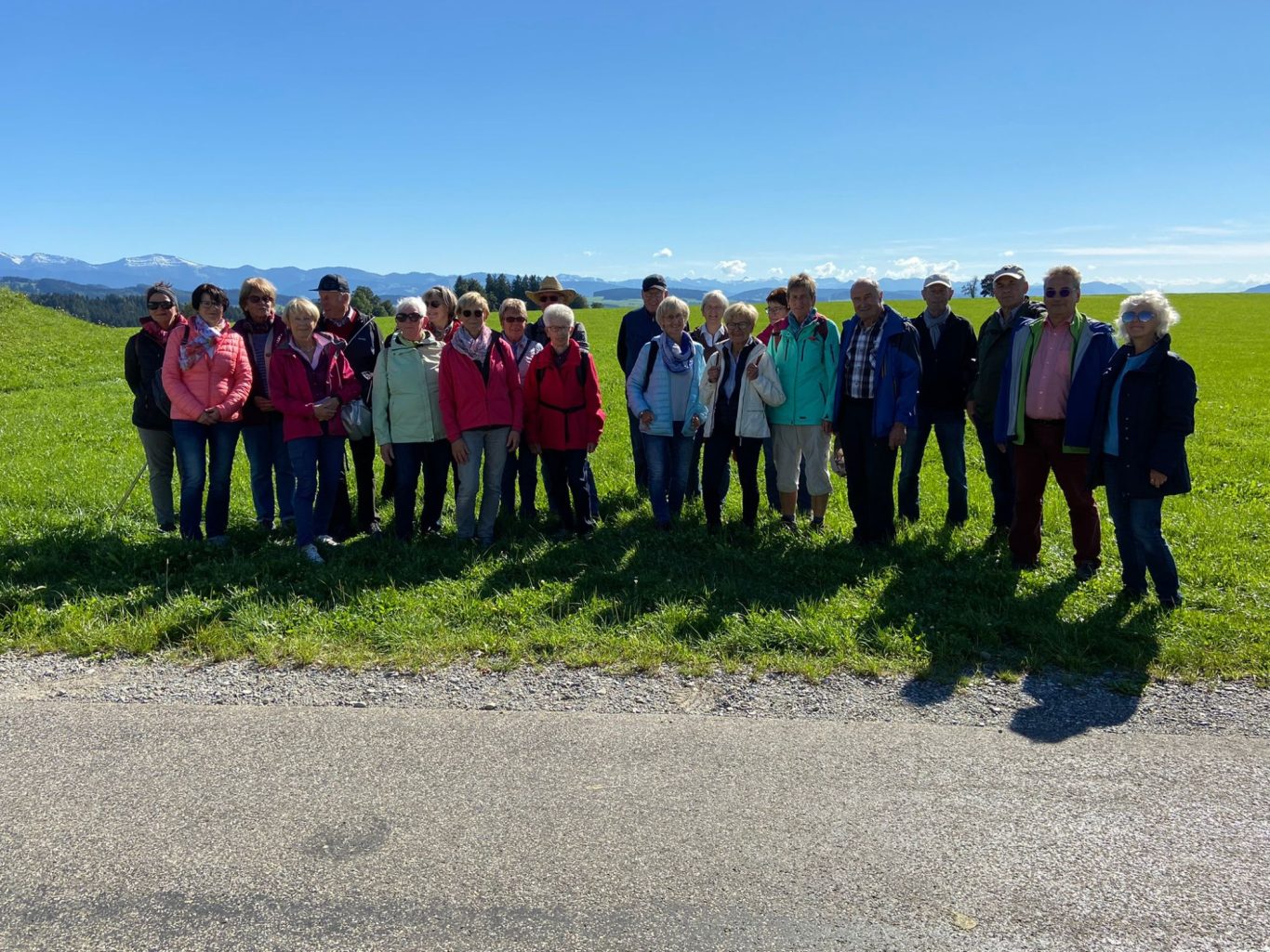 Oben auf dem Rastplatz vom Frohberg angekommen, konnten wir den herrlichen Ausblick ins Illertal und des Alpenvorlandes genießen. Nach einem weiteren kleinen Anstieg erreichten wir unser Wanderziel bei schönstem Wetter.