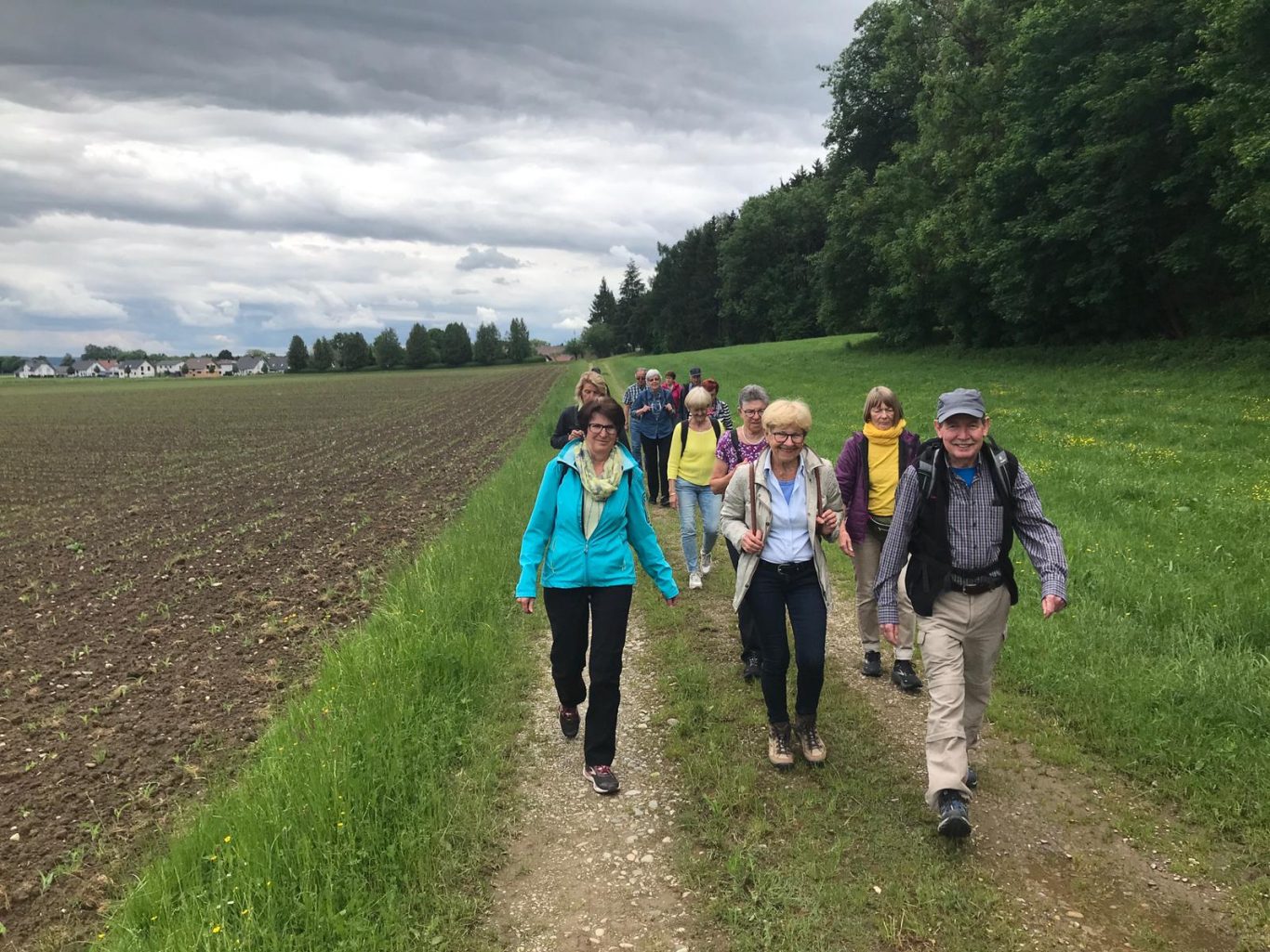 Leider setzte nach einiger Zeit wieder der Regen ein und der Wind pfiff ungemütlich übers freie Feld. So kehrten die Teilnehmer wieder an den Ausgangspunkt zurück.