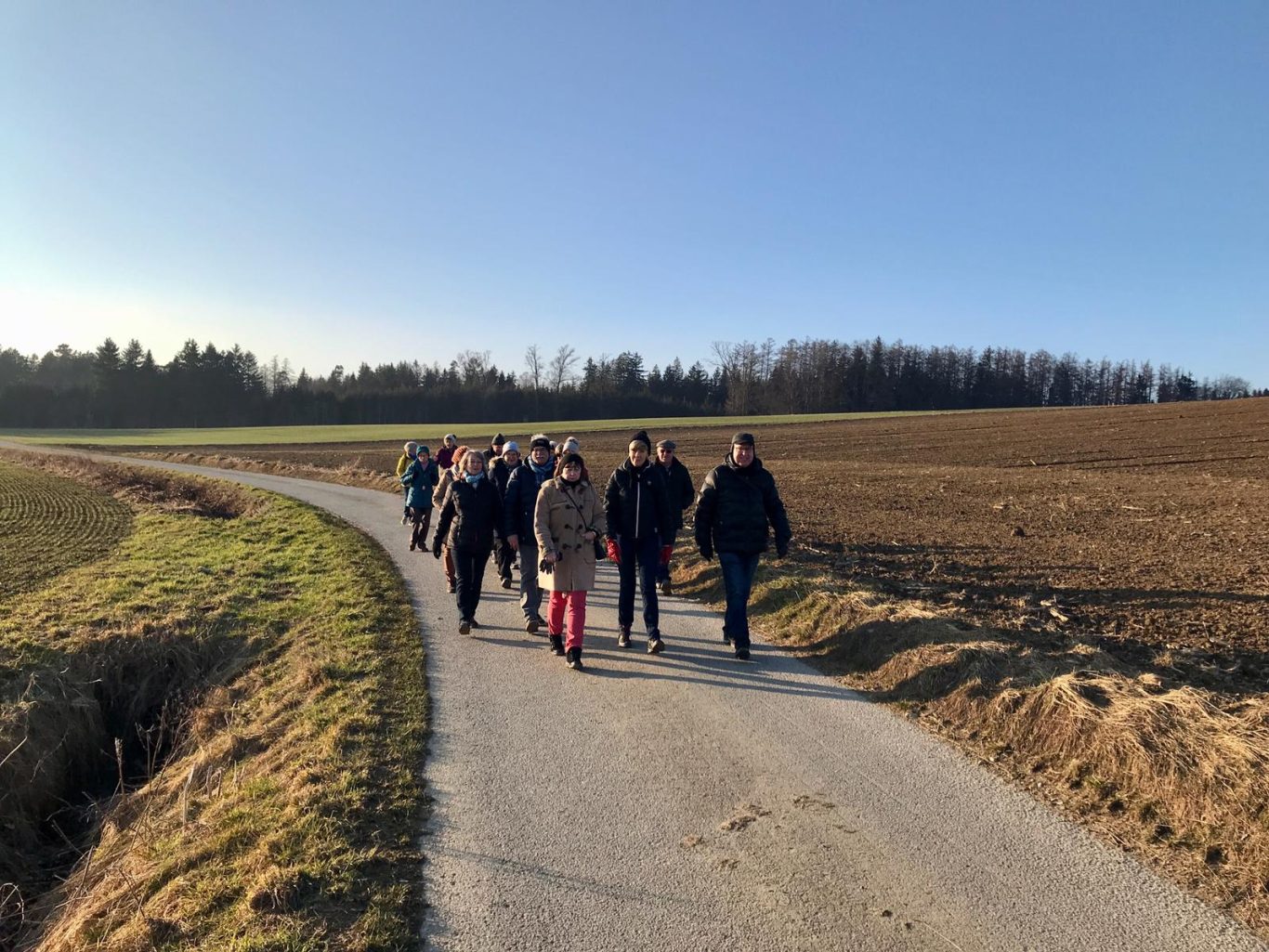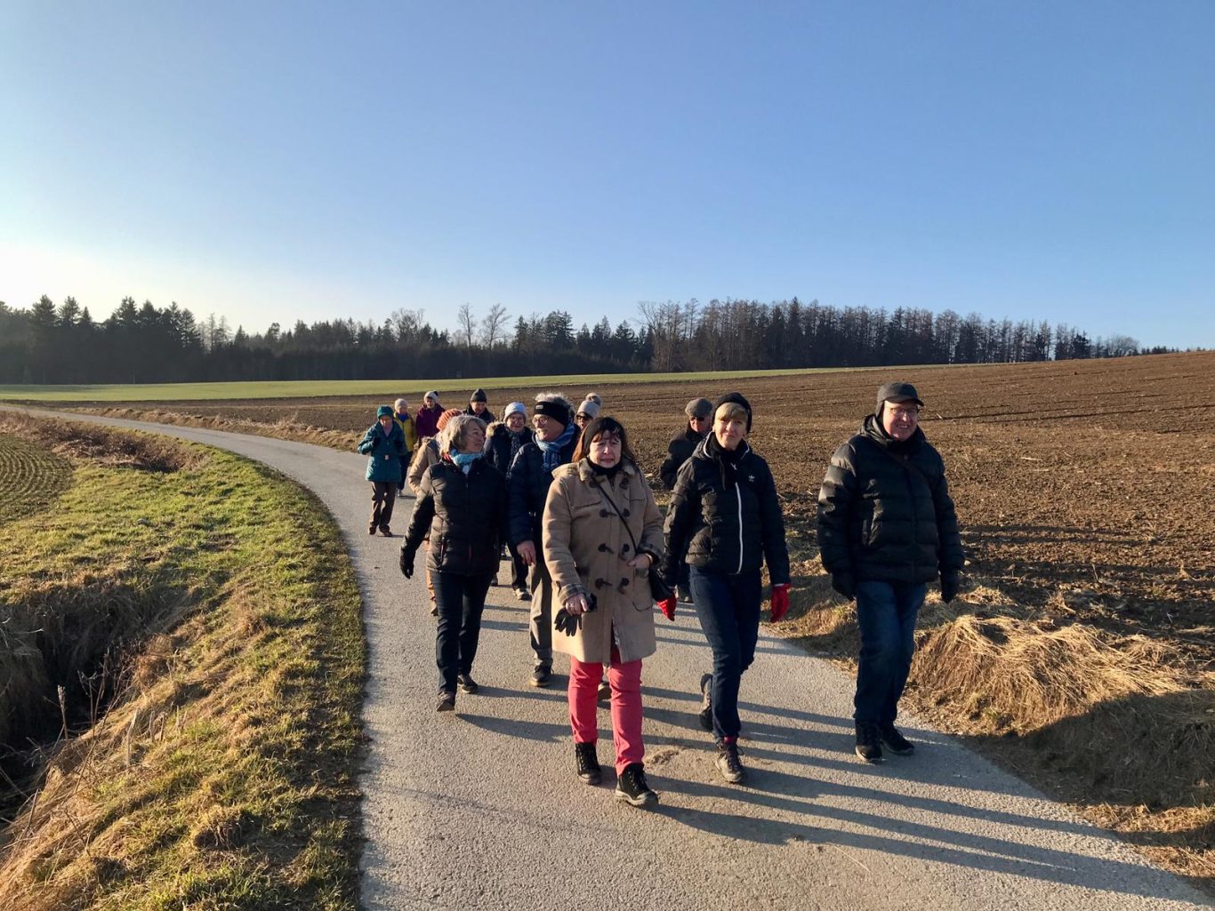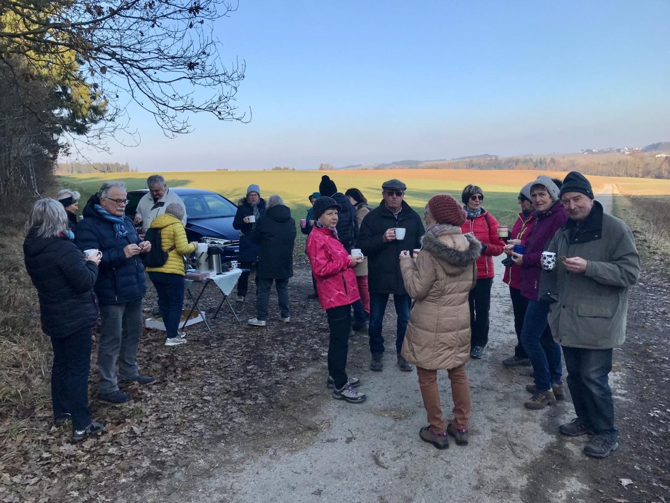 Alle Teilnehmer haben sich gefreut, nach so langer Zeit wieder einmal zusammen unterwegs sein zu können und miteinander ins Gespräch zu kommen. Als die Wanderer nach zweieinhalb Stunden wieder am Ausgangspunkt ankamen verschwand die Sonne bereits hinter den Hügeln.