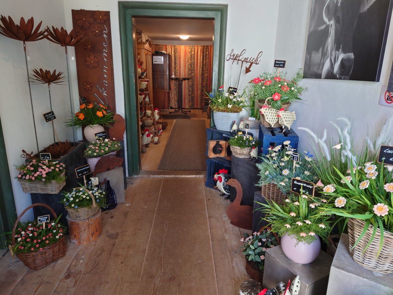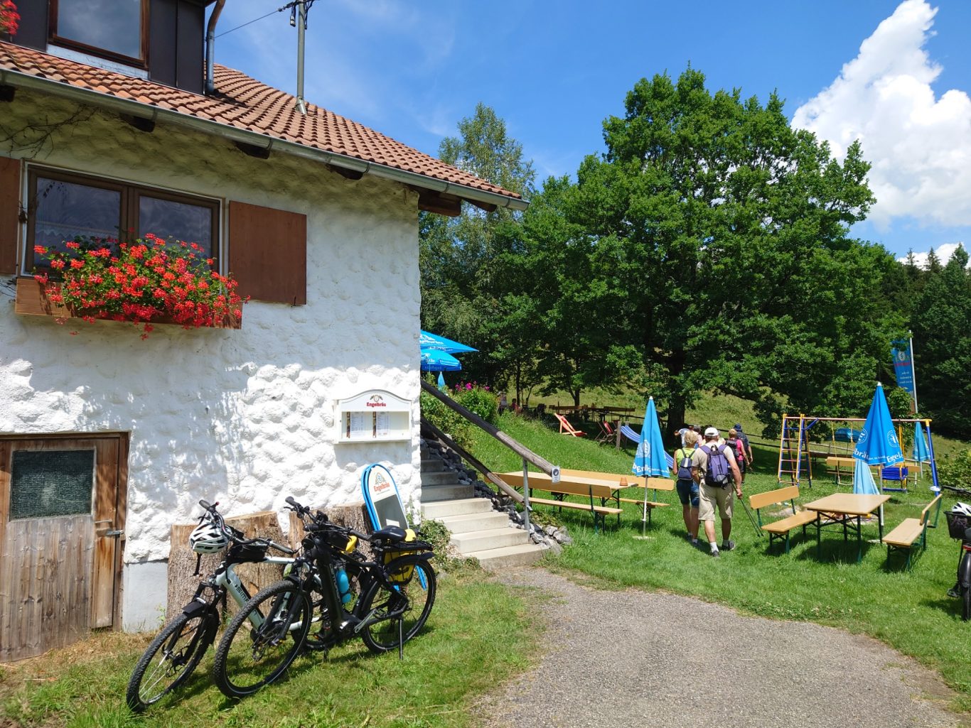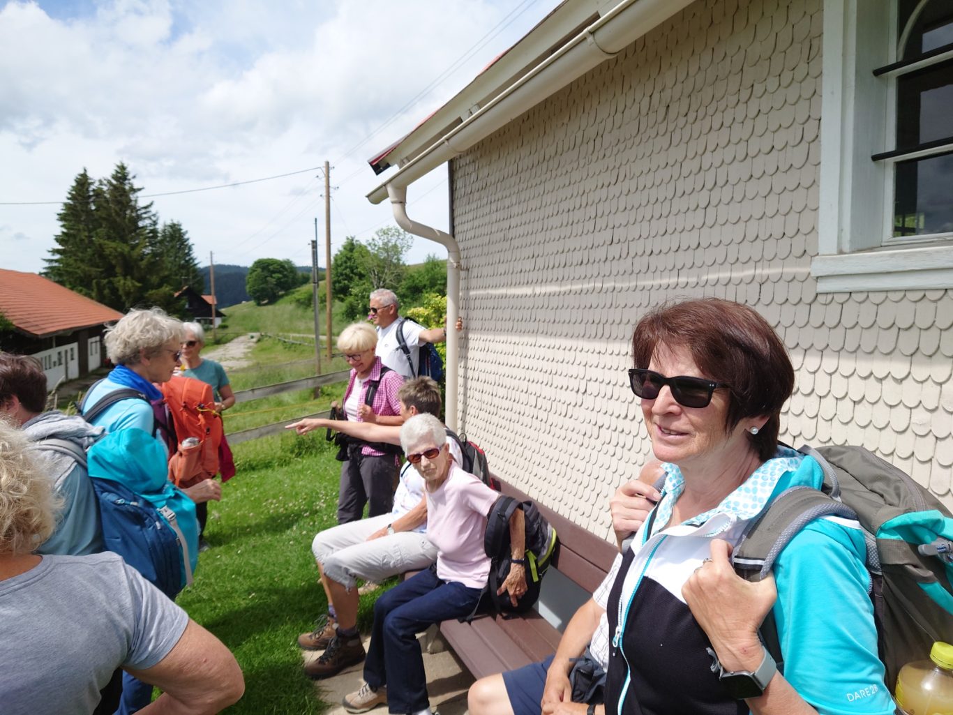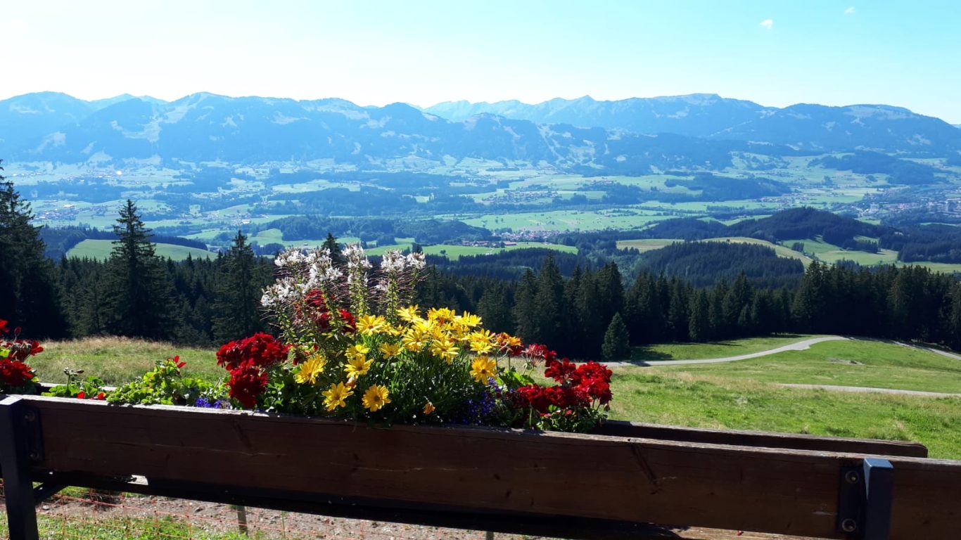 Die Fahrt verlief bestens, bis es der Führerin einfiel, dass sie ihren Bergwanderern eigentlich noch das Allgäu von einer anderen Seite zeigen könnte. Kurzum entschloss sie sich, auf Abwegen zu den Hinterhöfen und herrlichen Bauerhäusern, die zur Begrüßung wunderschön mit Blumen geschmückt waren, einen kleinen Umweg in Kauf zu nehmen. Die Begeisterung der Wanderer war grenzenlos!