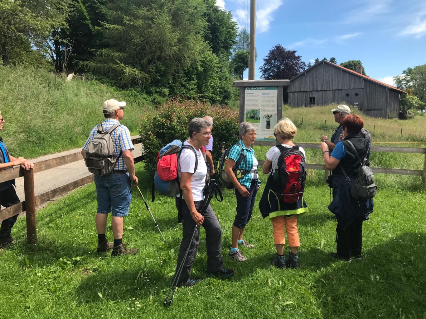 Die Wanderung begann mit einem kurzen steilen Anstieg in Richtung Zaumberg, der von Erläuterungen zum Alpsee unterbrochen wurde. Nach kurzer Zeit erreichte die Gruppe den Ort Zaumberg. Hier erfuhren die Teilnehmer, dass Zaumberg bereits im Jahr 1090 zu den Gütern des Klosters Weingarten gehörte und dass hier im 15. Jahrhundert noch unter der Weingartener Herrschaft eine erste Kapelle errichtet wurde; die heutige Kapelle ist dem Hl. Leonhard geweiht.