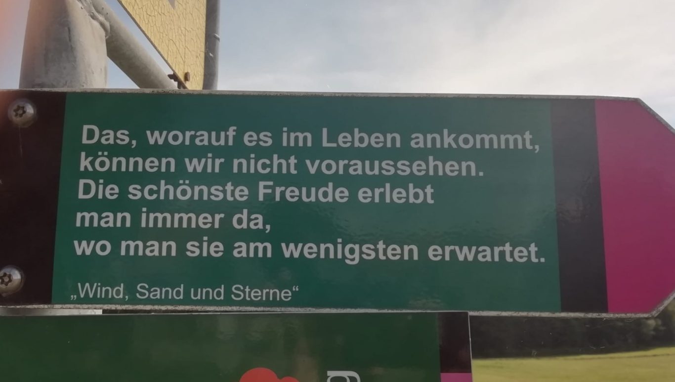Am 21.09.2022 starteten 23 begeistere Spurwechsel Wanderer am Sportheim Ochsenhausen zu Fahrt nach Eisenharz. Bei sonnigem Herbstwetter führte der Wanderweg durch die schöne, ruhige Eisenharzer Moorlandschaft im Alpenvorland. Auf dem Weg luden 26 Schautafeln mit den Botschaften des bekannten Autors Saint-Exupery zur Inspiration ein. Ein kurzer Abstecher zum Isnyberg ermöglichte einen herrlichen Blick auf das Alpenpanorama.