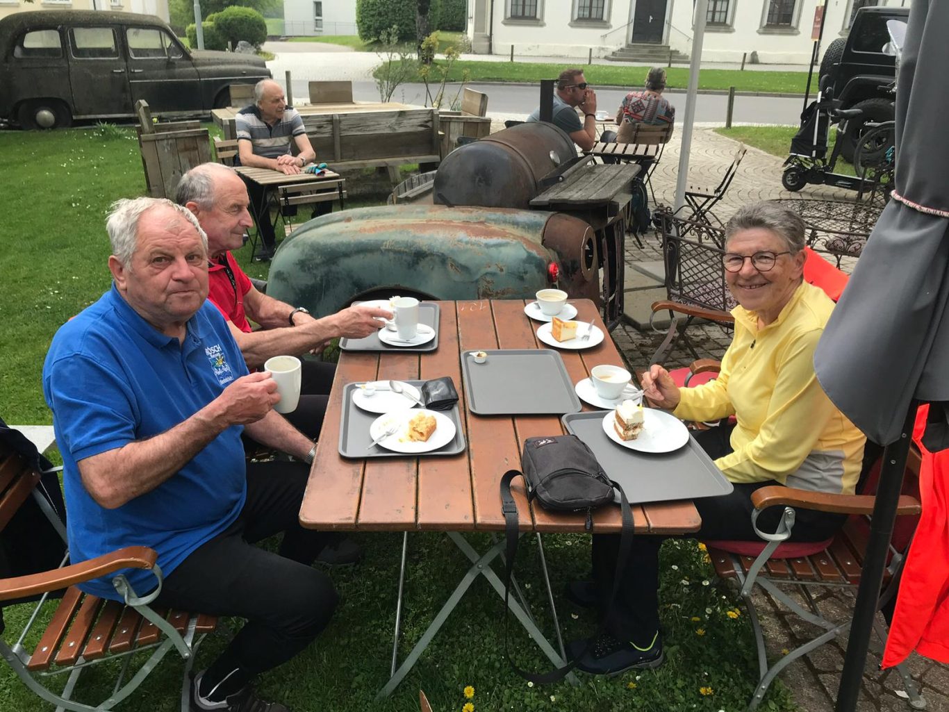 Jetzt war es nicht mehr weit zurück zum Ziegelweiher, wo uns Herr Reinhold mit leckeren Kuchen und Kaffee auf der Terasse verwöhnte. Wir waren gute drei Stunden unterwegs, hatten es wahrlich verdient verwöhnt zu werden und genossen es in vollen Zügen. Ein schöner, harmonischer Nachmittag ging mit zufriedenen Gesichtern und Gemütern zu Ende.