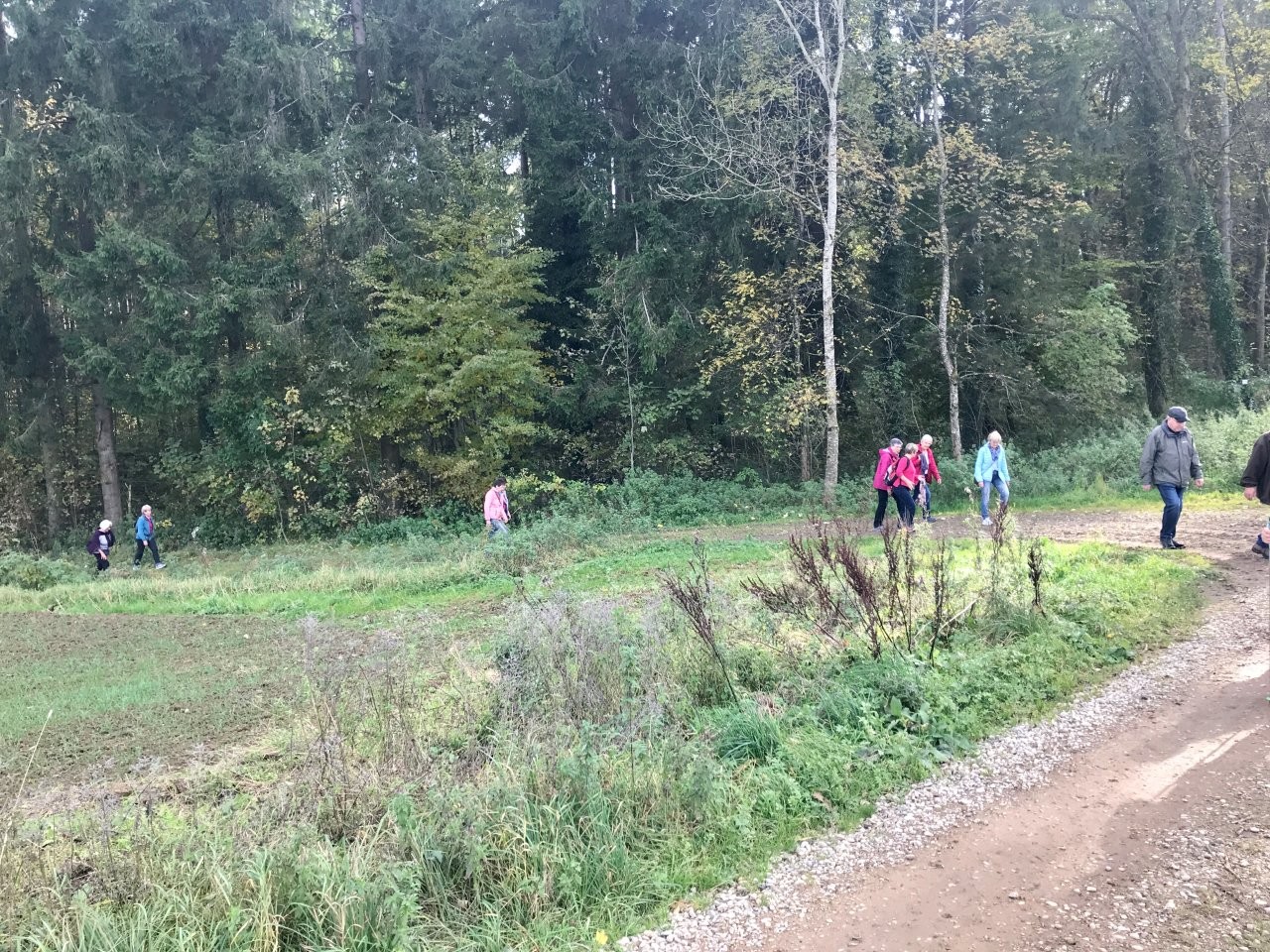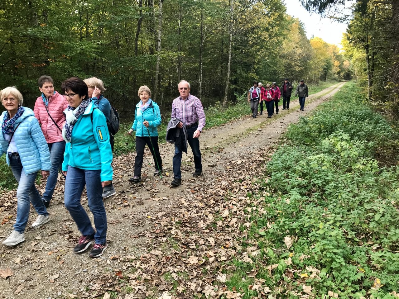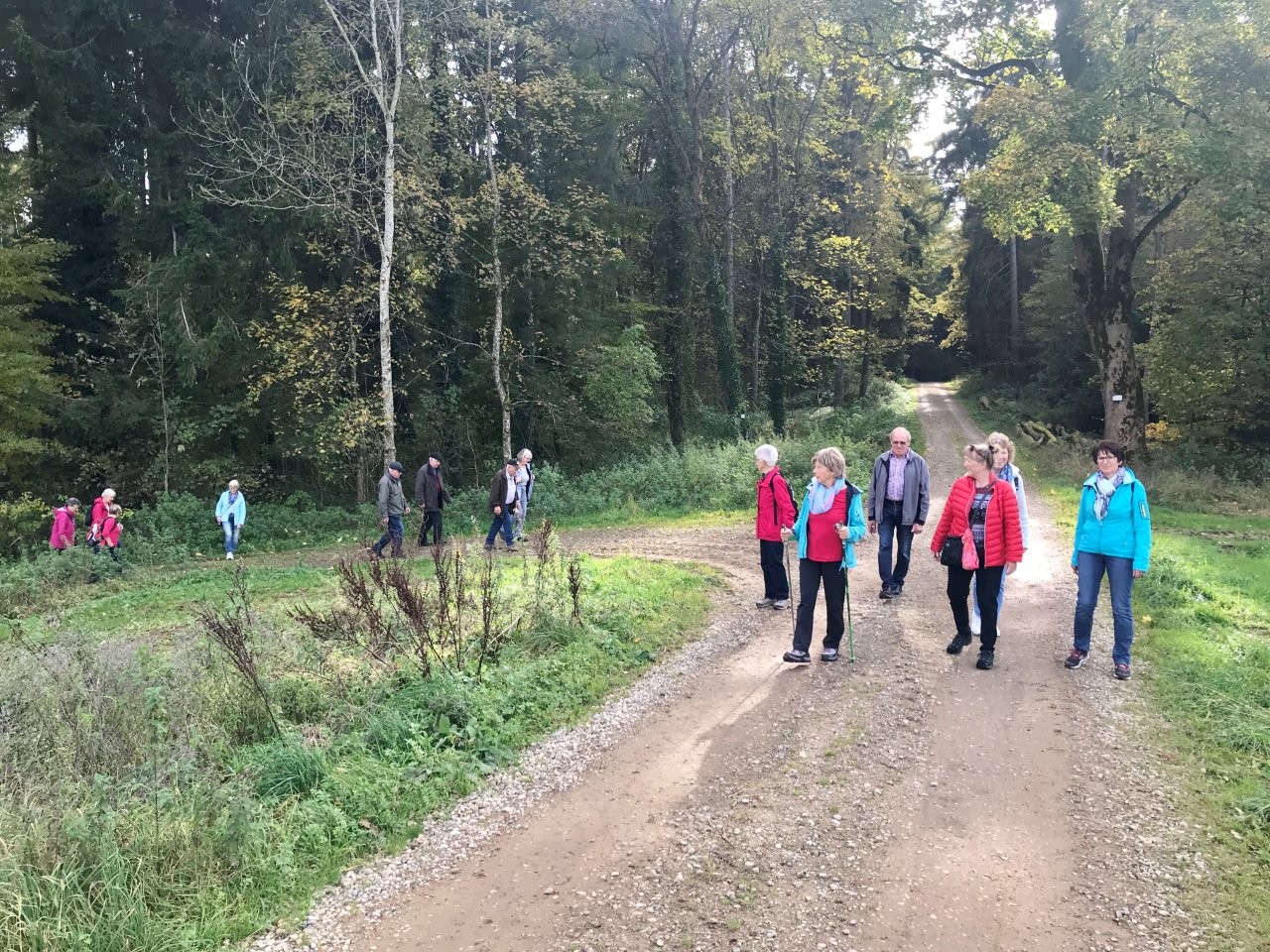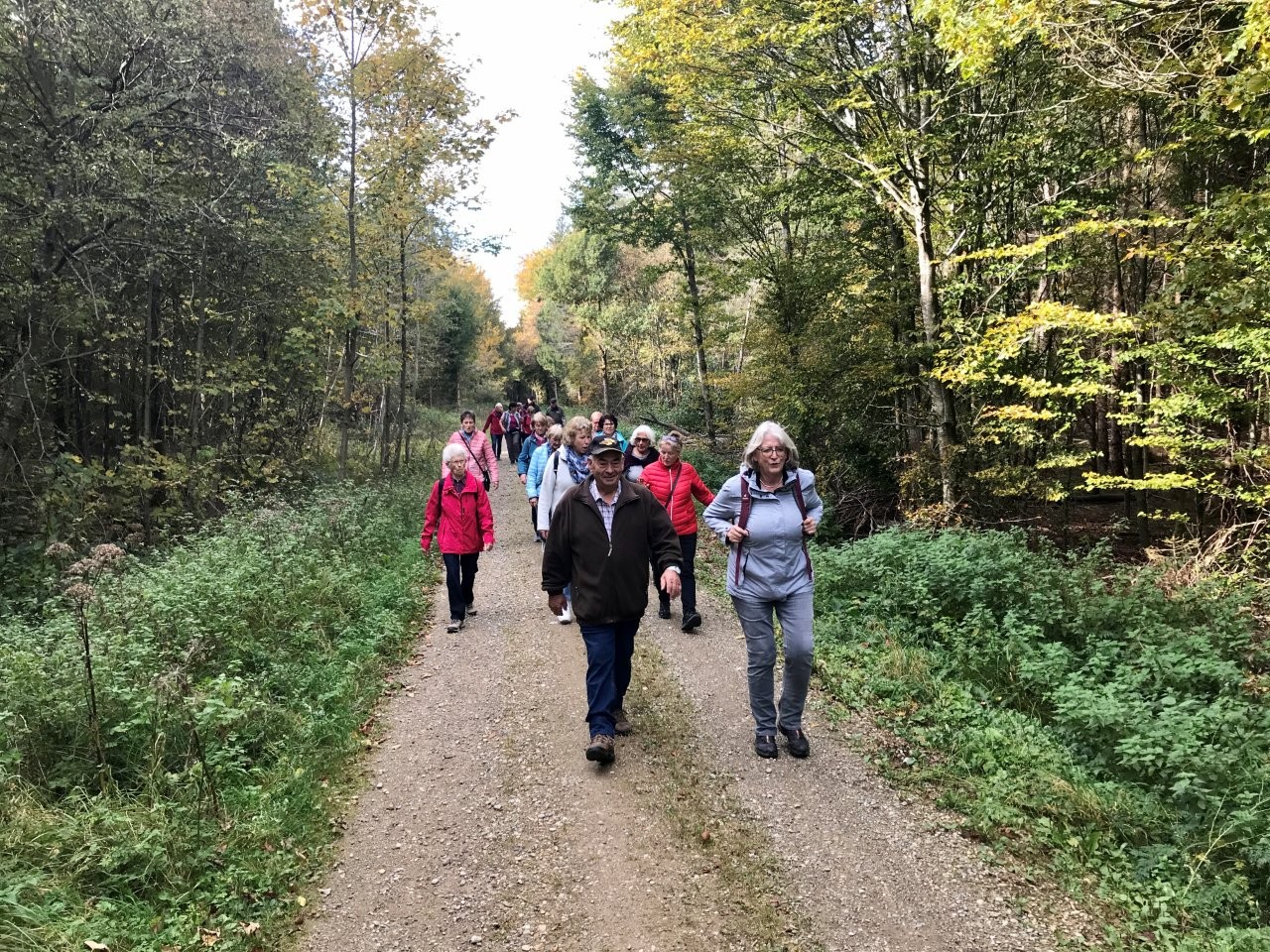 Bei schönem Herbstwetter trafen sich 19 Spurwechslerinnen und Spurwechsler am Sportheim, um eine Herbstwanderung im Fürstenwald zu unternehmen. Nach einem Hinweis auf den Hubschrauberbau im Fruchtkasten („Focke“, benannt nach dem Hubschrauberkonstrukteur Henrich Focke) gegen Ende des Zweiten Weltkrieges führte der Weg am Hofgut Holland vorbei zum „Franzosengrab“. Dort gab es einen kurzen geschichtlichen Hintergrund zur Entstehung des „Franzosengrabs“: Ein französischer Soldat namens Joseph Hahn, der in ein Ochsenhauser Mädchen verliebt war, wurde wegen „Fahnenflucht“ im August 1797 von den eigenen Kameraden erschossen. Diese tragische Geschichte wurde vor Jahren vom inzwischen verstorbenen Ochsenhauser Mundartdichter Wolfgang Schlecht auf schwäbisch geschrieben. Dieser Text wurde von Christine vorgelesen. Weiter gings zur Fürstenwaldhütte, an der das schwäbisch geschriebene Gedicht „Dr‘ Bomm“ (von August Mohn aus Daugendorf) ebenfalls von Christine vorgelesen wurde. Am Wendepunkt des Weges erinnerte Uli an den „Rottumer Rank“, an dem das „Rankenweible“ ihre Untaten verübt haben soll. Am ehemaligen Arboretum wurde kurz Halt gemacht, um in absoluter Stille eine Minute lang in den Wald hineinzuhören. Danach wanderte die Gruppe an den Kohlweihern vorbei und kurz vor dem Ziegelweiher zweigte der Weg in Richtung Hofgut Holland ab. Die ca. 6,8 km lange Wanderung fand ihren Abschluss mit der gemütlichen Einkehr im Café Schäfers.