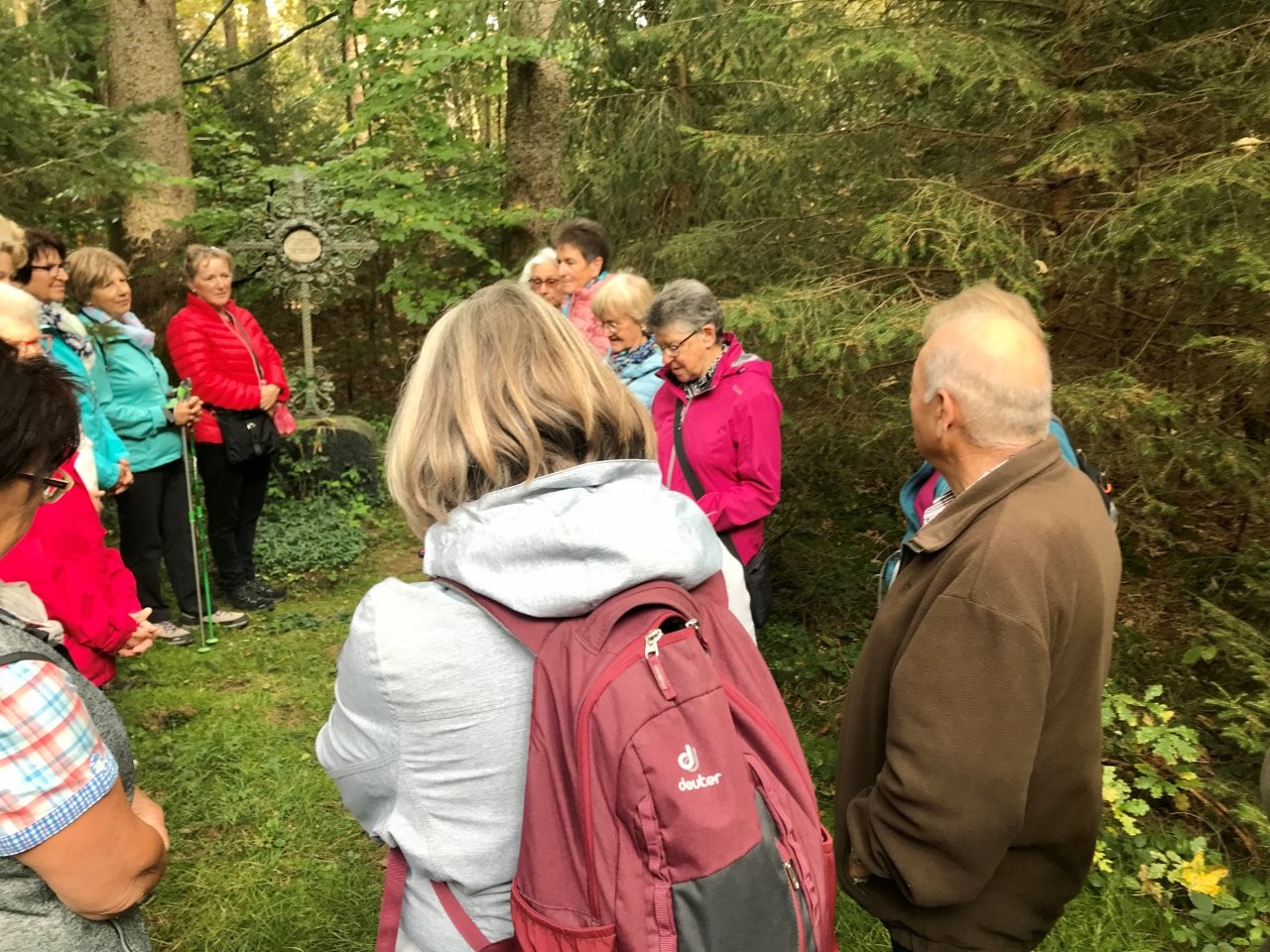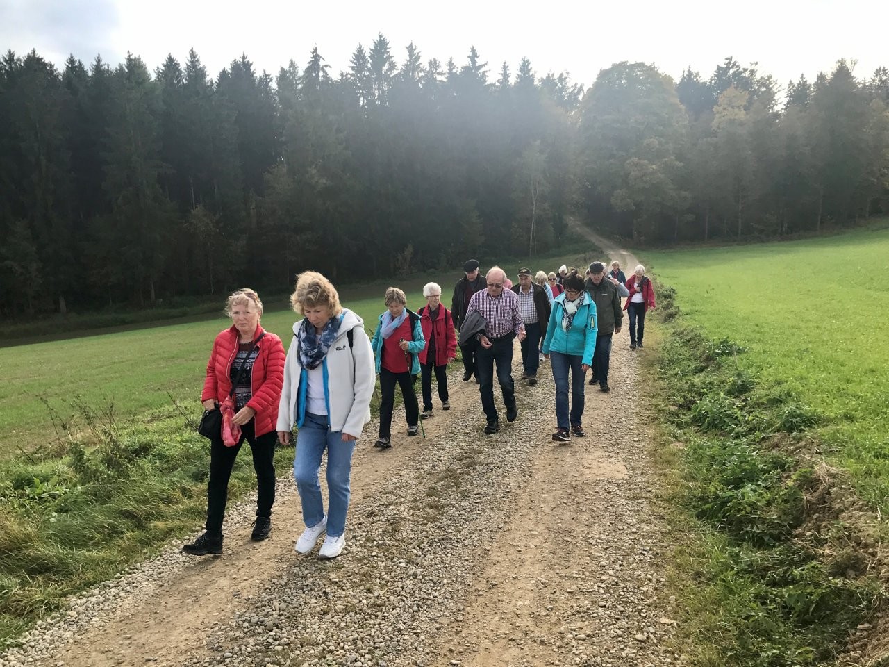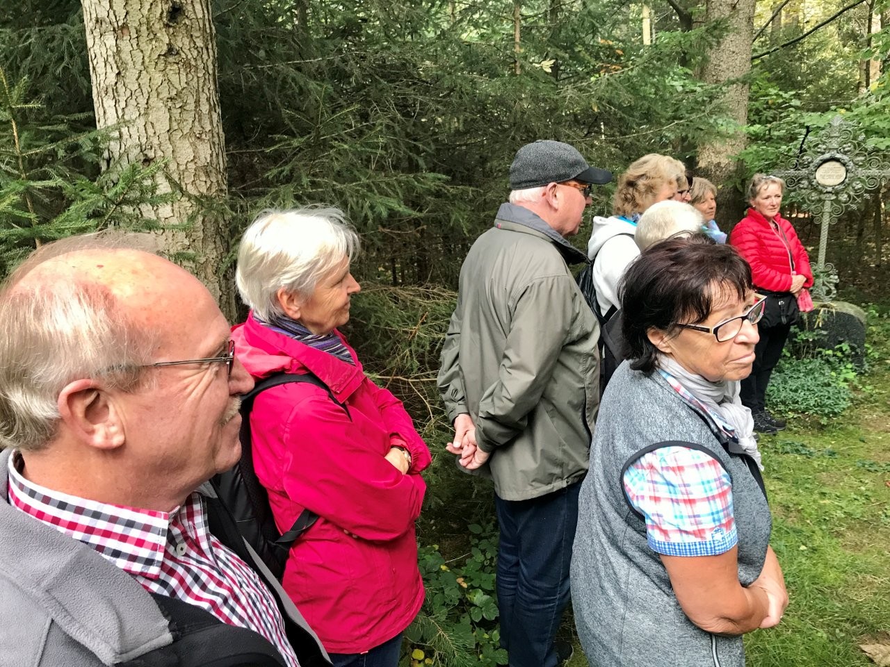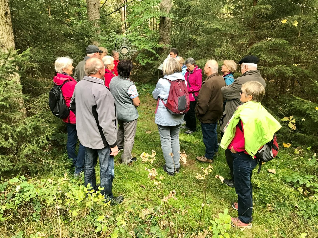 Bei schönem Herbstwetter trafen sich 19 Spurwechslerinnen und Spurwechsler am Sportheim, um eine Herbstwanderung im Fürstenwald zu unternehmen. Nach einem Hinweis auf den Hubschrauberbau im Fruchtkasten („Focke“, benannt nach dem Hubschrauberkonstrukteur Henrich Focke) gegen Ende des Zweiten Weltkrieges führte der Weg am Hofgut Holland vorbei zum „Franzosengrab“. Dort gab es einen kurzen geschichtlichen Hintergrund zur Entstehung des „Franzosengrabs“: Ein französischer Soldat namens Joseph Hahn, der in ein Ochsenhauser Mädchen verliebt war, wurde wegen „Fahnenflucht“ im August 1797 von den eigenen Kameraden erschossen. Diese tragische Geschichte wurde vor Jahren vom inzwischen verstorbenen Ochsenhauser Mundartdichter Wolfgang Schlecht auf schwäbisch geschrieben. Dieser Text wurde von Christine vorgelesen. Weiter gings zur Fürstenwaldhütte, an der das schwäbisch geschriebene Gedicht „Dr‘ Bomm“ (von August Mohn aus Daugendorf) ebenfalls von Christine vorgelesen wurde. Am Wendepunkt des Weges erinnerte Uli an den „Rottumer Rank“, an dem das „Rankenweible“ ihre Untaten verübt haben soll. Am ehemaligen Arboretum wurde kurz Halt gemacht, um in absoluter Stille eine Minute lang in den Wald hineinzuhören. Danach wanderte die Gruppe an den Kohlweihern vorbei und kurz vor dem Ziegelweiher zweigte der Weg in Richtung Hofgut Holland ab. Die ca. 6,8 km lange Wanderung fand ihren Abschluss mit der gemütlichen Einkehr im Café Schäfers.