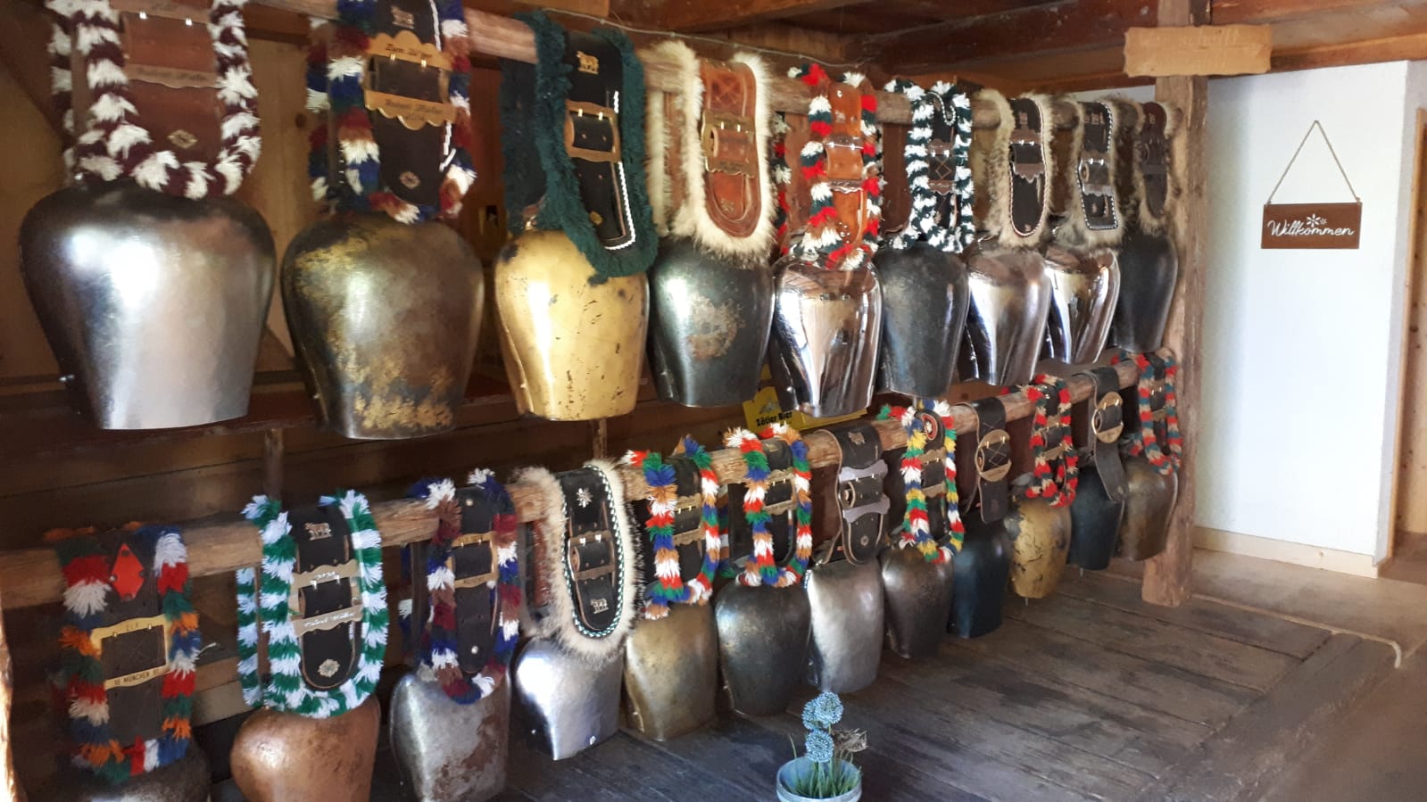 Bei der Einkehr im Altstätter Hof waren die Strapazen vergessen und wir ließen es uns bei Buttermilch, Heidelbeerkuchen, saurem Käs und Radler gut gehen. Dort bewunderten wir auch die riesigen Kuhglocken, jede anders und besonders gestaltet, die schon zum Almabtrieb hergerichtet waren.