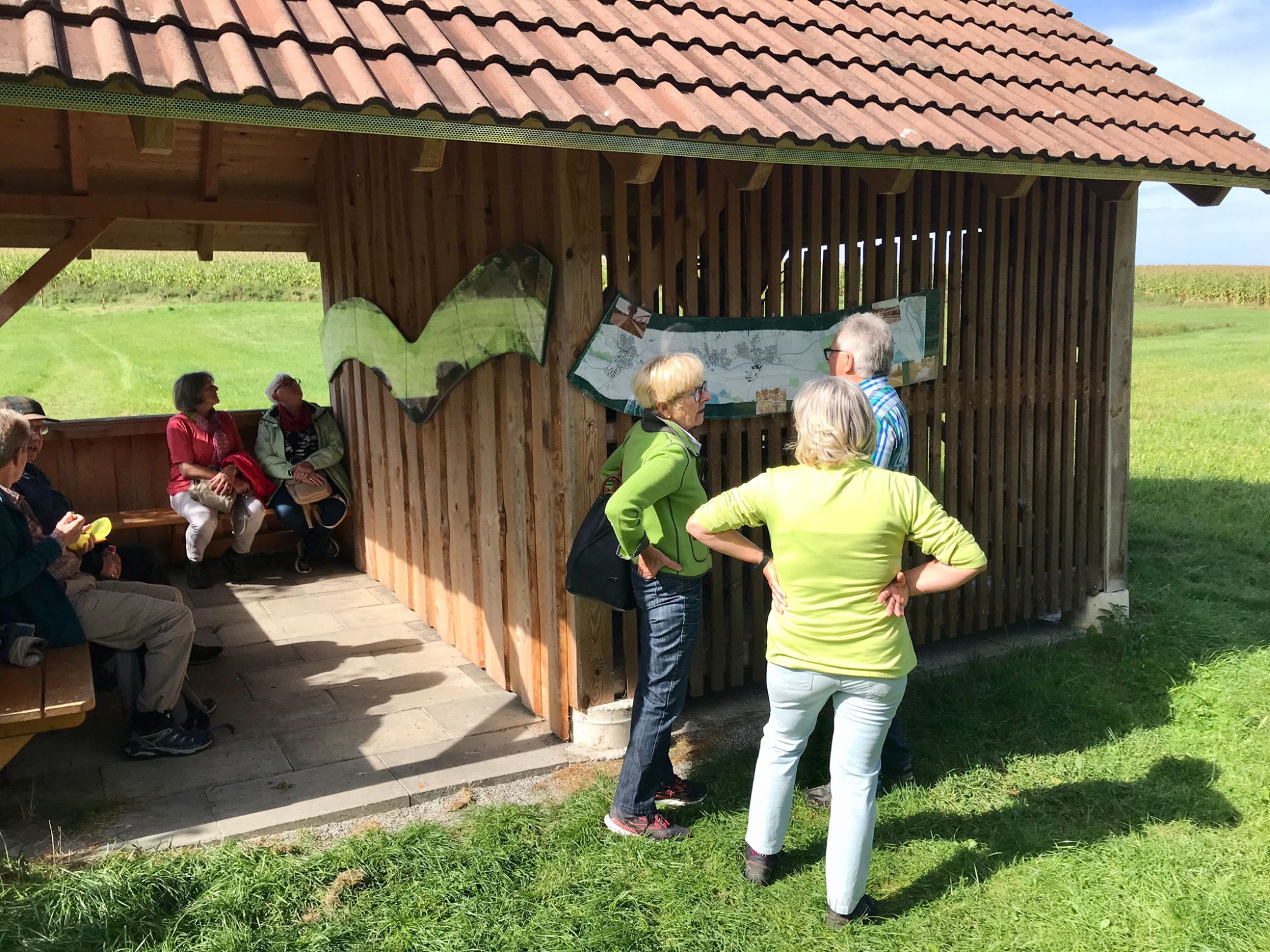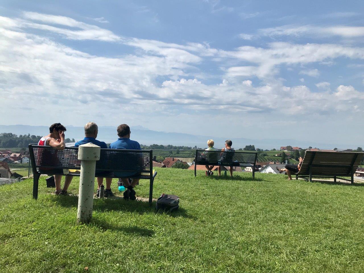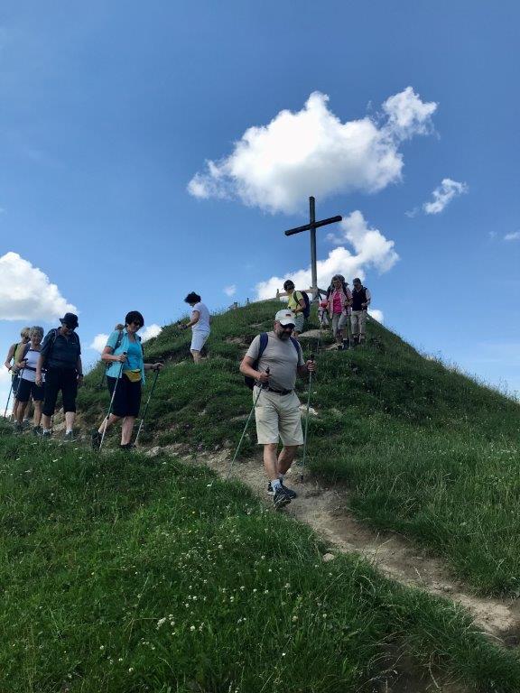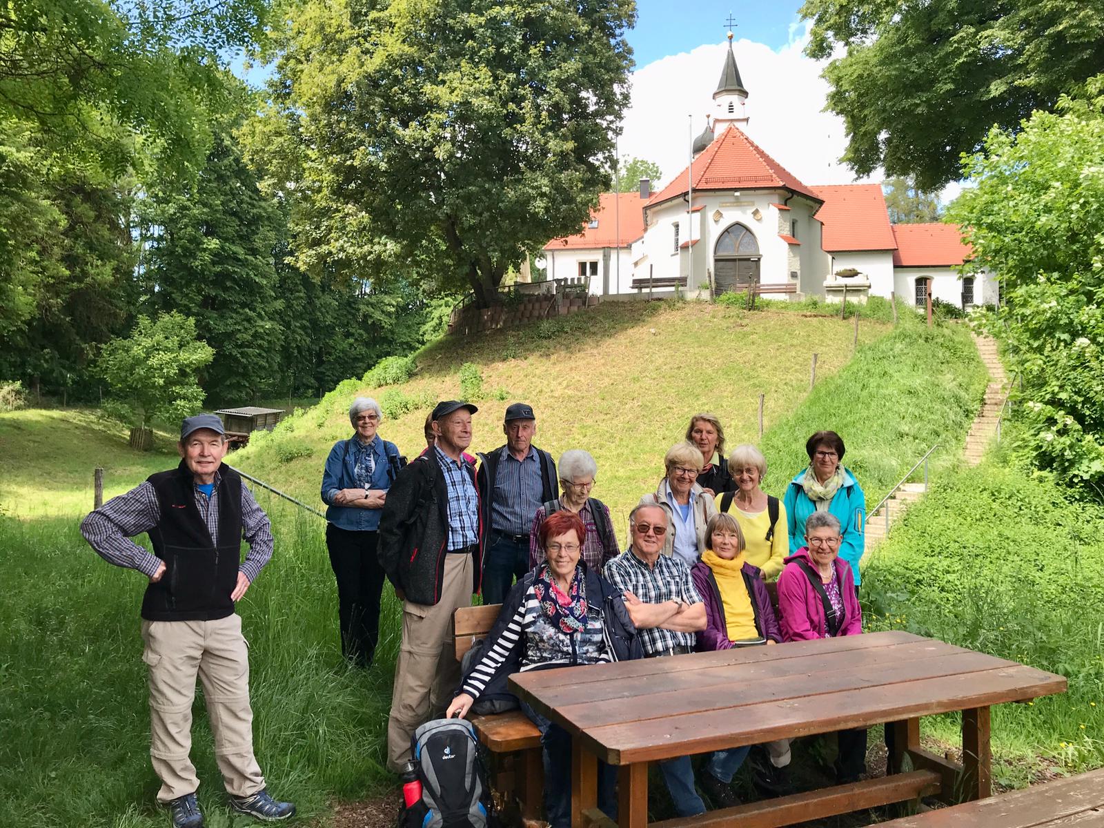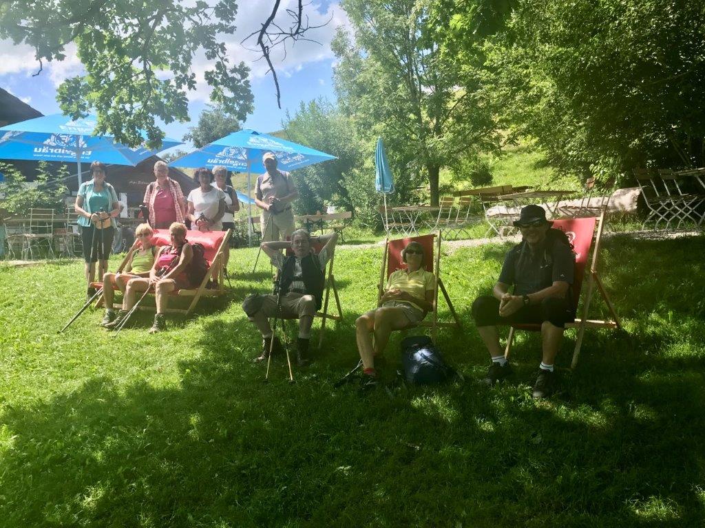Oben auf dem Rastplatz vom Frohberg angekommen, konnten wir den herrlichen Ausblick ins Illertal und des Alpenvorlandes genießen. Nach einem weiteren kleinen Anstieg erreichten wir unser Wanderziel bei schönstem Wetter.