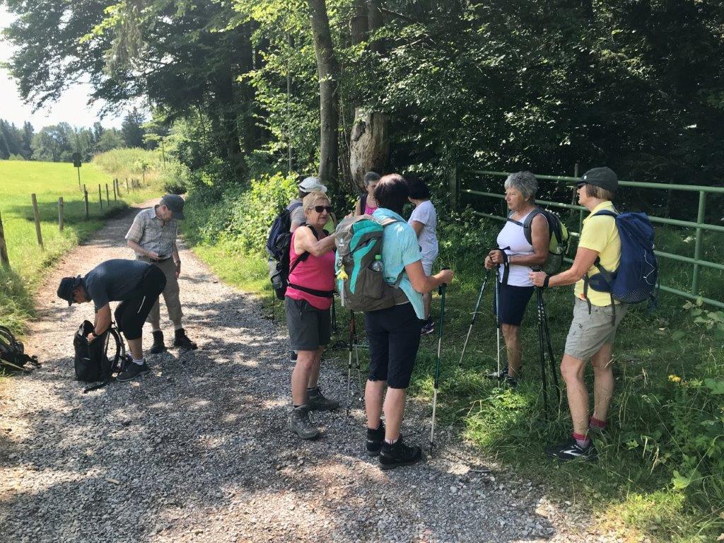 21 wackere Wanderer/innen machten sich bei herrlichem Wetter, aber noch fast ungewohnter Hitze, auf den Rundweg um die 5 Weiher.