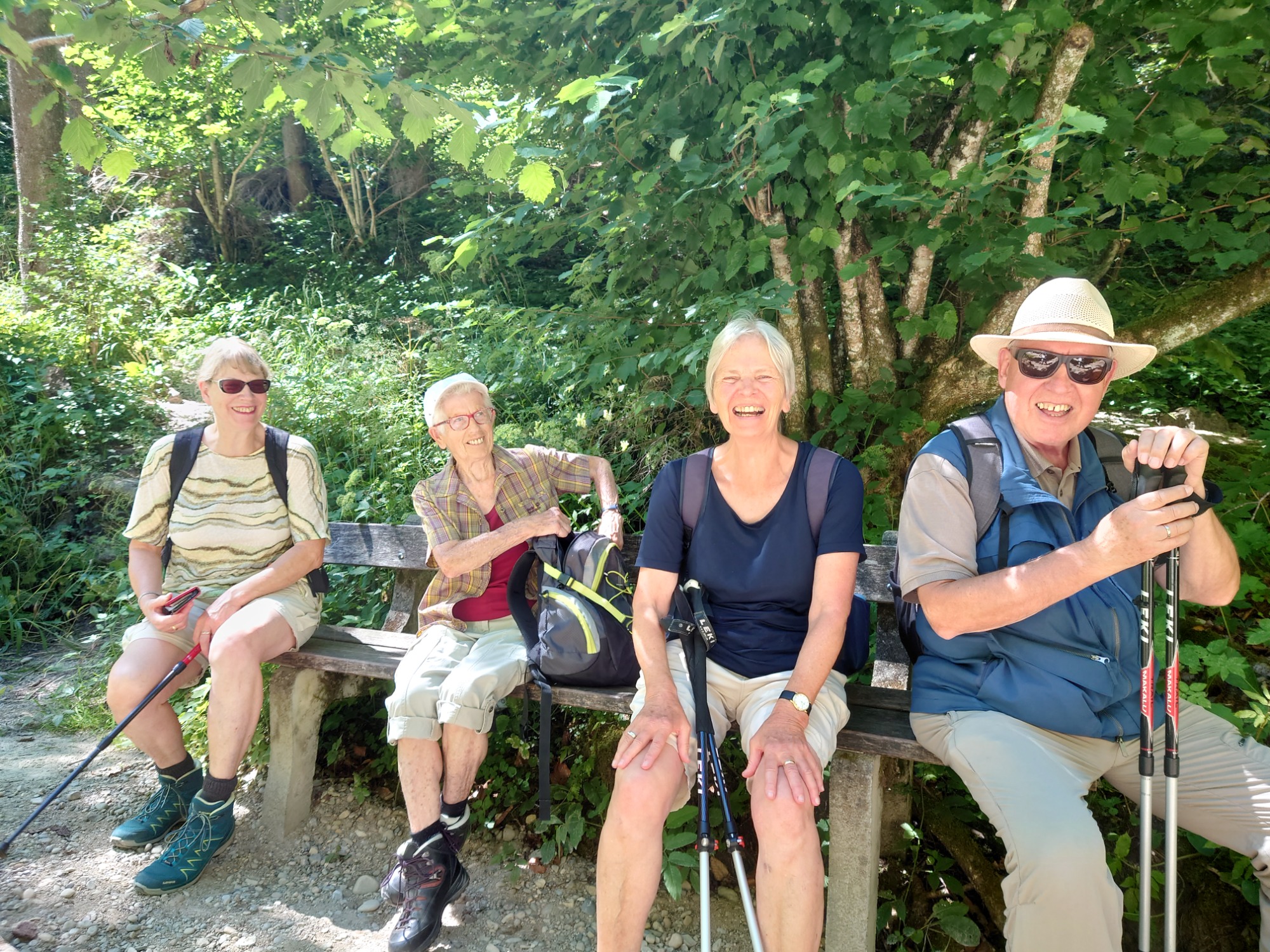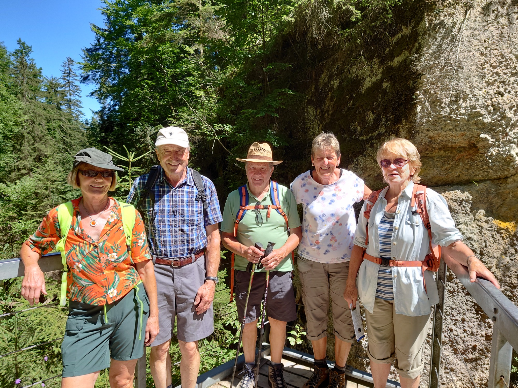 Eine nette Gruppe Spurwechsler wanderte am vergangenen, heißen Mittwoch unter der 54 m hohen Argentobelbrücke hindurch, und im weiteren Weg durch den Eistobel bei Isny-Maierhöfen und genoss die Kühle am Wasser.