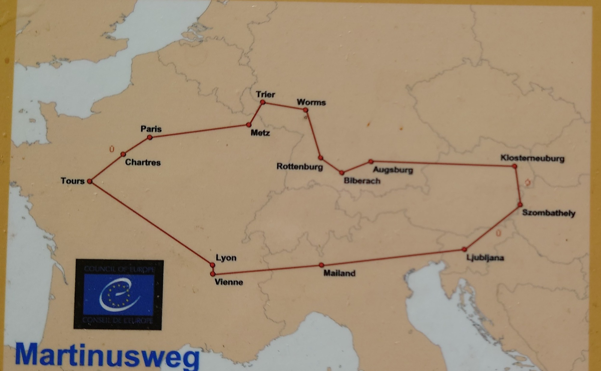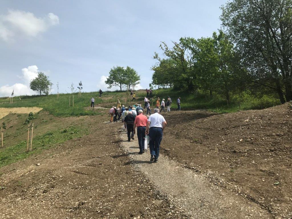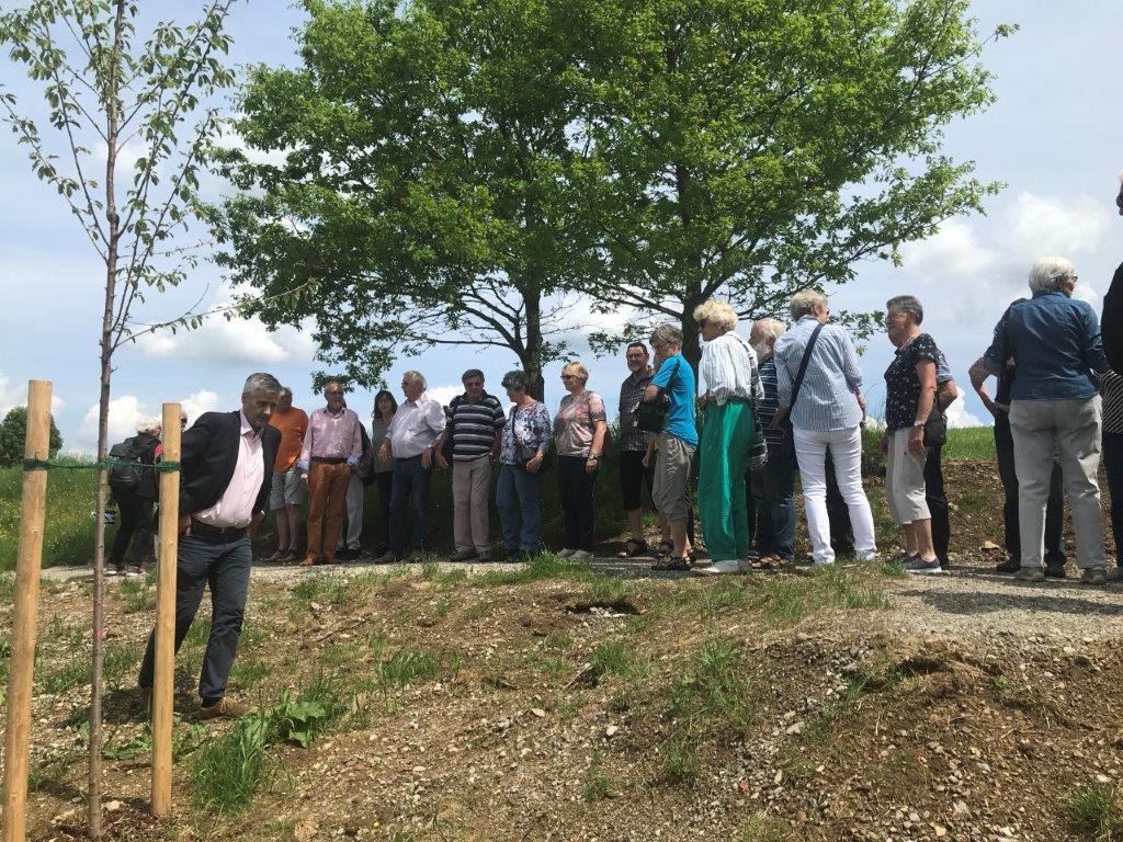 Am 25.5.2022 wanderte eine Gruppe von 15 Teilnehmern vom Kloster Bonlanden zur Bergkapelle auf dem Frohberg (630 m ü. NN). Am Ortsrand von Erolzheim beginnt der etwas steile Aufstieg zur Kapelle. Auf halber Höhe erreichten wir den angelegten Martiniweg mit vielen Info-Tafeln, welcher mit einem Gottesdienst in 2011 in der Bergkapelle von Bischof Gebhard Fürst eingeweiht wurde. Der Martiniweg (auch Martinusweg genannt) führt vom Geburtsort des Heiligen Martin (geb. 316, gest. 397) im ungarischen Szombathely zu seiner Grablege im französischen Tours. Mit etwa 1200 Streckenkilometern gehört der Martiniweg zu den längsten zusammenhängenden Pilger- und Wanderwegen in Deutschland.