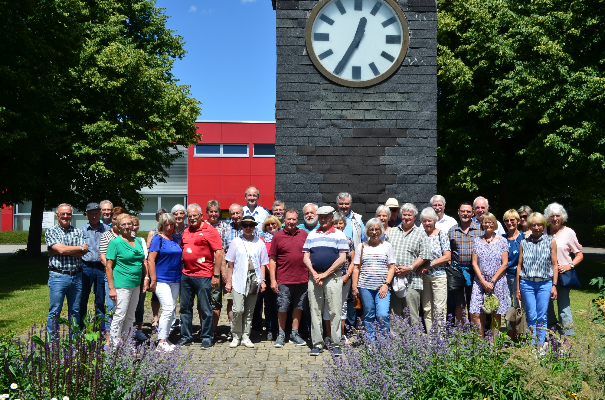 Nach dem gemeinsamen Gruppenfoto vor dem Lindele-Turm waren alle voll des Lobes bei der Verabschiedung von Herrn PD Guido Mebold und dem Dank an seine auffallend freundlichen Kolleginnen und Kollegen – ob Lehrer oder Schüler !