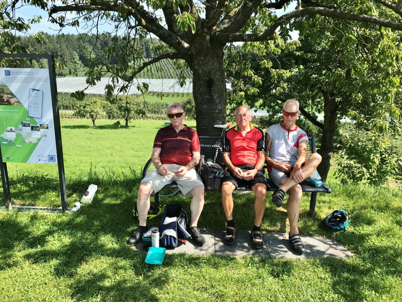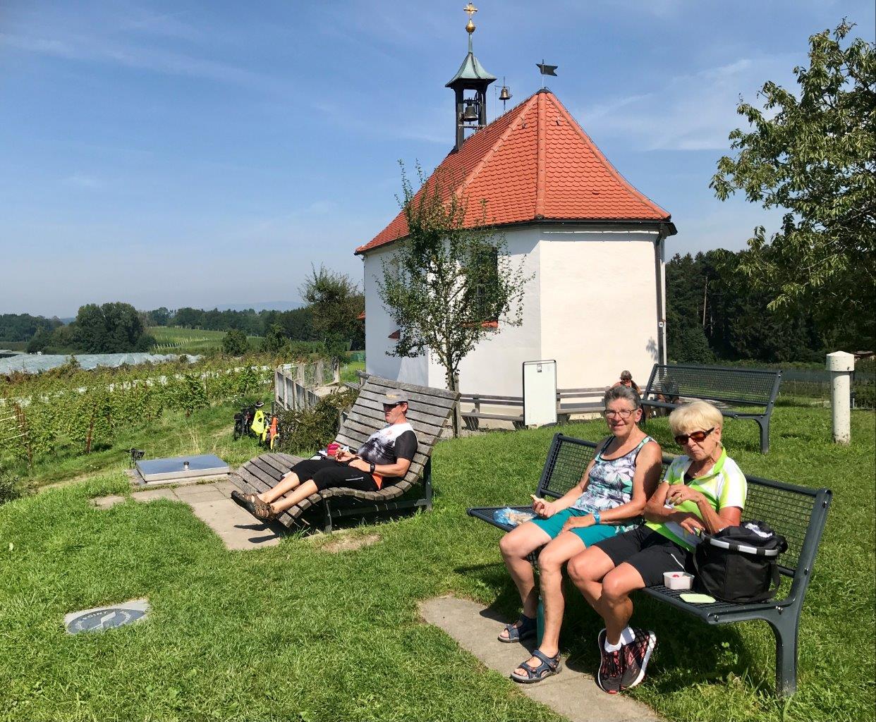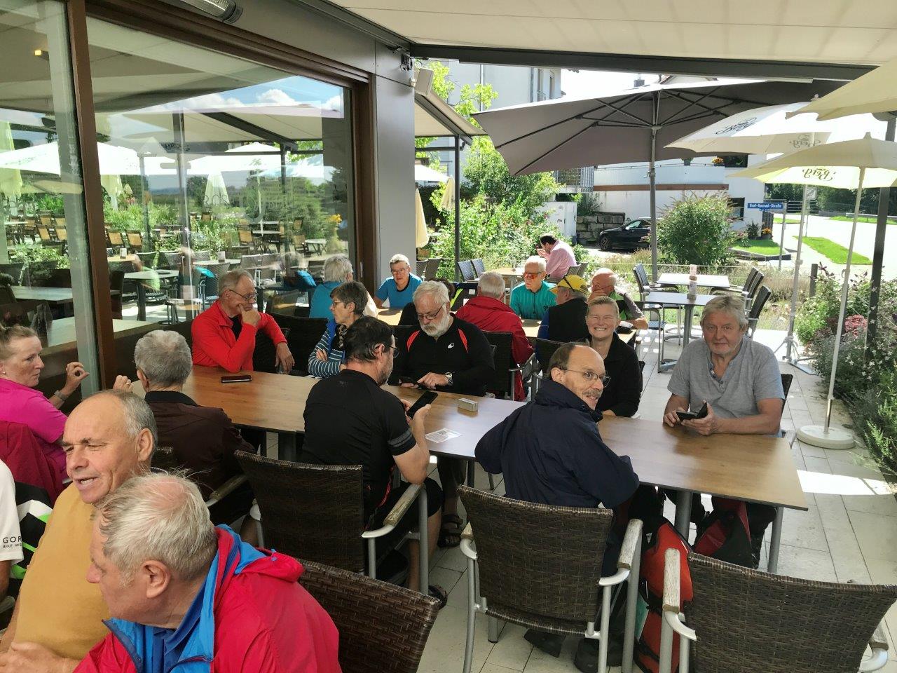 Am 12.08.2021 fand die erste Radtour dieses Jahres statt. Eine Gruppe von 10 Spurwechslern fuhr mit PKWs nach Wangen, um von dort unter der Leitung von Christine und Uli Mebus zunächst nach Neuravensburg zu radeln. Anschließend ging es ein kurzes Stück steil bergauf zur berühmten Neuravensburger Autobahnbrücke. Dann führte der schöne und abwechslungsreiche Weg am Schloss Achberg vorbei nach Oberreitnau und weiter zur Antoniuskapelle Selmnau, an der die Mittagspause eingelegt und die schöne Aussicht genossen wurde (Fotos). Über Kressbronn gelangte die Gruppe auf dem Bodensee-Radweg nach Wasserburg. In der dortigen Kirche wurden die Erinnerungen an drei „Seegfrörne“ besichtigt. Nach wenigen Kilometern wurde das Lindenhofbad kurz vor Lindau erreicht, in dem einige Teilnehmer mutig in den Bodensee stiegen und Abkühlung suchten. Hier fand auch die Kaffee-Einkehr statt. Danach ging es noch zum Lindauer Hafen und entlang des Bodensees nach Lindau-Zech. Nun begann auf dem Bodensee-Königssee-Radweg der etwas anstrengende Aufstieg ins Hinterland, der von der Radlergruppe jedoch bravourös gemeistert wurde. Nach ca. 70 km wurde Wangen wieder ohne Probleme erreicht.