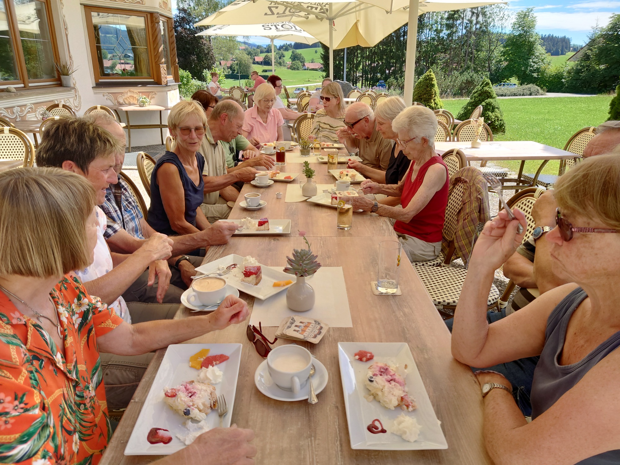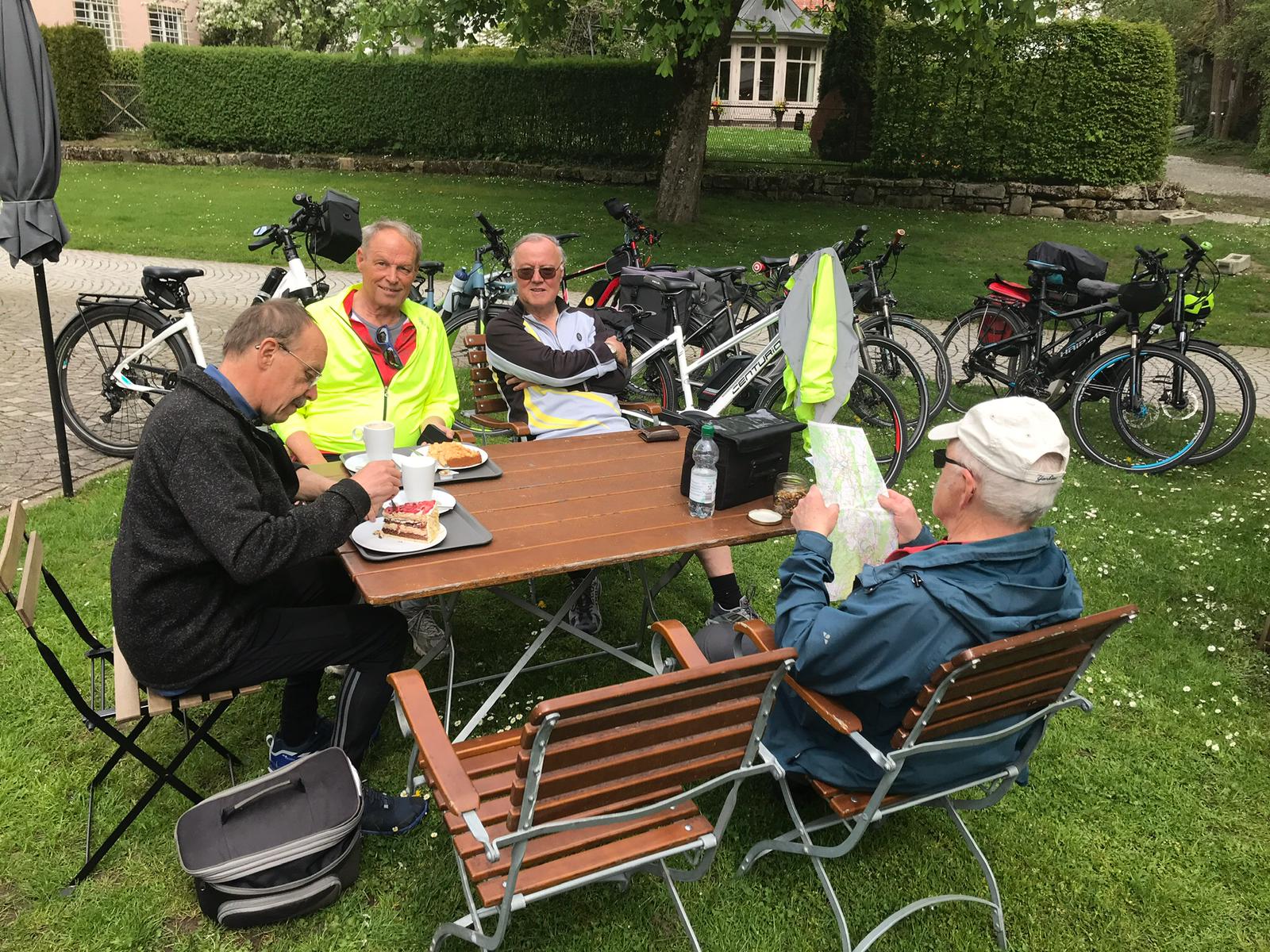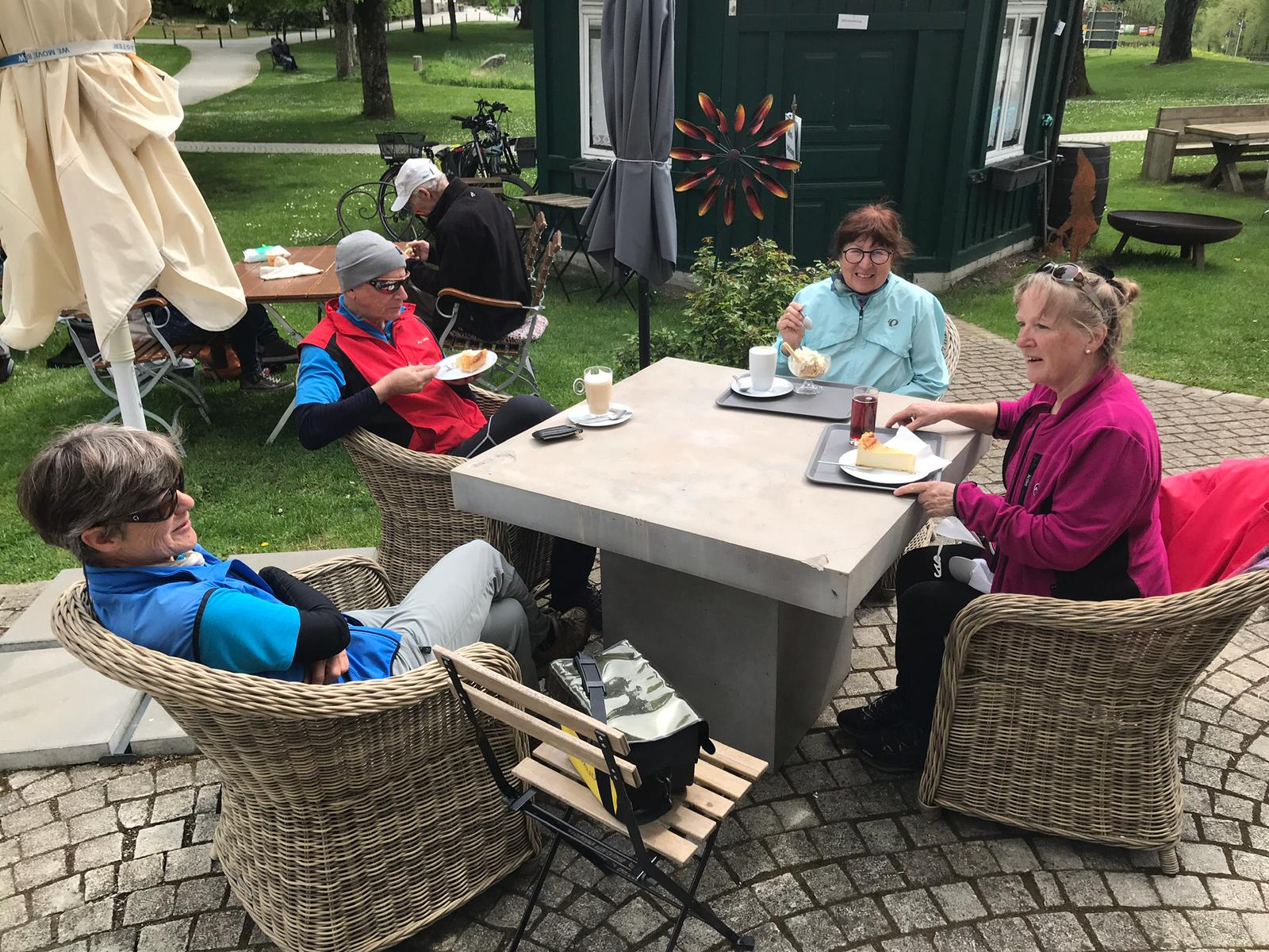 Jetzt war es nicht mehr weit zurück zum Ziegelweiher, wo uns Herr Reinhold mit leckeren Kuchen und Kaffee auf der Terasse verwöhnte. Wir waren gute drei Stunden unterwegs, hatten es wahrlich verdient verwöhnt zu werden und genossen es in vollen Zügen. Ein schöner, harmonischer Nachmittag ging mit zufriedenen Gesichtern und Gemütern zu Ende.