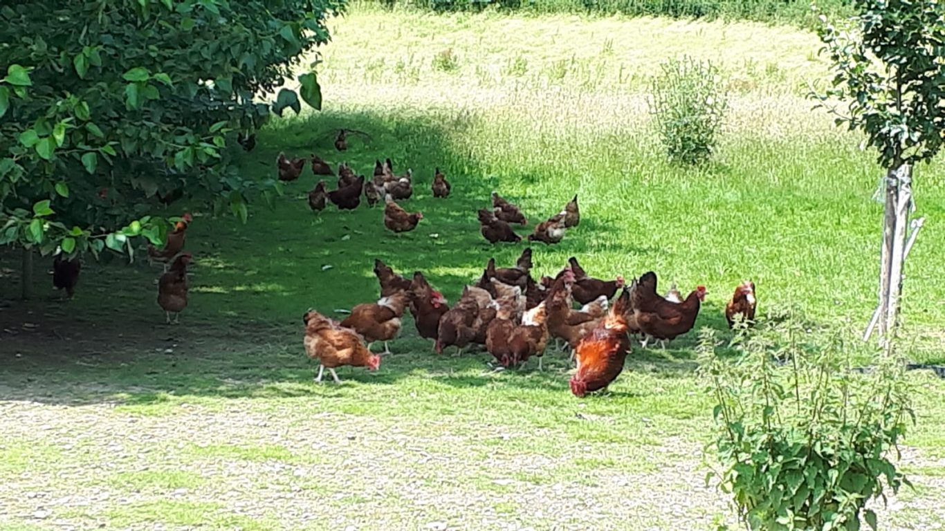 Neben den vielen Informationen hat auch das wunderschön anzusehende Getreidefeld voller Kornblumen neben dem Hof und das Scharren und Gackern der Hühner Freude gemacht.
