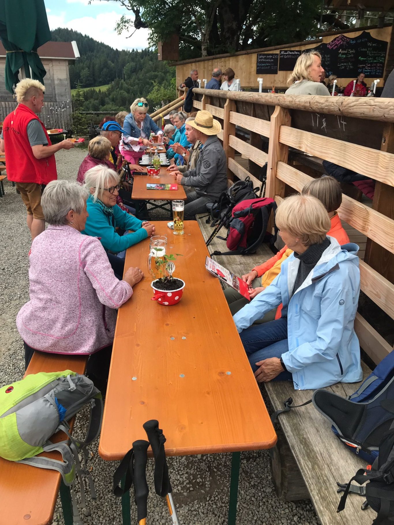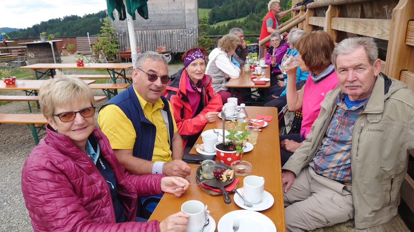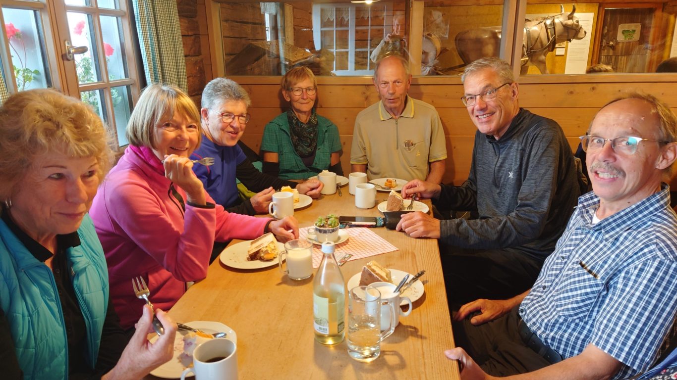 Gut gelaunt trafen die Wanderer dann auch auf der Höfle-Alpe ein und ließen es sich gut gehen bei herrlichen Kuchen, Kaffee, Tee und Vesper.