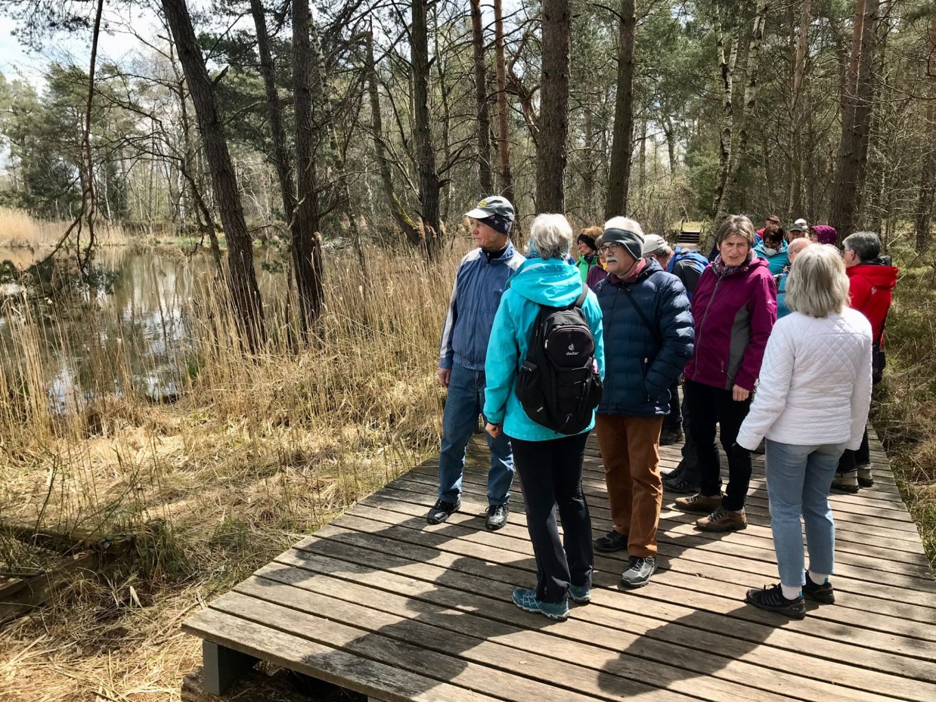 Im Kräutergarten vesperten wir anschließend. Dann spazierten wir zum ehemaligen Zeiler Torfwerk und machten uns auf den Torfstecherweg mit Schautafeln, alten Geräten und einem Moortretbecken. Das Wetter war uns gnädig! Im rustikalen Wurzelsepp, der ehemaligen Torfstecherkantine, kehrten wir ein. Die Freude über das Zusammensein nach der Winterpause war nicht zu überhören. Zum Gelingen des Ausfluges haben wieder Christine und Uli beigetragen. Vielen Dank euch!