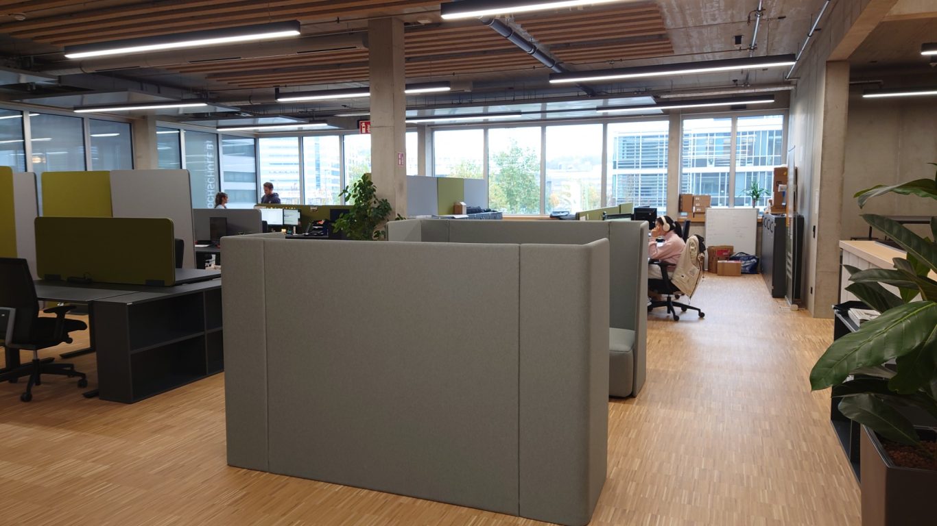 Wir sahen ein modernes, total funktionales Gebäude mit sehr viel Technik. Die Heizung z.B. ist eine Grundwasserwärmepumpe mit im Garten vergrabenem Eisspeicher. Sensoren im ganzen Gebäude dienen der Messung und Optimierung des Energieverbrauchs. Es gibt eine Klimakammer, in der die Langlebigkeit von Produkten unter Umwelteinflüssen getestet werden kann.
