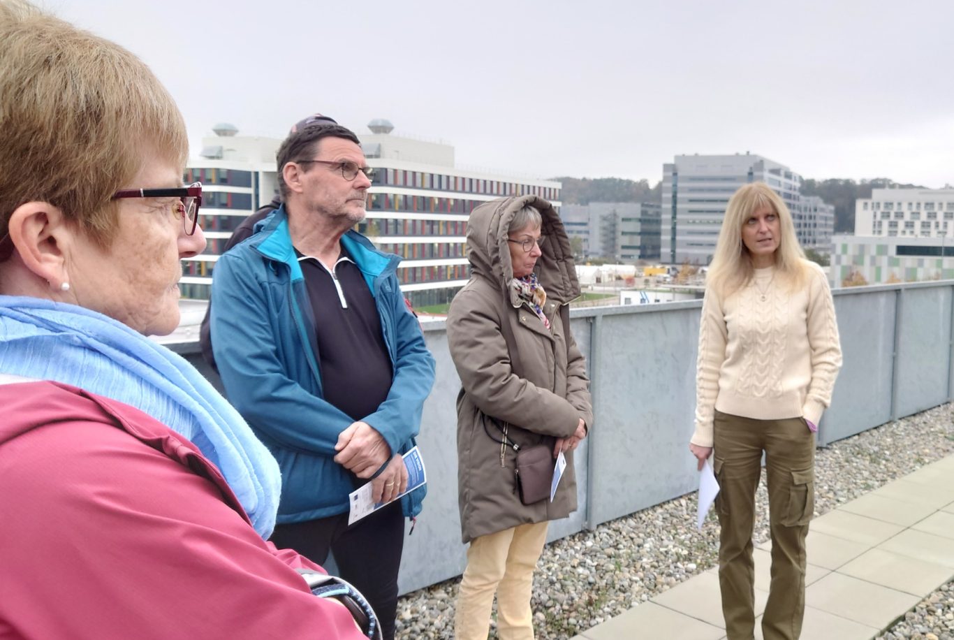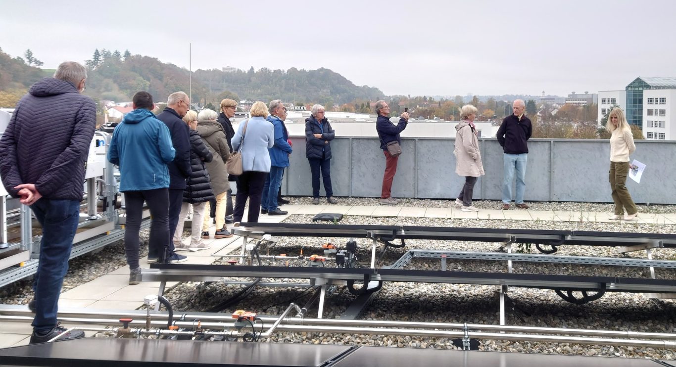 Beendet wurde die sehr interessante Führung auf dem Dach mit Blick auf den Industrie- und Wissenschaftsstandort Biberach, insbesondere auf die Gebäude von Böhringer und der Hochschule.