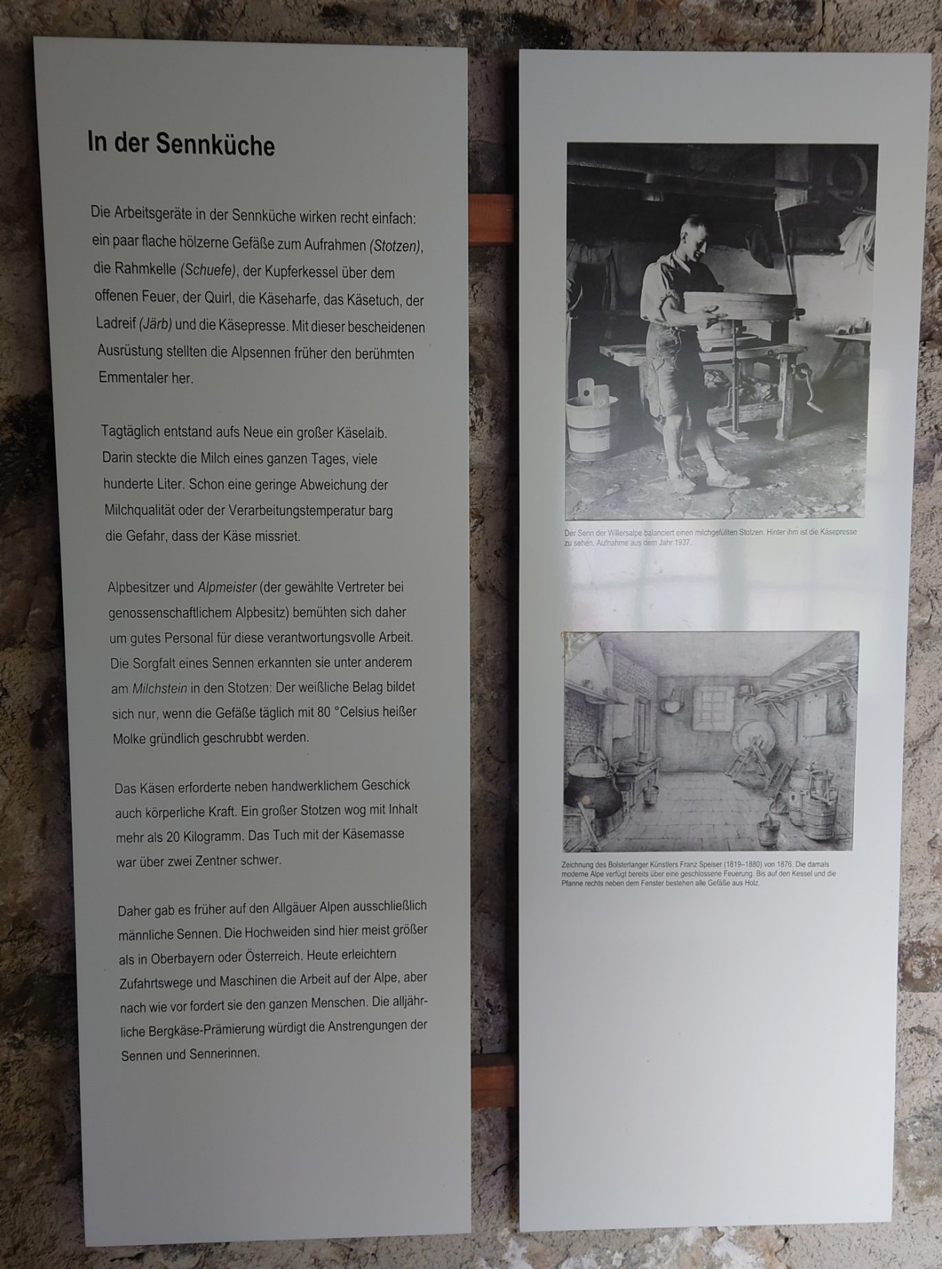 Diese Wanderung ist Teil des Karl-Hirnbein-Wegs, der ihm zu Ehren so benannt wurde. Karl Hirnbein ist der Allgäu-Pionier und wurde auch der Alp-König genannt nachdem der Aussichtsturm benannt wurde. K. Hirnbein hatte den Käse im Allgäu eingeführt und mit zahlreichen Bauern Milchverträge abgeschlossen. 1836 hatte sich der Käse so weit ausgebreitet, dass der Magistrat von Kempten dessen Einschränkung zum allgemeinen Wohl forderte, da er die Luft verpeste und die Mitmenschen belästige.