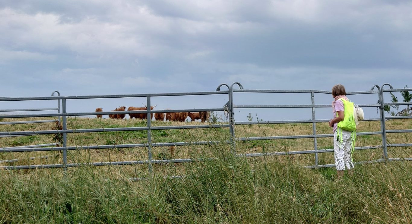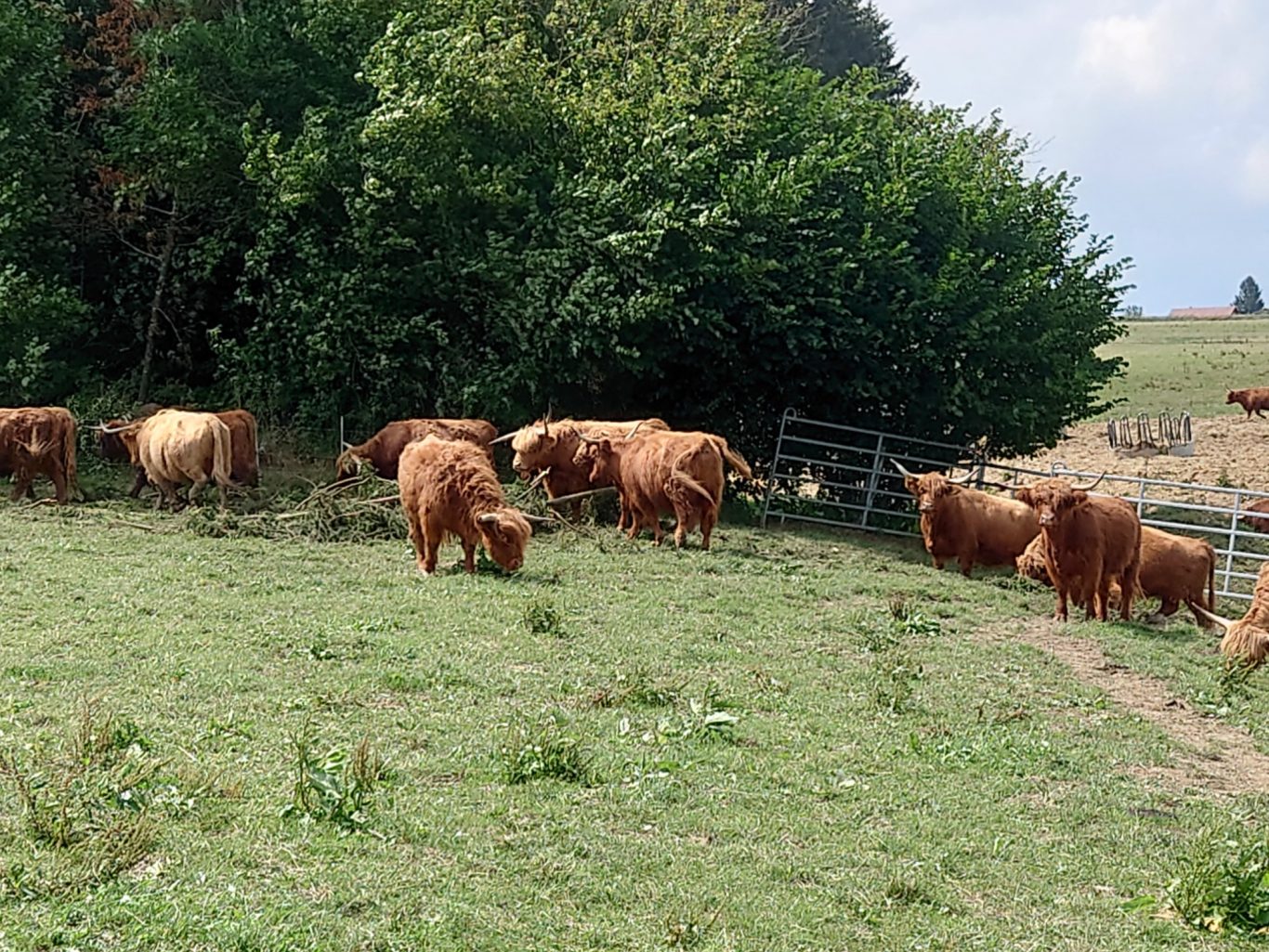 Thomas erklärte uns den Hof, bei dem wie er sagte von der Geburt der Tiere bis zum Teller alles aus eigener Produktion gemacht wird. Es werden zur Zeit 146 Hochlandrinder und ca. 30 Schweine gehalten.