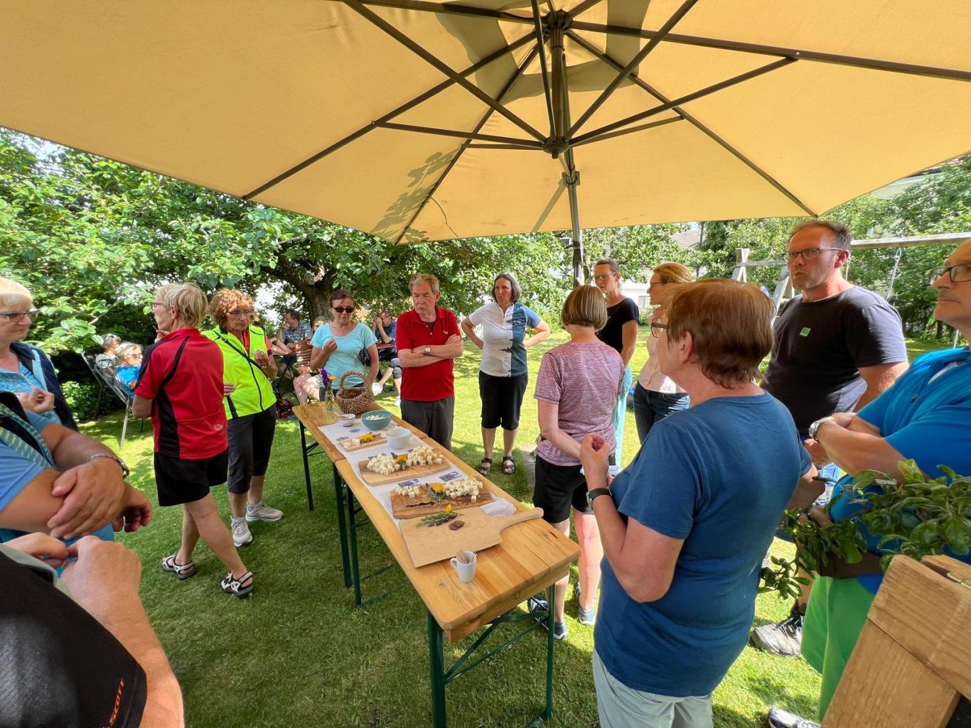 Im Anschluß wurde die Gruppe bewirtet, es gab selbst hergestellte Badhauserl Würste vom Grill im leckeren Weggle und Getränke.