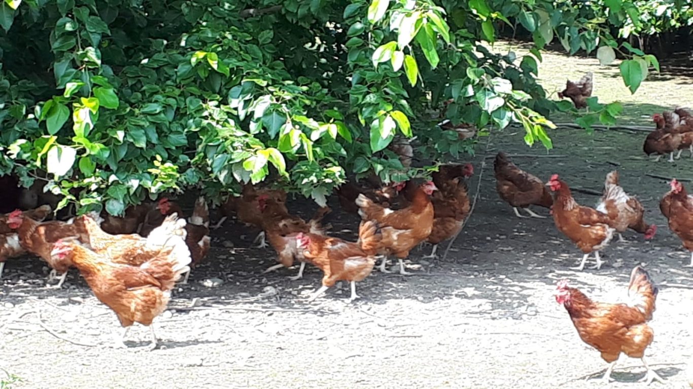 Die Familie Reisch bewirtschaftet 10 ha Grünland und 40 ha Ackerfläche, auf der 60 – 70 % des Hühnerfutters selbst erzeugt wird. In den Ställen mit Volieren und weiträumigen Freiläufen werden mit 3.000 Hybrid-Legehennen und 1.800 Zweinutzungshühnern täglich 3.000 – 3.500 Eier produziert .Nach 18 Legemonaten werden die Hühner im Alter von etwa 2 Jahren zu Suppenhühnern. Daneben gibt es auf dem Hof noch Rinder in Mutterkuhhaltung.
