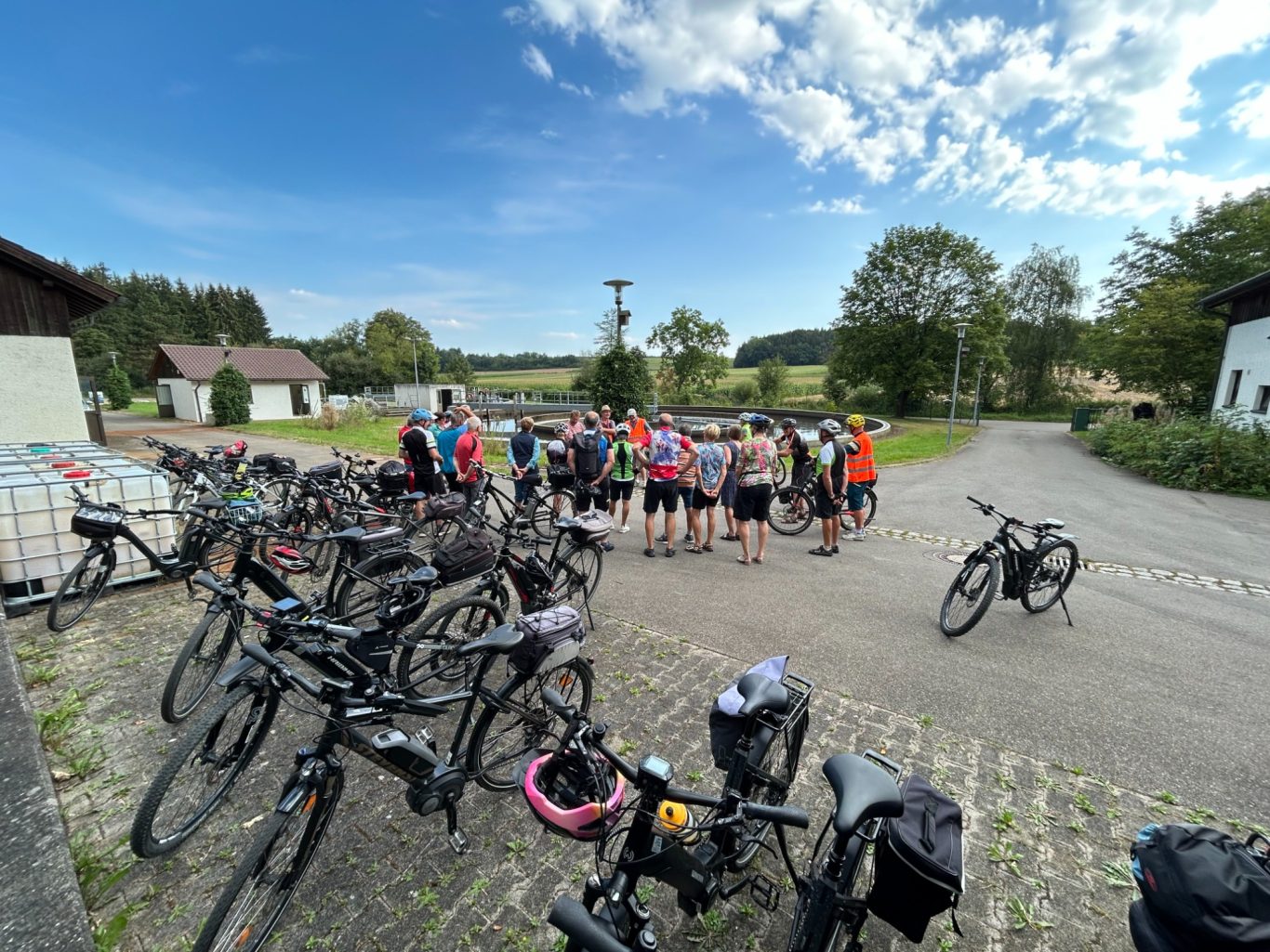 25 Radler machten sich am 14.August 2024 auf den Weg zum Mobipark. Eberhard Lehmann hatte seine für den 18.September geplante Tour auf diesen sommerlichen Tag vorgezogen. Start war um 8:30 Uhr am Aldiparkplatz. Entlang der Rottum ging es zur Kläranlage Schönebürg. Ein Mitarbeiter erklärte Funktionsweise, Kapazität und Wirkungsmechanismen der Anlage, die das Abwasser von ca 13.000 Menschen so reinigt, dass es in die Rottum eingeleitet werden kann. Die Weiterfahrt ging immer auf Radwegen über Mietingen, Baustetten zum großen Laupheimer Baggersee. Dieser wird seit vielen Jahre als vielfältiges Wassersportfreizeit-Zentrum genutzt. Die obligatorische Einkehr erfolgte im Biergarten des Mobiparks. Zurück radelte die Gruppe über Baltringen mit Jacobus Kapelle, einem Blick auf die dortige Sonnenpark-Anlage rüber nach Heggbach mit Bussenblick. Durch den Heggbacher Wald erreichte man den Scheitelpunkt des Öchsles mit 598,13 m N.N. An dieser historischen Stelle oder in der Nähe gab es vor Jahren einen Indianerüberfall auf das Öchsle. Dies wussten Väter zu berichten, deren Söhne diesen Überfall im Auftrag eines bekannten Ochsenhauser Gastronomen ausgeführt hatten. Pünktlich vor Eintritt der großen Hitze waren die Radler zurück in Ochsenhausen. Fazit: Egal ob Radler oder Indianer – Hauptsache kein Plattfuß!