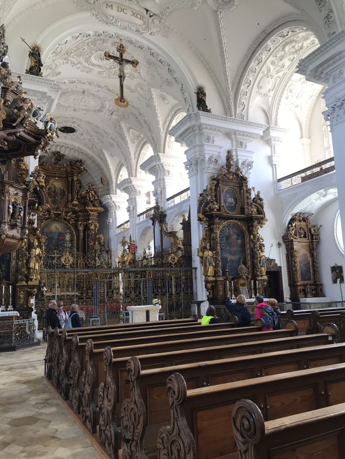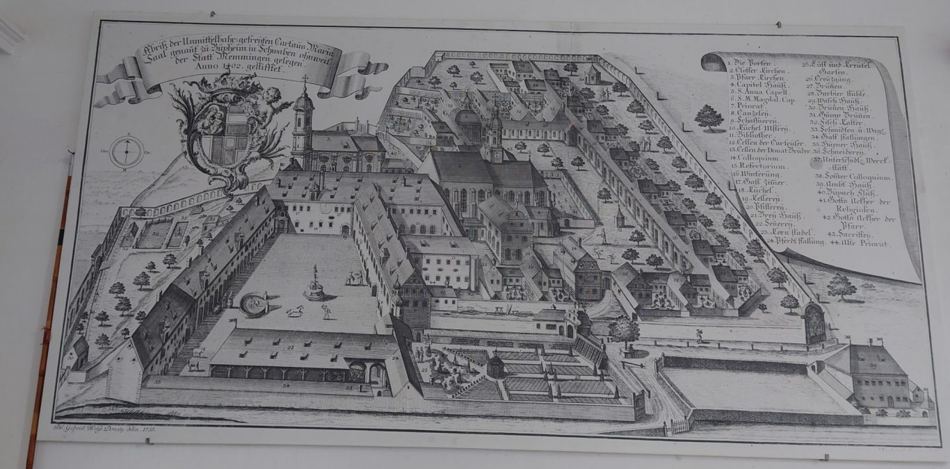 Nach kurzer Fahrt erreichten wir das Kloster Obermarchtal. Es ist die größte, komplett erhaltene Klosteranlage in Oberschwaben. Prämonstratenser-Chorherren aus Rot a.d. Rot gründeten es und das Münster wurde im Frühbarock errichtet. Weißer Stuck ziert Wände und Decken, farbige Fresken gibt es im Frühbarock nicht. Nach der Säkularisierung ging das Kloster an das Fürstenhaus Thurn und Taxis. 1973 kaufte die Diözese die gesamte Anlage. Heute sind eine Akademie für Lehrerfortbildung sowie die Franz-von-Sales Realschule untergebracht.