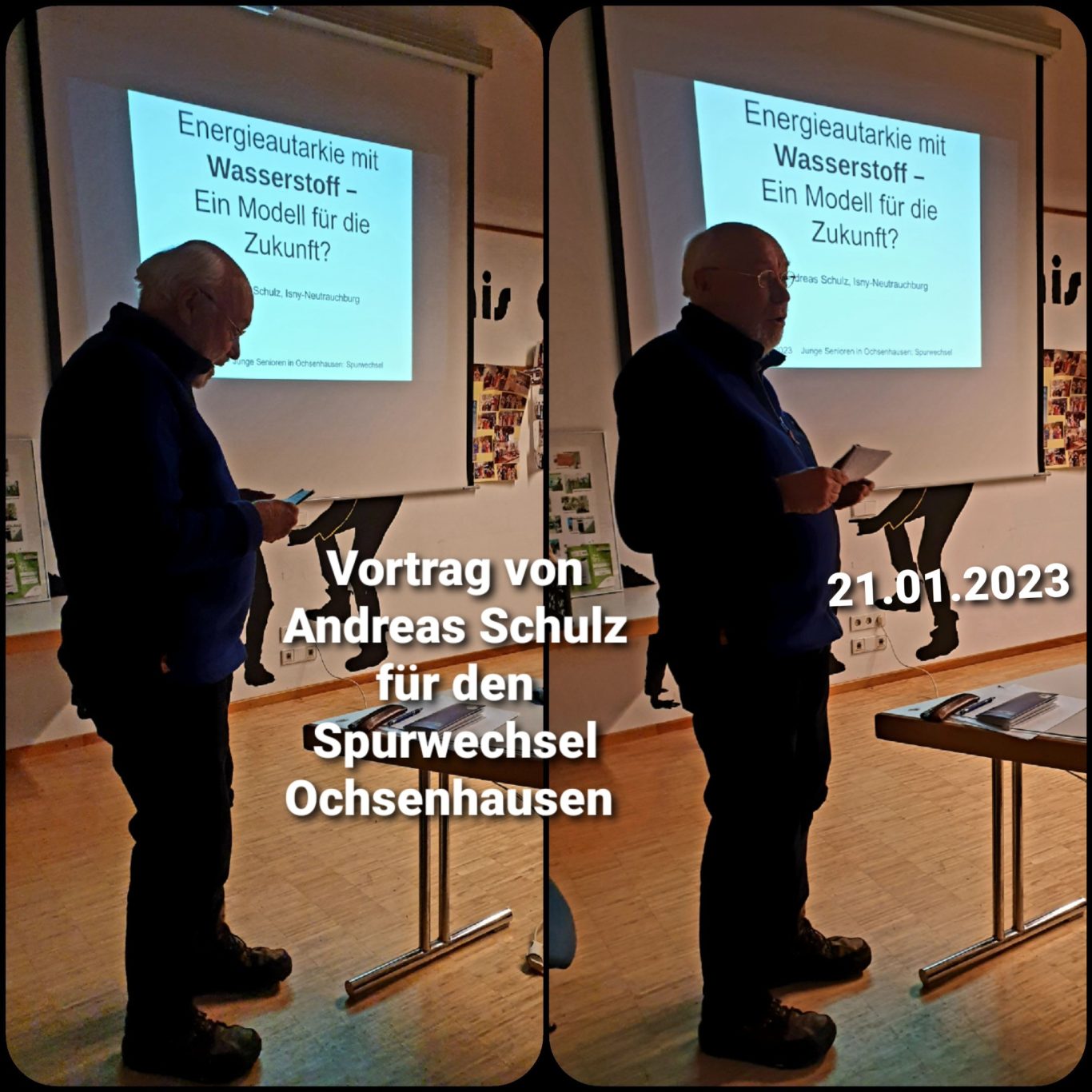 Andreas Schulz berichtete über die energetische Sanierung seines im Jahr 1967 in Isny erbauten Elternhauses. Der Umbau wurde 2021 fertiggestellt: Es entstand ein energieautarkes Zweifamilienhaus, in dem eine Wohnung vermietet wurde. Verschiedene Fachzeitschriften, und Fernsehsender brachten Berichte über dieses sanierte Haus im Allgäu (Eines der Ersten in Deutschland). Mehrere Professoren der entsprechenden Fachrichtung besichtigten dieses Objekt. Herr Schulz berichtete in Ochsenhausen über seine Pionierleistung und seine Intention, die energetische Transformation in Deutschland voranzutreiben. Die Zuhörer wurden bestens informiert über die Möglichkeiten, die auch bei uns in Deutschland für Privatleute mit Hilfe des grünen Stroms (z.B. aus einer PV-Anlage, einer Tiefbohrung mit Wärmepumpe u.ä.) gegeben sind. Ein Elektrolyseur im Keller spaltet Wasser in Sauerstoff und Wasserstoff, der sowohl mit Hilfe einer Brennstoffzelle als auch mit Hilfe einer Batterie gespeicherte Energie nach Bedarf zur Verfügung stellen kann. Das heißt: Der Mieter und der Eigentümer benutzen den Strom, den sie von der Natur geliefert bekommen für den Betrieb einer Vielzahl von Haushaltsgeräten und Pumpen, für die Heizung und das Warmwasser, ja sogar für das E-Auto. Beim Vortrag wurde deutlich, dass es bis zur Energieautarkie mit grünem Wasserstoff kein einfacher Weg ist; vor allem, wenn ein schon bestehendes Haus privat saniert werden soll. Aber Andreas Schulz wollte keinen Abriss, da hierfür graue Energie verlorengehen würde und dies seinem unbedingten Willen widerspräche, nachhaltig zu agieren und auf grünen Wasserstoff zu setzen, statt auf fossile Energieträger. Die begeisterten Zuhörer haben Argumente und gute Anregungen bekommen auch tätig zu werden. Und die nachfolgenden Generationen werden Personen wie Andreas Schulz, die heute die Initiative ergreifen und handeln, dankbar sein.