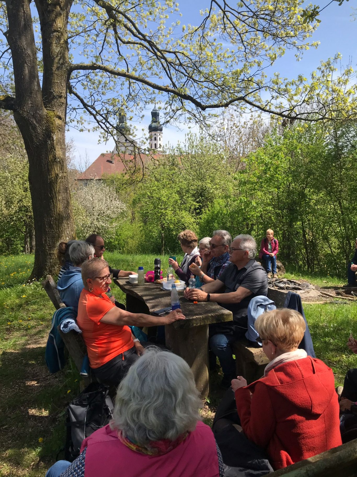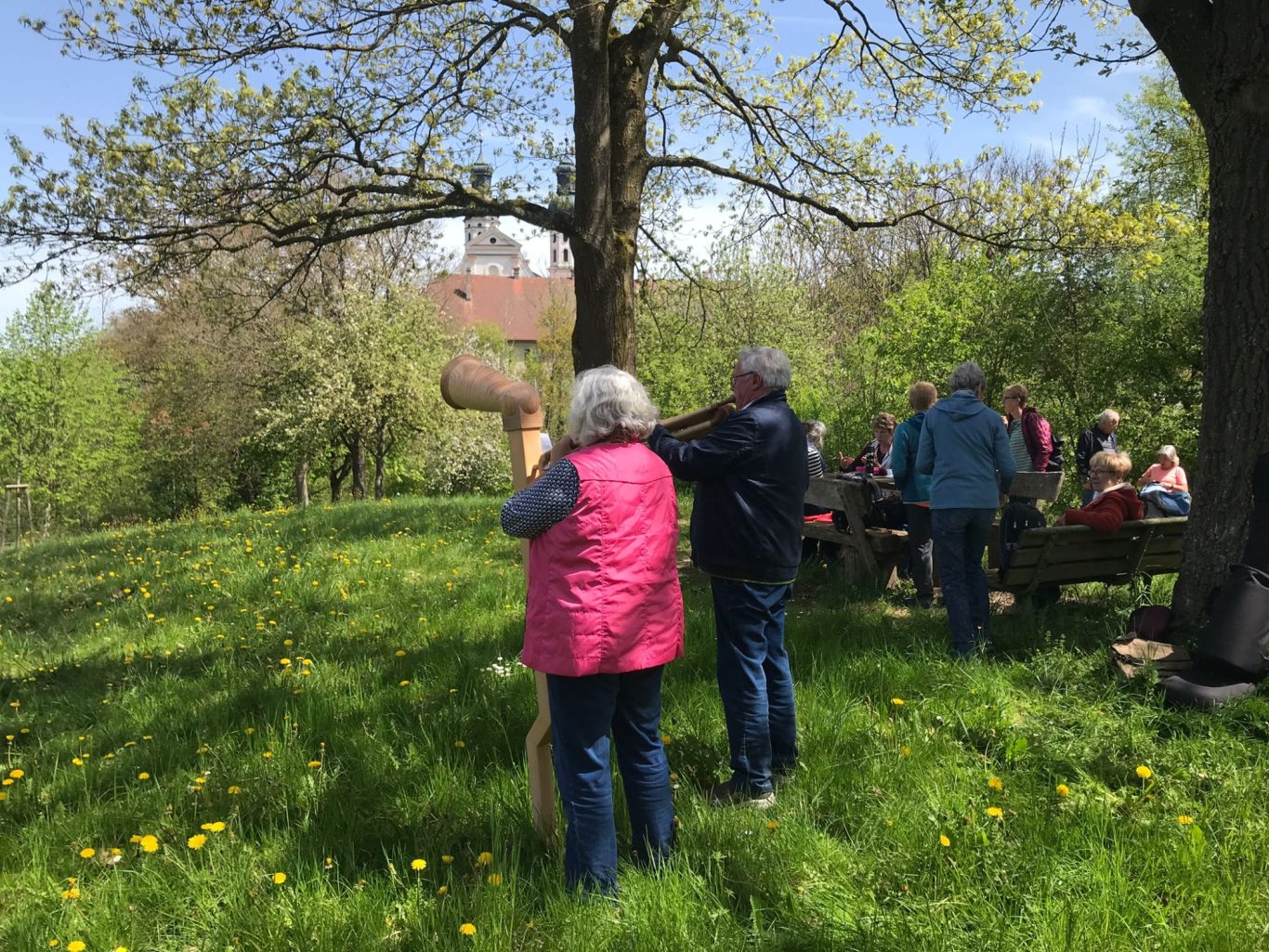 Eine Wanderung durch die herrliche Natur entlang der Donau und auf einem Naturpfad schloss sich an. Auch da wurden wir von Alphornklängen begleitet. Danke! Den ganzen Tag über hatten wir warmes, sonniges Wetter. Zum Abschluss saßen wir auf der Terrasse des Klostergasthofes und genossen in froher Runde Kaffee, Kuchen und Eis. Das geduldige Warten auf trockenes, warmes und sonniges Wetter hat sich gelohnt!