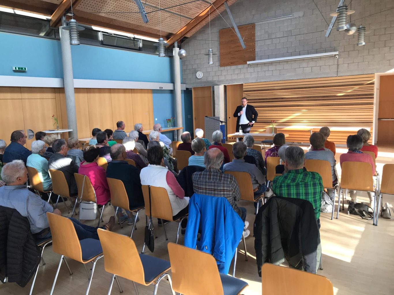 Der Arbeitskreis Spurwechsel hat am Donnerstag, 11. April 2024 zu einem Informationsabend mit Bürgermeister Bürkle eingeladen. Zahlreiche Seniorinnen und Senioren sind in das Katholische Gemeindehaus in Ochsenhausen gekommen.