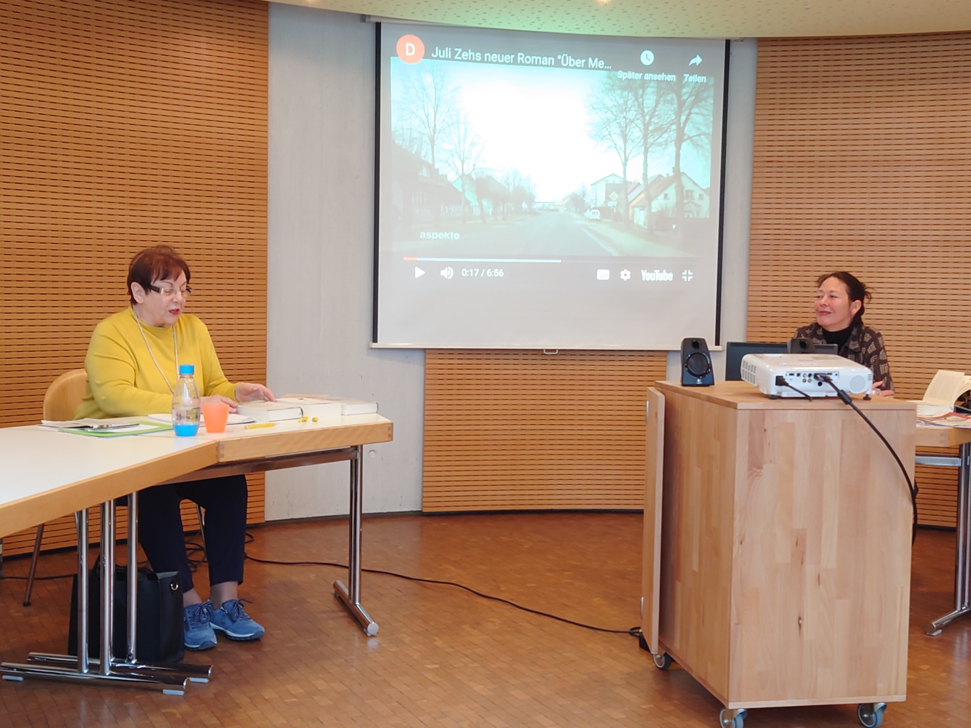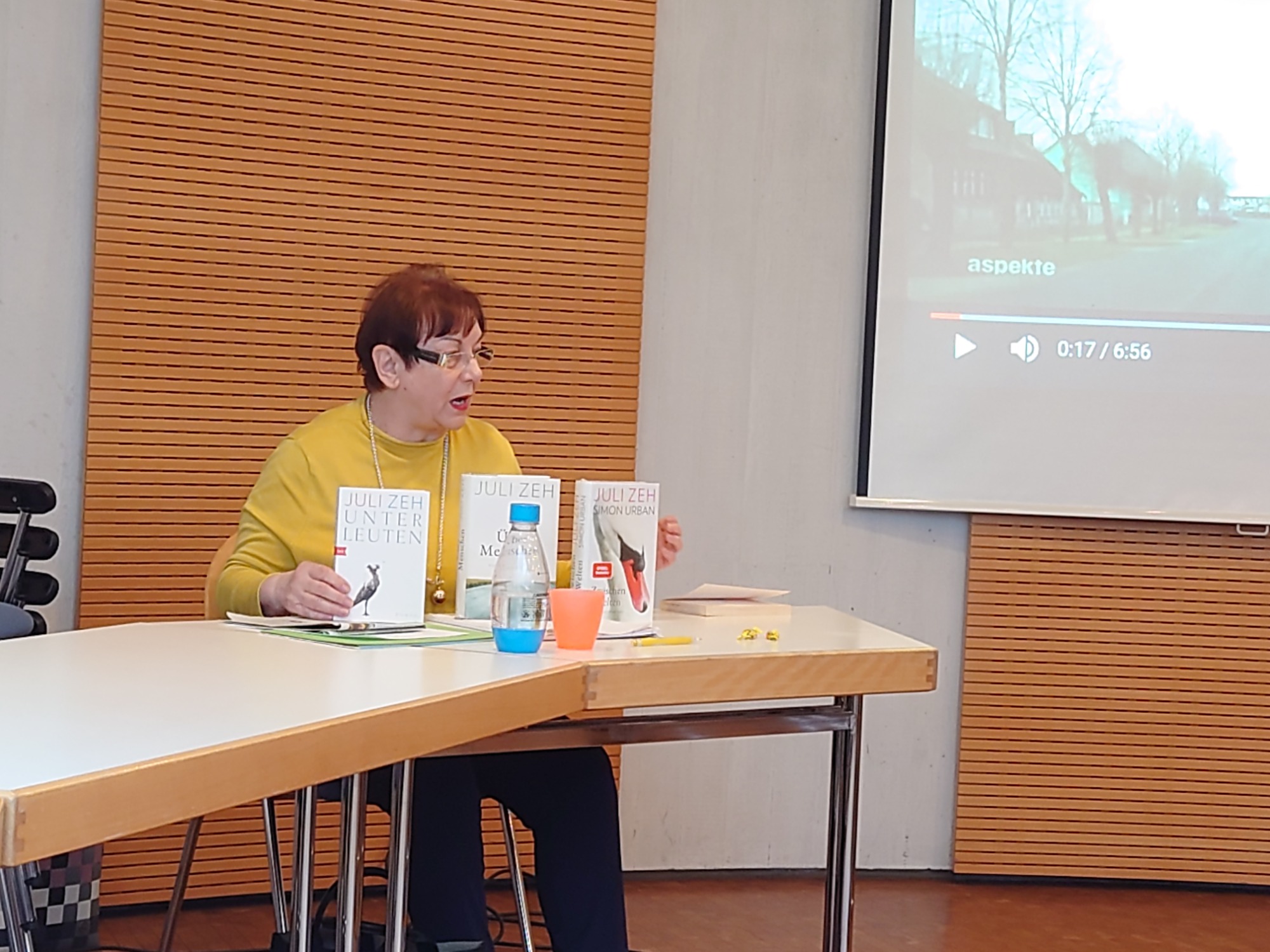 Um diese aktuelle conditio humana sowie um die Frage, was gute Literatur ausmache ging es bei der Vorstellung des Romans "Über Menschen", zu der sich einige Lesefreunde im Katholischen Gemeindehaus einfanden. Pat Goetz und Mathilde Mohn beleuchteten vor allem Handlungsaspekte und Phänomene des Zeitgeistes. Insgesamt eröffneten die Referentinnen durch Textbeispiele, Sprachbetrachtung und Querverweise, u.a. auf Physik und Philosophie, ihren Zuhörern einen Zugang zu Zehs Roman. Zum Schluss zitierte Pat Goetz Immanuel Kant: Seine große, immer noch gültige Frage " Was ist der Mensch?" erweist sich auch als Auftrag.