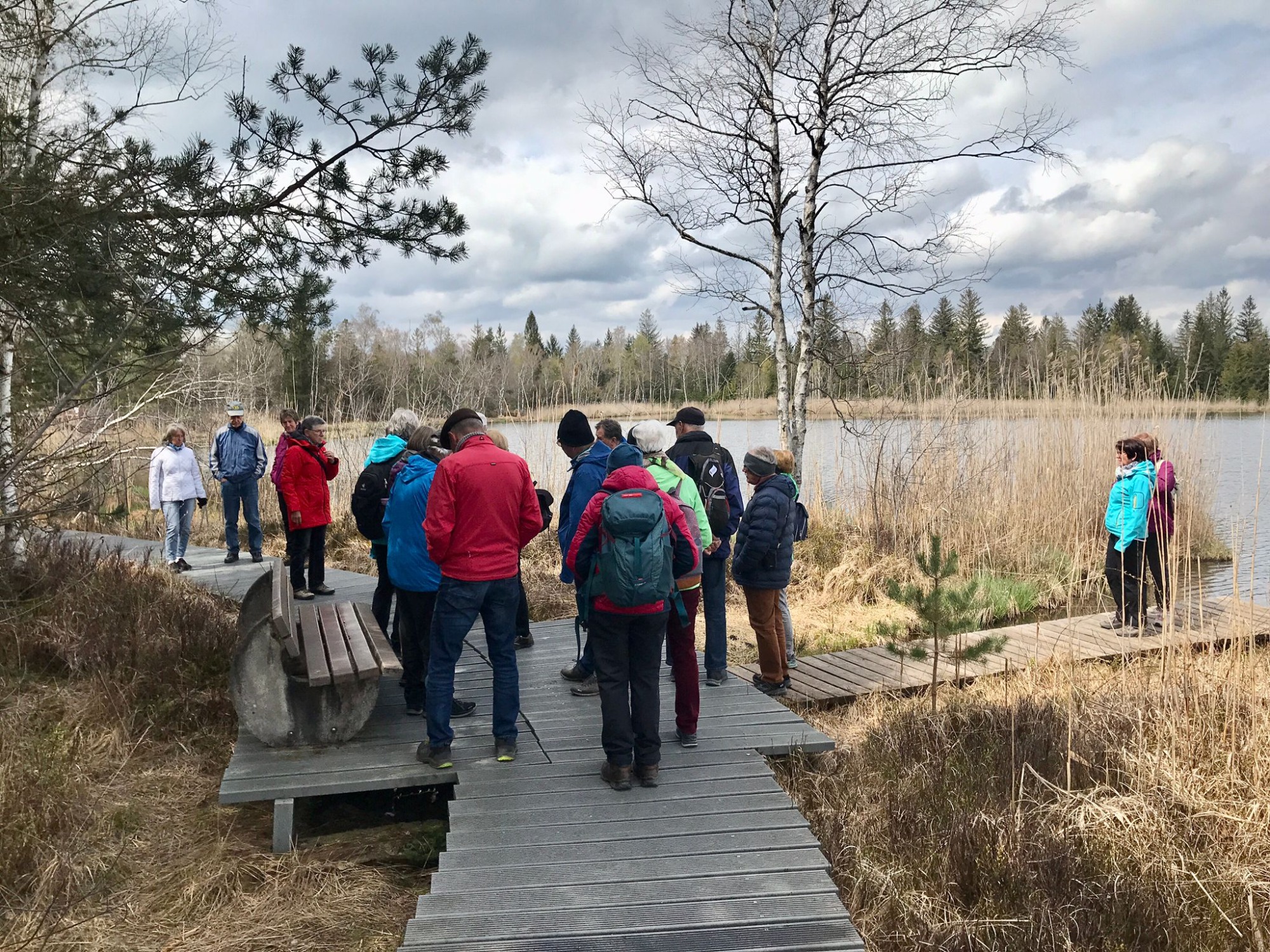 Im Kräutergarten vesperten wir anschließend. Dann spazierten wir zum ehemaligen Zeiler Torfwerk und machten uns auf den Torfstecherweg mit Schautafeln, alten Geräten und einem Moortretbecken. Das Wetter war uns gnädig! Im rustikalen Wurzelsepp, der ehemaligen Torfstecherkantine, kehrten wir ein. Die Freude über das Zusammensein nach der Winterpause war nicht zu überhören. Zum Gelingen des Ausfluges haben wieder Christine und Uli beigetragen. Vielen Dank euch!