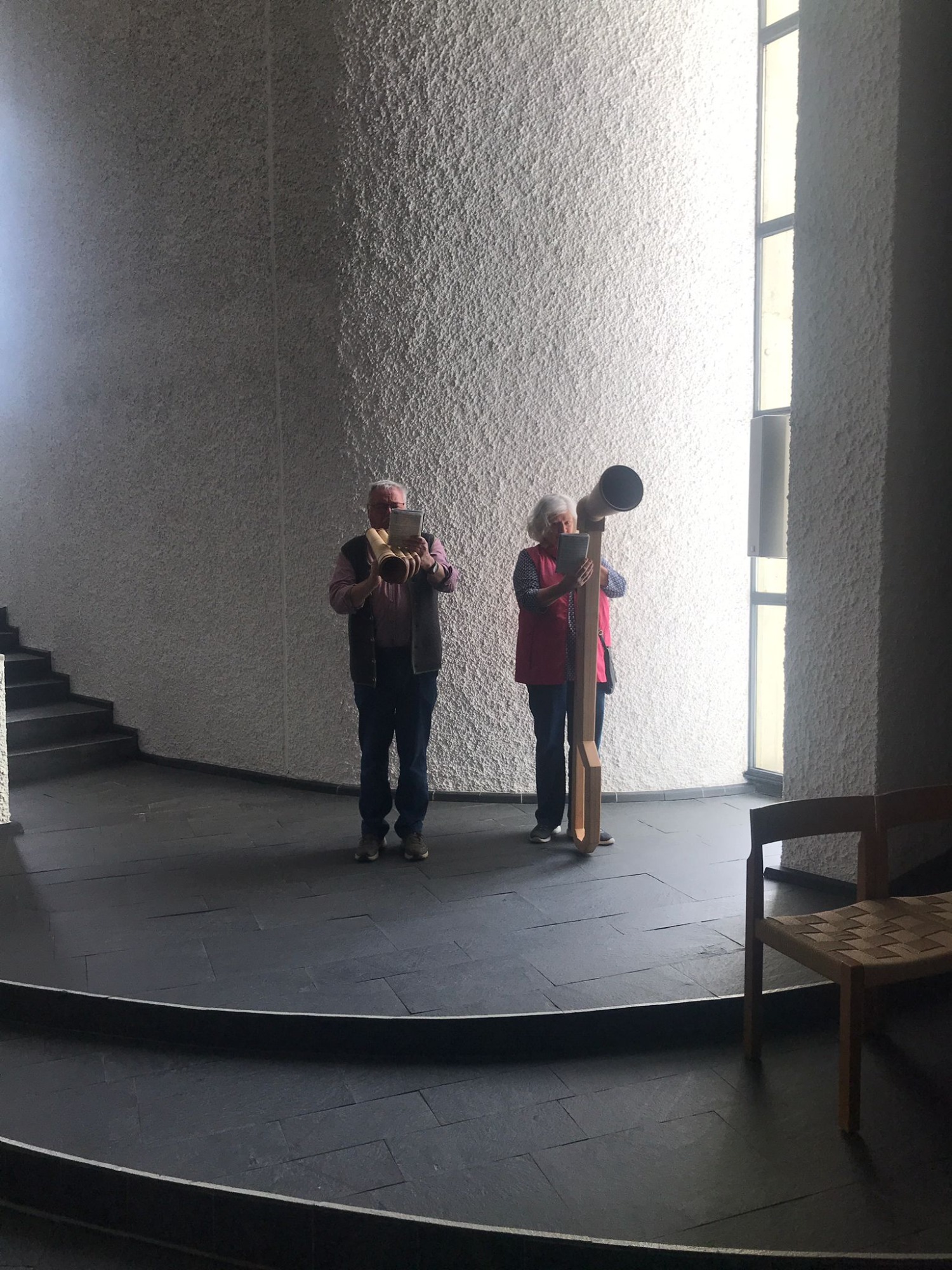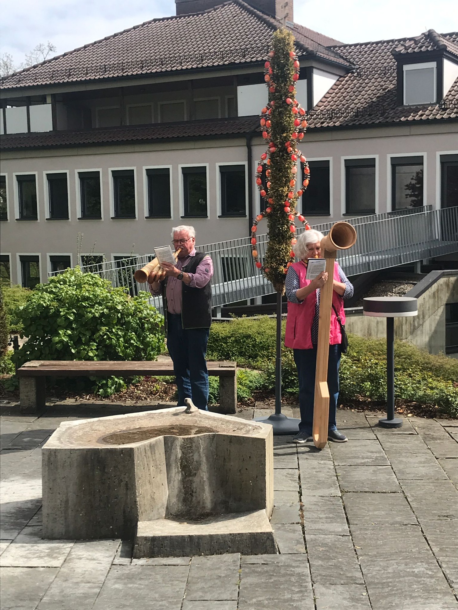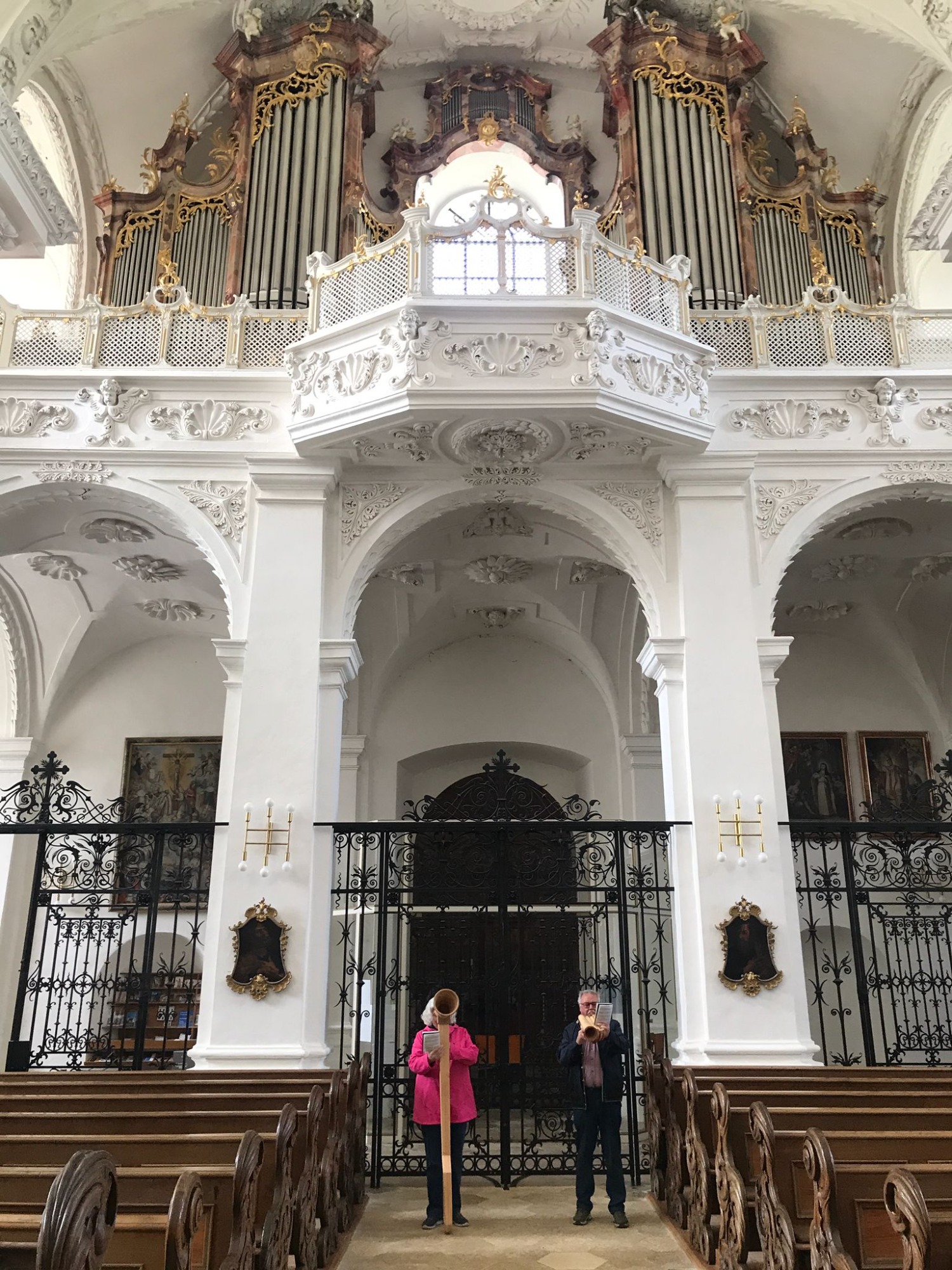 Bereits vor der Kirche und auch im Kirchenraum spielten Sabine und Hubert Wiest schöne Weisen auf ihren Alphörnern.