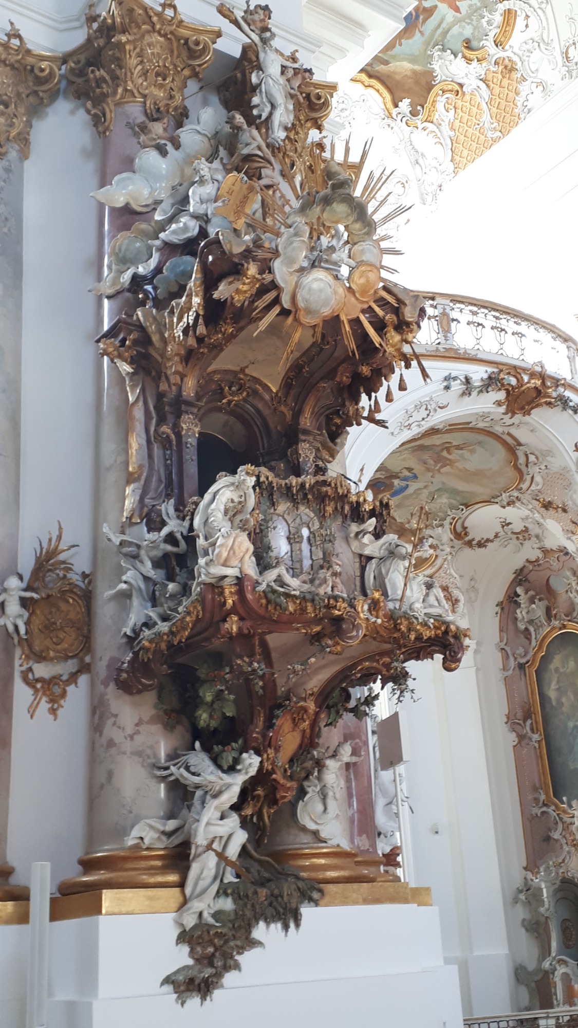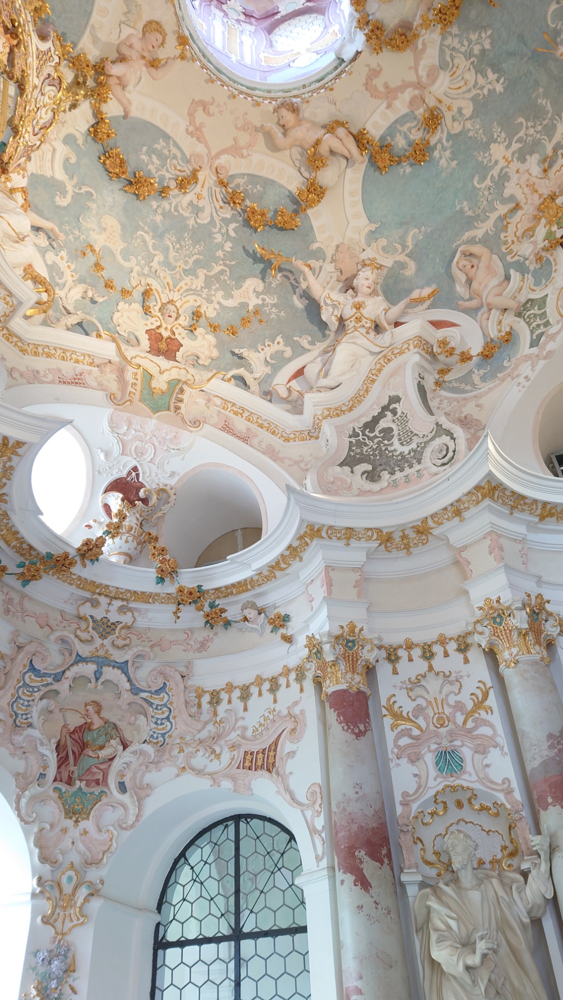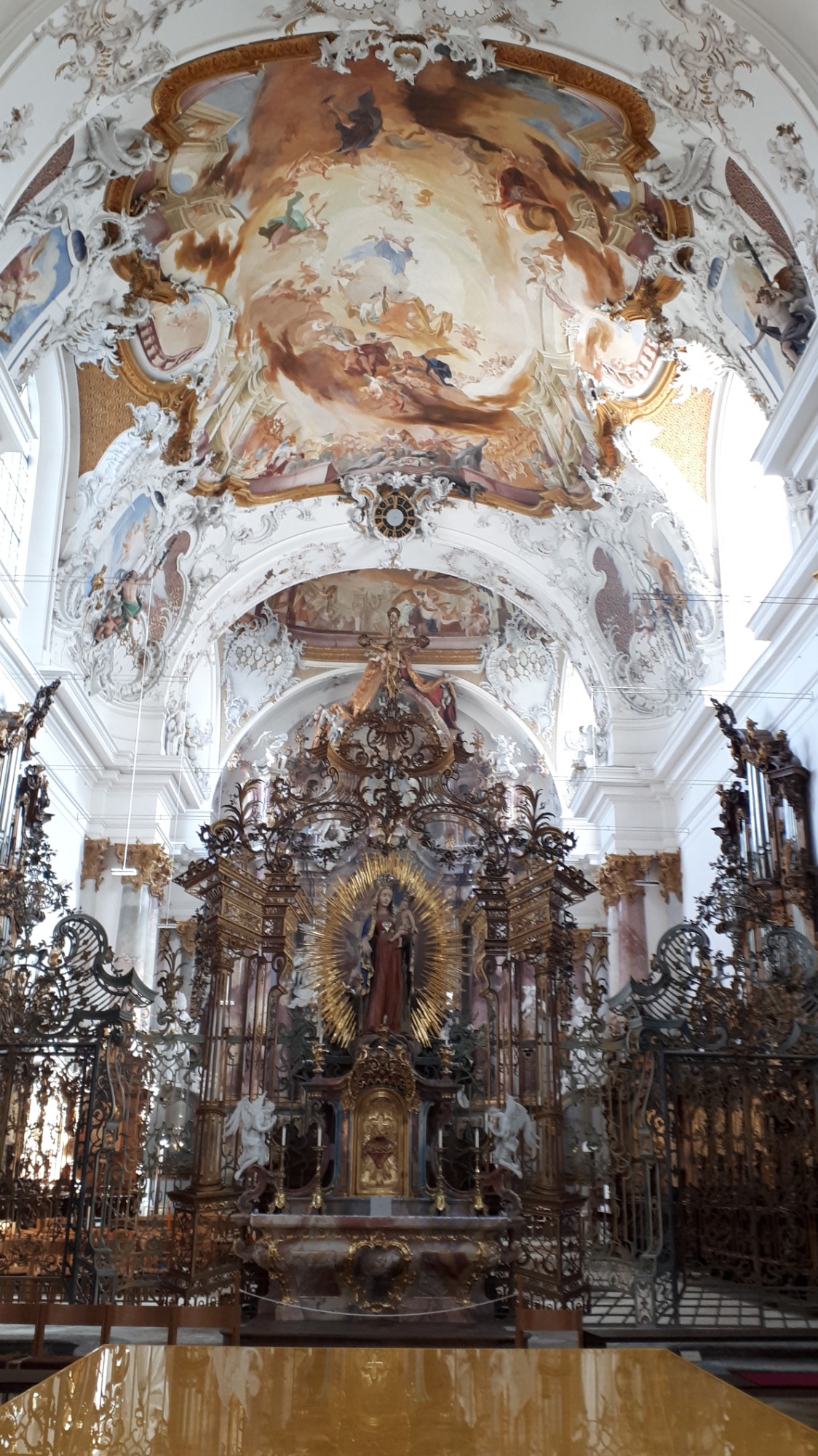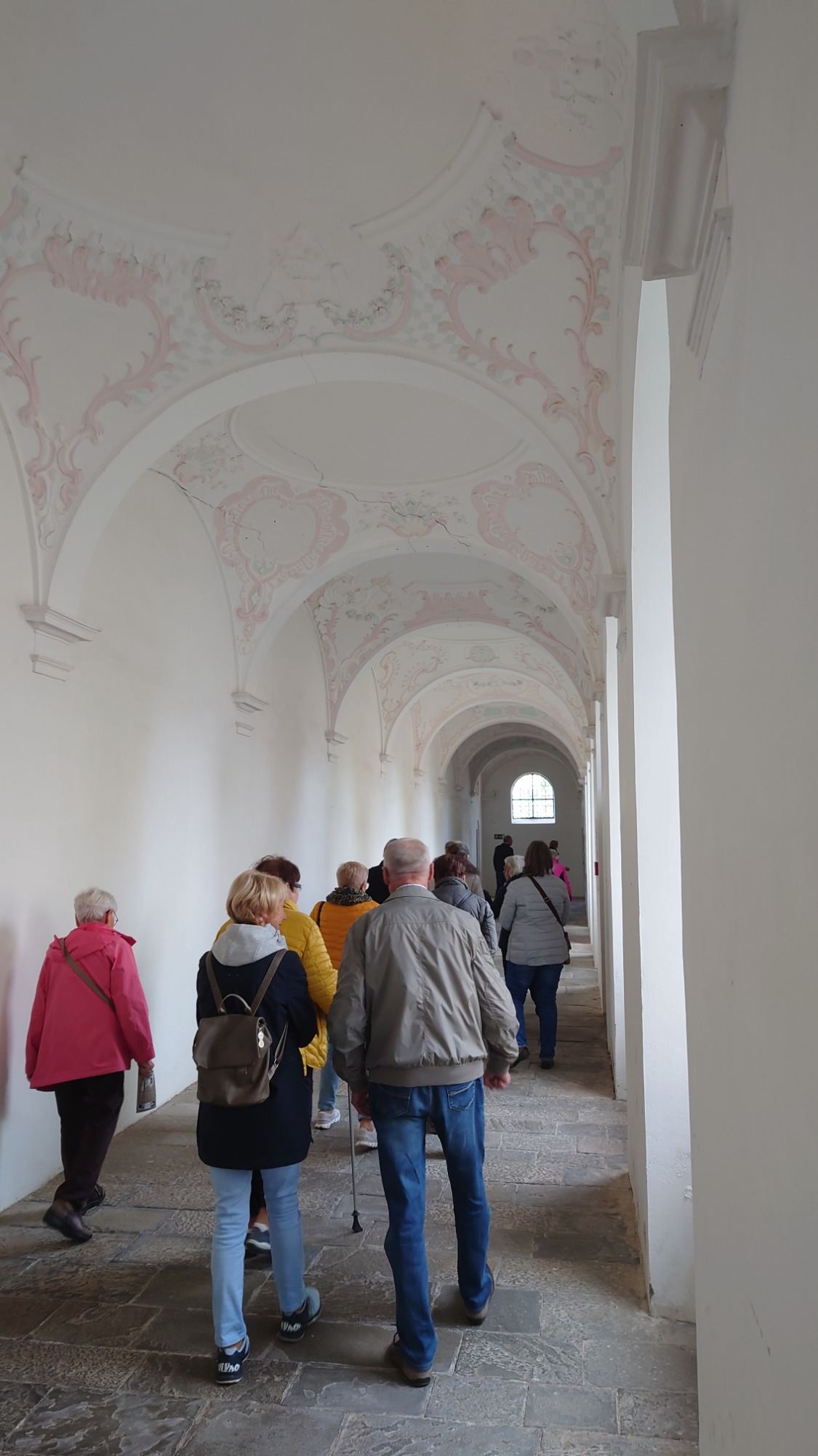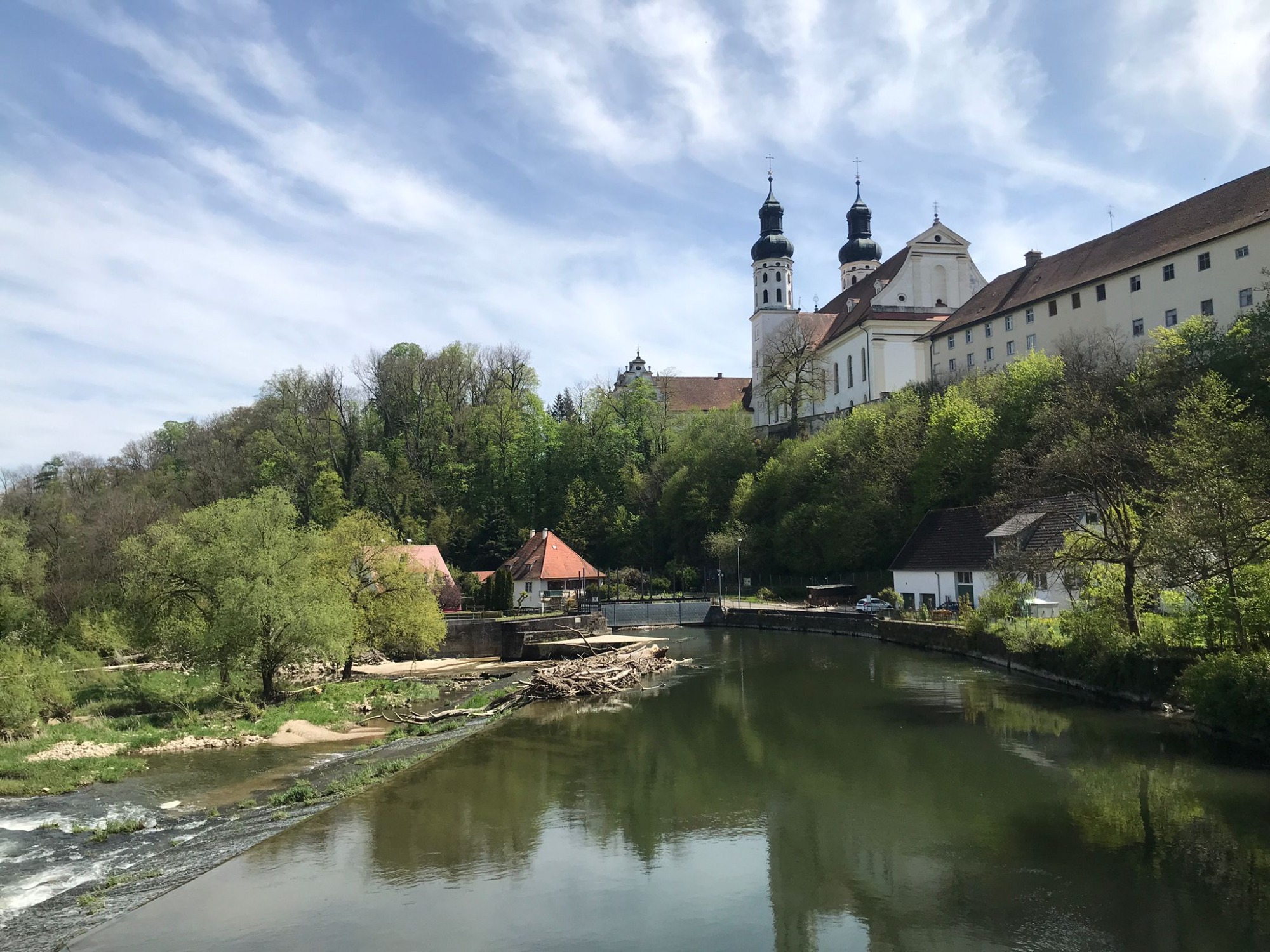 Nach kurzer Fahrt erreichten wir das Kloster Obermarchtal. Es ist die größte, komplett erhaltene Klosteranlage in Oberschwaben. Prämonstratenser-Chorherren aus Rot a.d. Rot gründeten es und das Münster wurde im Frühbarock errichtet. Weißer Stuck ziert Wände und Decken, farbige Fresken gibt es im Frühbarock nicht. Nach der Säkularisierung ging das Kloster an das Fürstenhaus Thurn und Taxis. 1973 kaufte die Diözese die gesamte Anlage. Heute sind eine Akademie für Lehrerfortbildung sowie die Franz-von-Sales Realschule untergebracht.