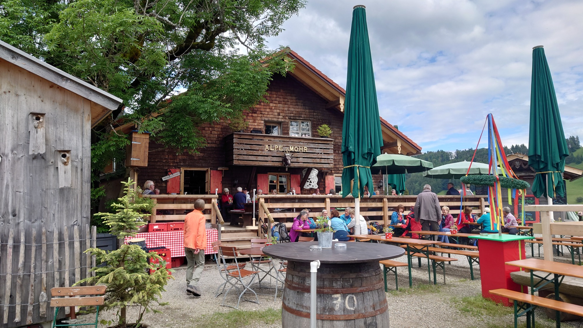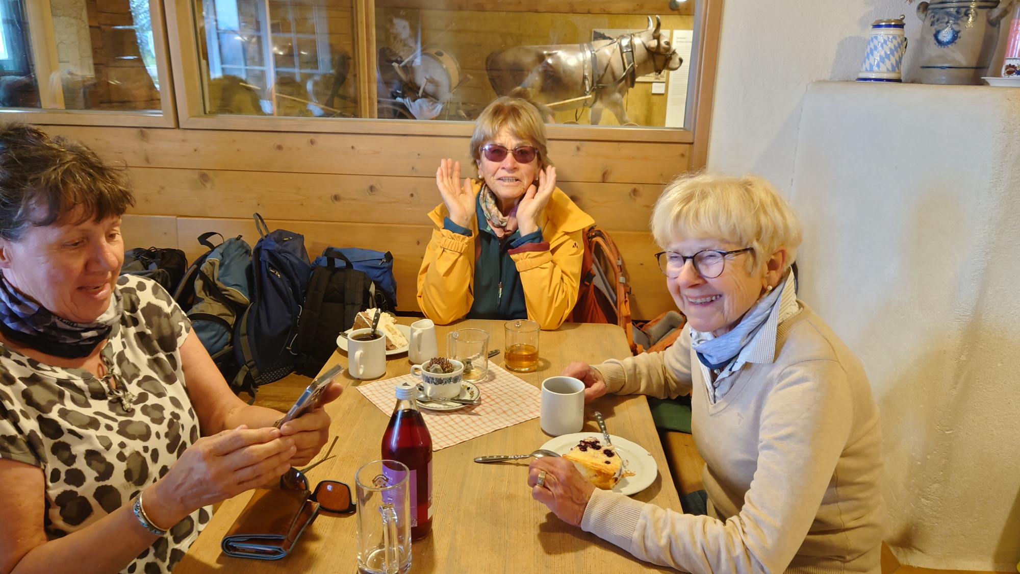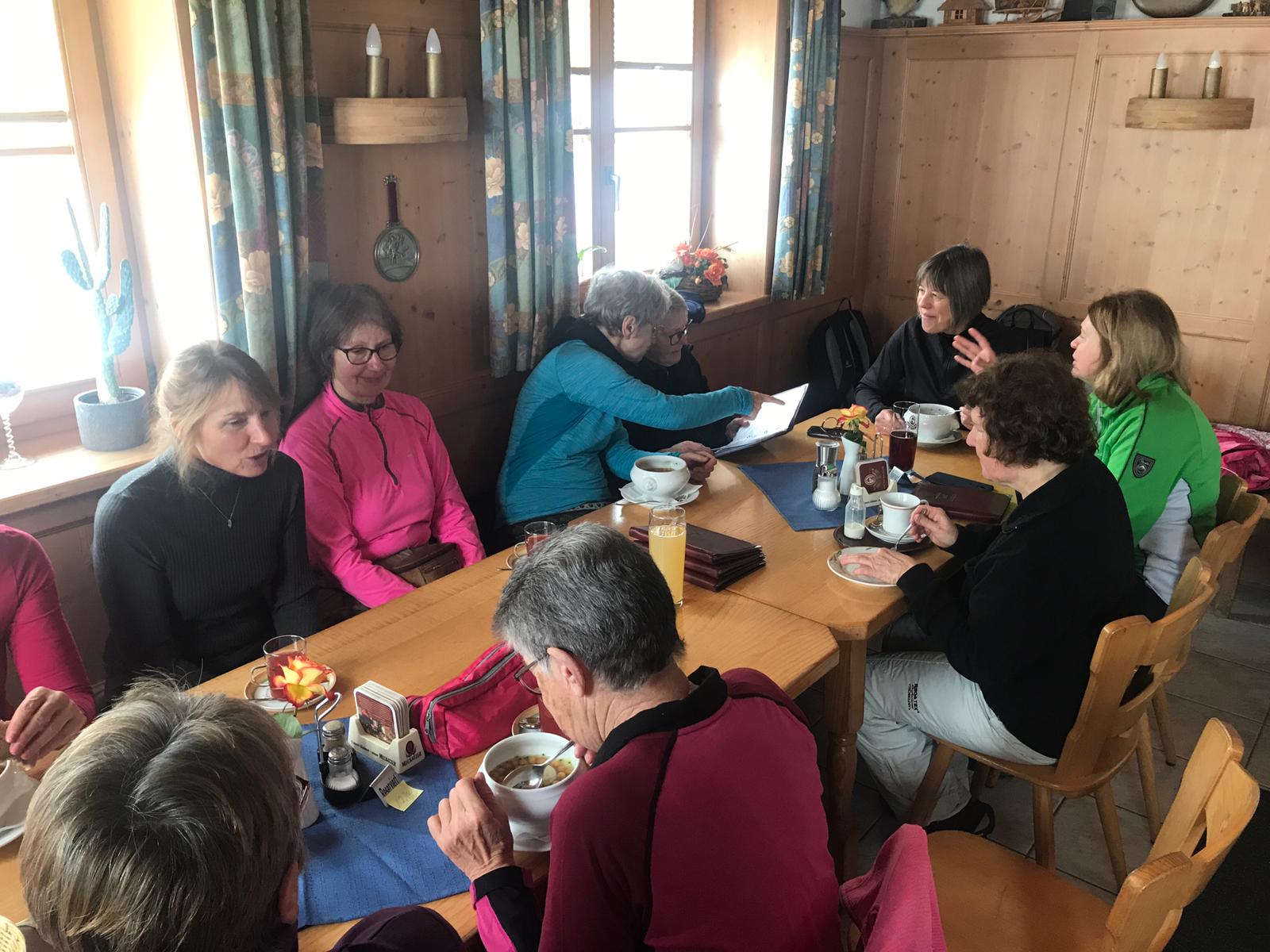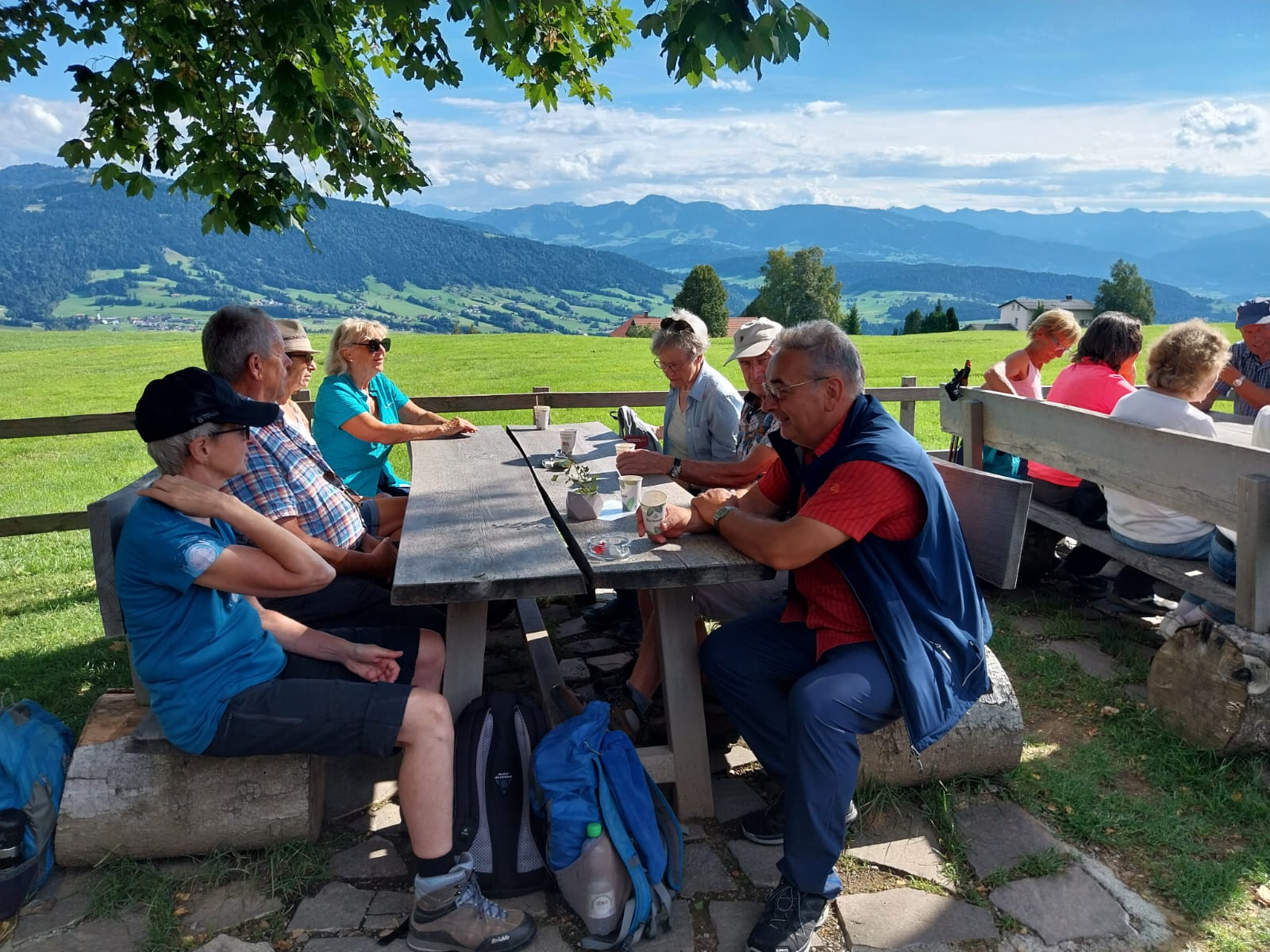 Gut gelaunt trafen die Wanderer dann auch auf der Höfle-Alpe ein und ließen es sich gut gehen bei herrlichen Kuchen, Kaffee, Tee und Vesper.