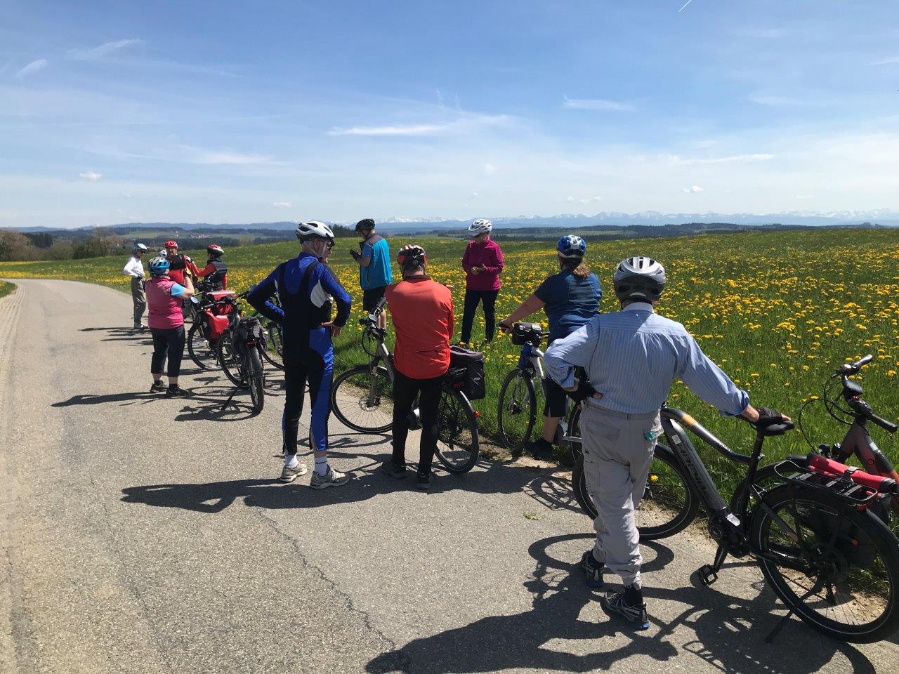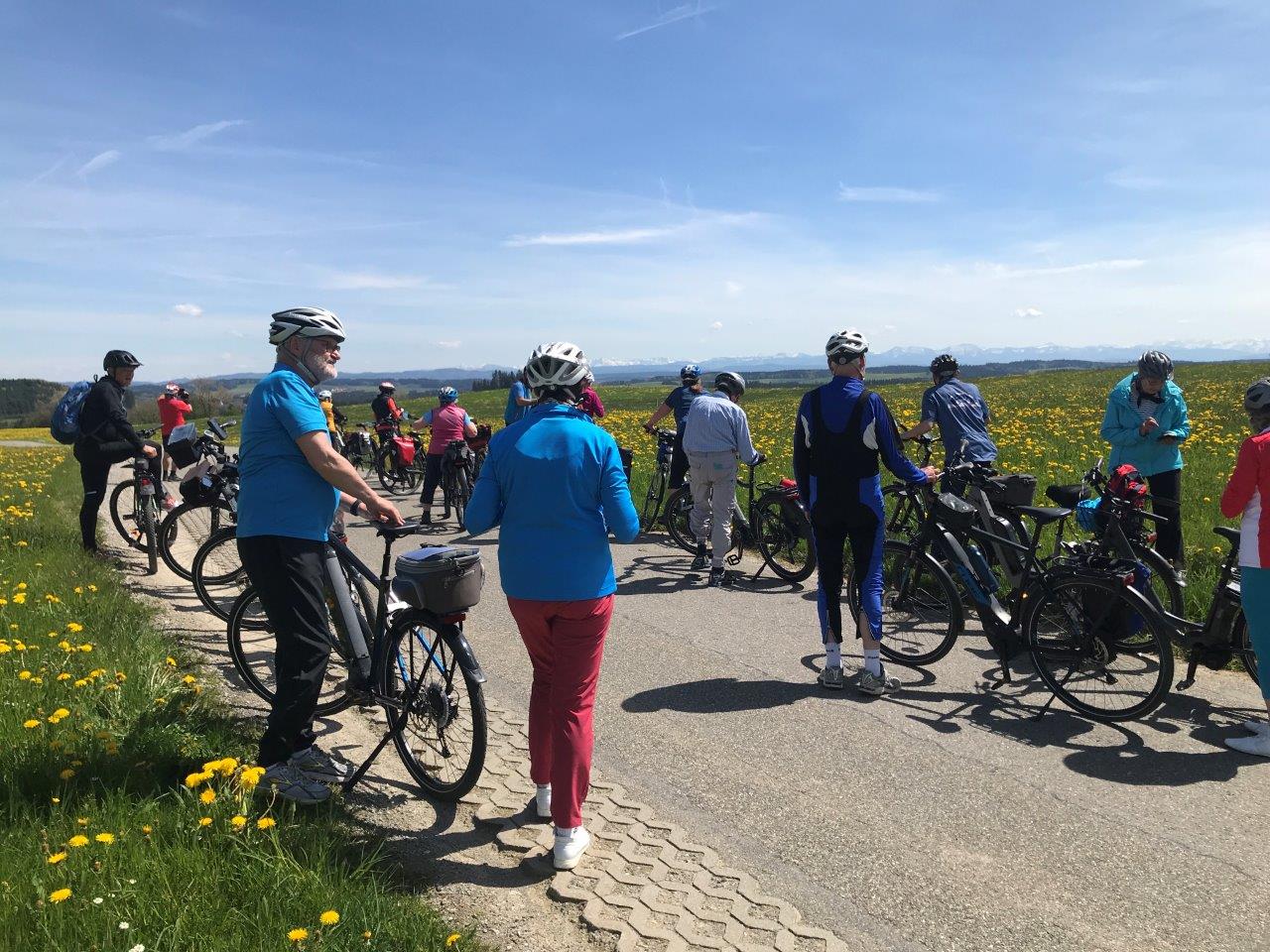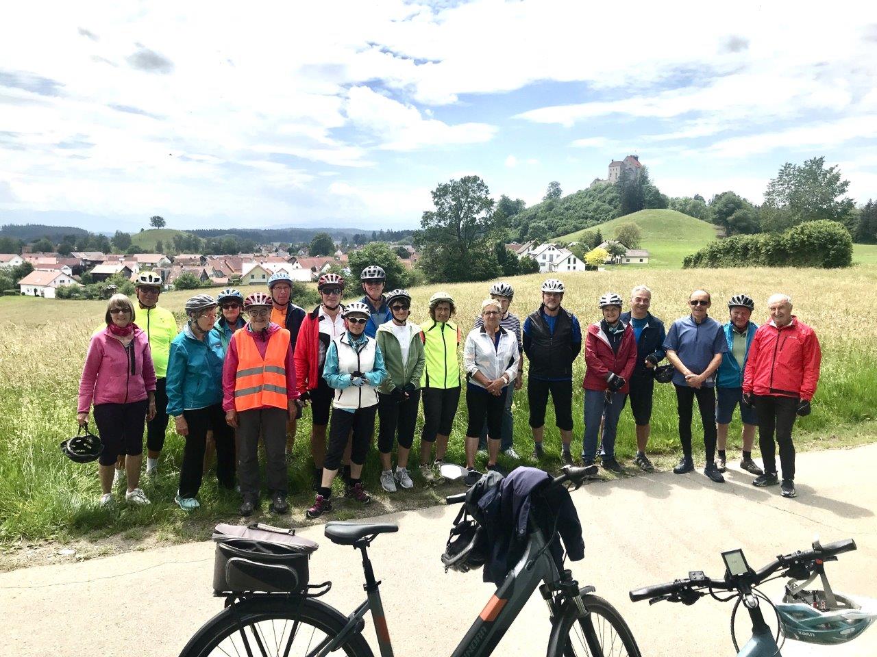 Nach einer längeren Kaffeepause in Waldburg führte der Rückweg durch das „typische Allgäu“. In ständigem Auf und Ab mit wunderschönen Ausblicken auf die Allgäu-Landschaft radelten die Teilnehmer über Rötenbach, Weitprechts und Ziegelbach zurück nach Bad Wurzach, das bei bester Stimmung und ohne Stürze, Pannen und Unfälle erreicht wurde.