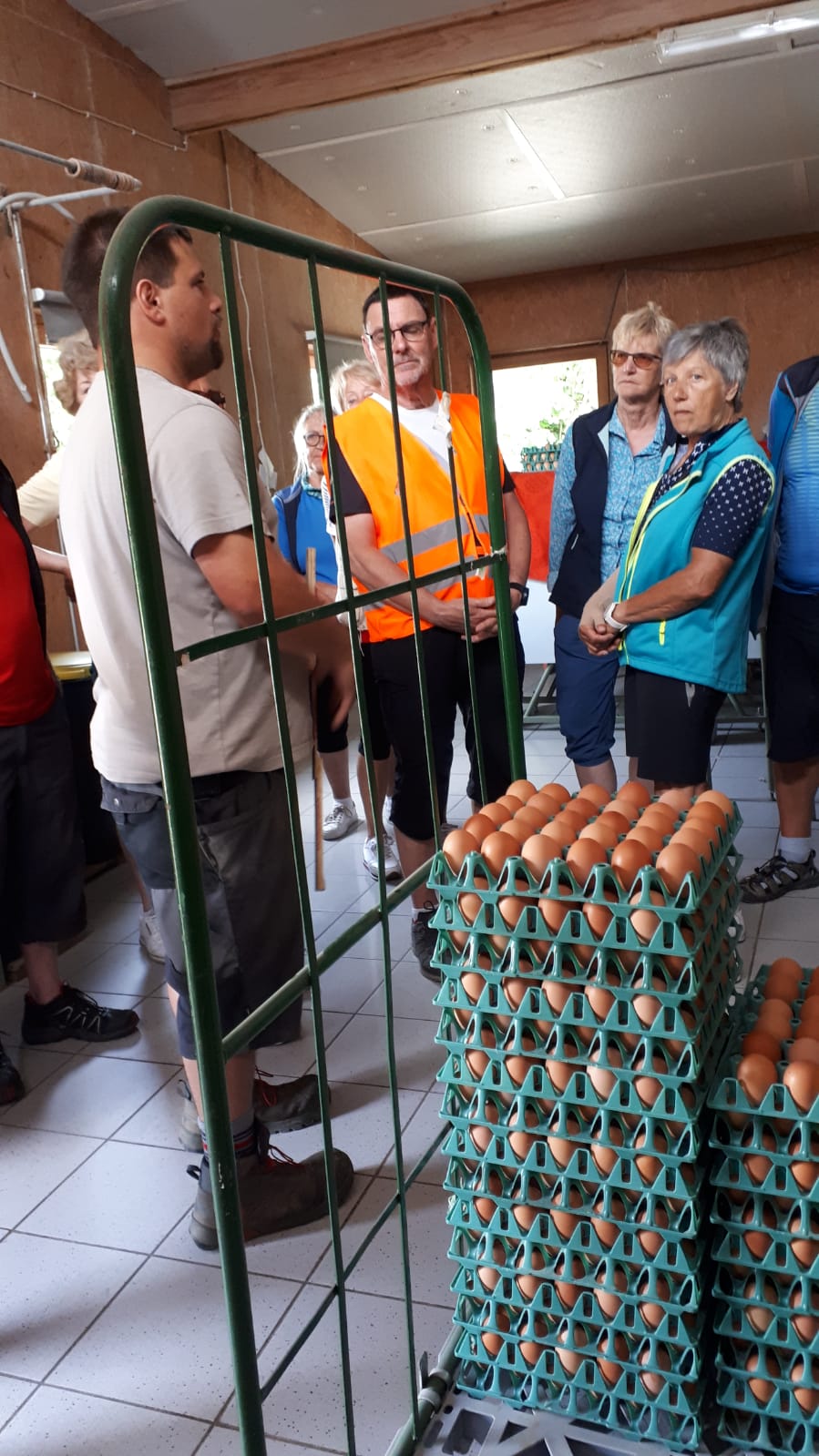 In Tannheim auf dem Demeter Geflügelhof Reisch ( AnGa Reisch GbR) haben uns Vater und Sohn Reisch ihren Betrieb, die Ställe und die Eiersortieranlage gezeigt und erläutert, wie gewirtschaftet wird und welche Bedürfnisse die Hühner haben. Geduldig und umfassend wurden alle unsere Fragen beantwortet.