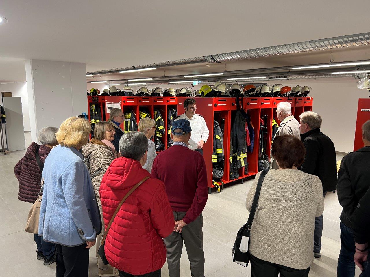 Zunächst wurde die Gruppe durch den stellvertretenden Feuerwehr-Kommandanten Jürgen Weiß anhand einer Präsentation über die vielfältigen Aufgaben der Feuerwehr informiert. So ist die heutige Feuerwehr neben der eigentlichen Brandbekämpfung besonders auch durch neue Anforderungen, die sich aus Klimawandel (Hochwasser, Starkregen usw.), Biogas, Elektromobilität, Photovoltaik, Stromausfall usw. gefordert. Anschließend wurden den Spurwechslern in einem Rundgang durch das Gebäude die verschiedenen Räumlichkeiten und Fahrzeuge und deren Aufgaben gezeigt. Es bestand auch die Möglichkeit, den Turm des Feuerwehrhauses zu besteigen. Mit einem gemütlichen Beisammensein im Floriansstüble endete diese eindrucksvolle Veranstaltung. Vielen Dank an Jürgen Weiß, der kompetent durch diese Veranstaltung führte.