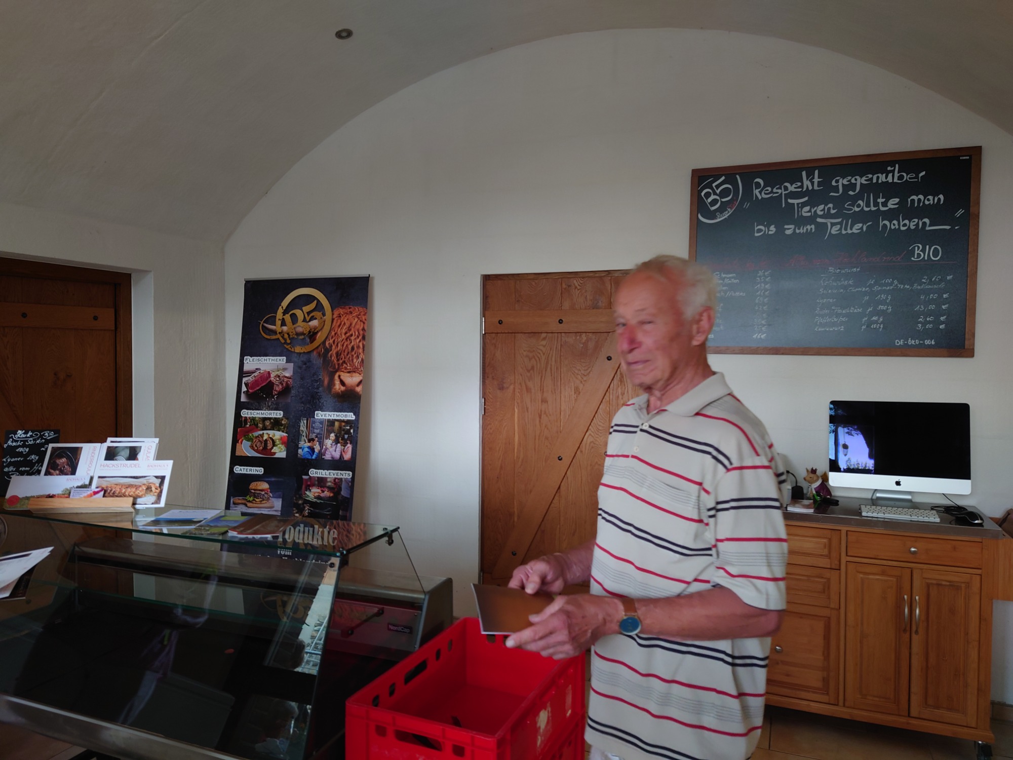 Seit 1 Jahr wird hier im kleinsten Schlachthaus von Europa geschlachtet. Es konnte dem Metzger bei der Zerlegung eines Rindes zugeschaut werden.