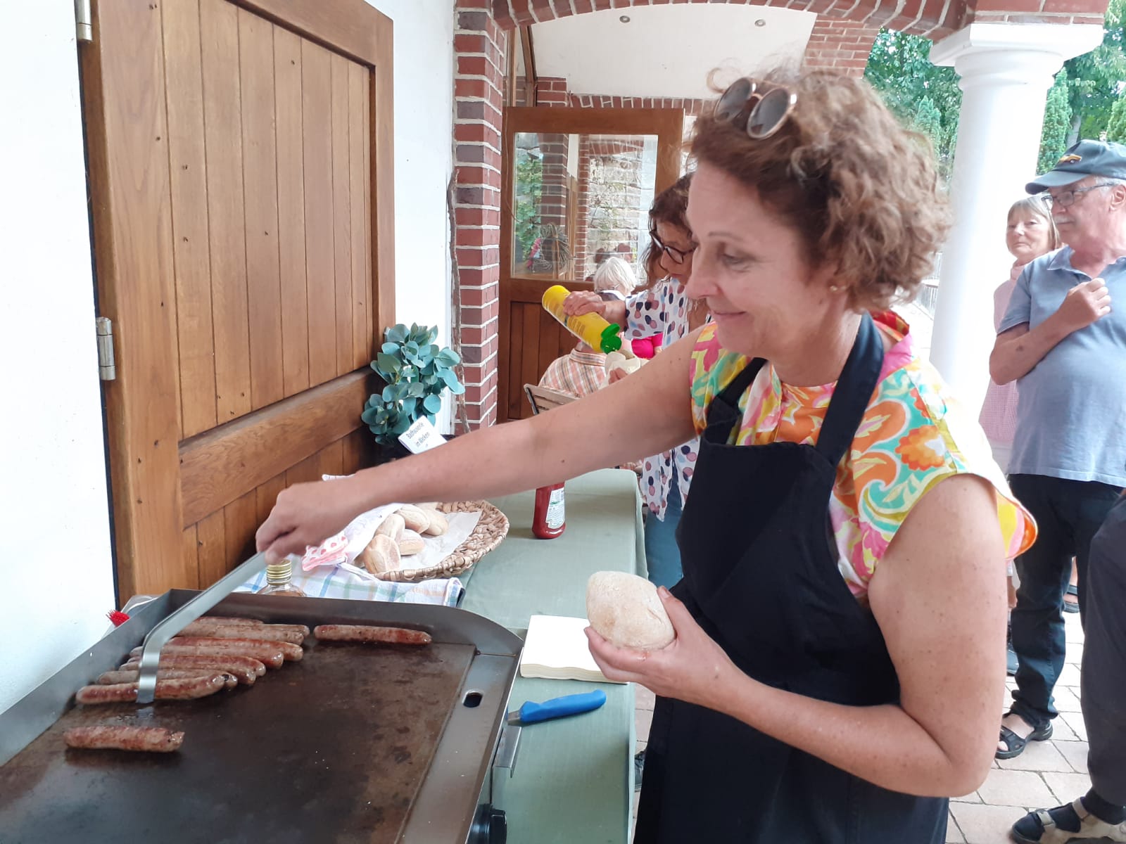 Im Anschluß wurde die Gruppe bewirtet, es gab selbst hergestellte Badhauserl Würste vom Grill im leckeren Weggle und Getränke.