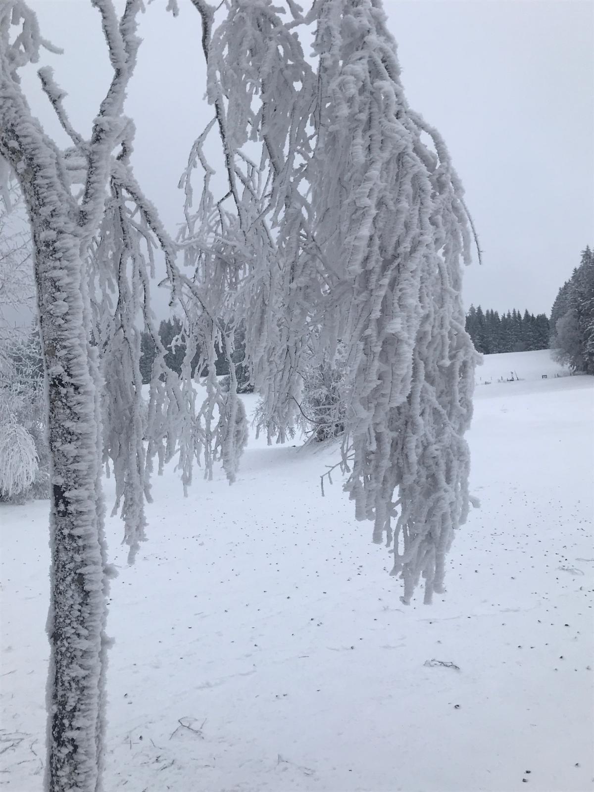 Nach einem fast schneelosen Januar starteten wir bei grauem und nebligen Wetter und fanden am Eschacher Weiher reichlich Schnee. 9 Neulinge im Schneeschuhwandern und drei „Betreuer/innen“ (Gertrud, Christine, Uli) erwartete zunächst dichter Nebel. Da wir drei uns dort bestens auskennen - kein Problem. Nachdem alle Schneeschuhe mit Unterstützung und Anleitung festgeschnallt waren, ging es mit vorsichtigen Schritten los. Langsam und umsichtig gewöhnten sich die Neuen bald an das ungewohnte, etwas breitere Gehen mit Schneeschuhen. Erschwerend war zunächst der leicht verharschte, verblasene Schnee. Das änderte sich bald und griffiger Neuschnee erleichterte das kräfteschonende, leicht gleitende Gehen. Tipps und Anregungen zum Gehen in unterschiedlichem Gelände wurden willig angenommen und sofort umgesetzt. So hatten alle bald Vertrauen in die ungewohnten Schneeschuhe gefasst und bewältigten leichte Steigungen oder Abstiege problemlos. Peter übernahm bald für mich das Vorspuren im tieferen Schnee. Danke! Da wir donnerstags unterwegs waren, konnten wir im Brotzeitstüble einkehren. Wir genossen die wohlige Wärme aus dem Kachelofen, die feinen Suppen und Kuchen und auch die gesellige Runde. Fast mussten wir zum Aufbruch drängen, da der Rückweg noch bevorstand. Letzte Hinweise zum Umgang mit den Schneeschuhen (Steighilfe, Stockeinsatz, Verhalten bei steileren Auf- und Abstiegen) begleiteten den Rückweg. Unterwegs war auch Zeit zum Fotografieren der unglaublichen Winterlandschaft. So kamen alle zufrieden und voller Stolz am Parkplatz an. Ein unvergesslicher Schneeschuhtag! Dank an Christine und Uli für die wertvolle Unterstützung!