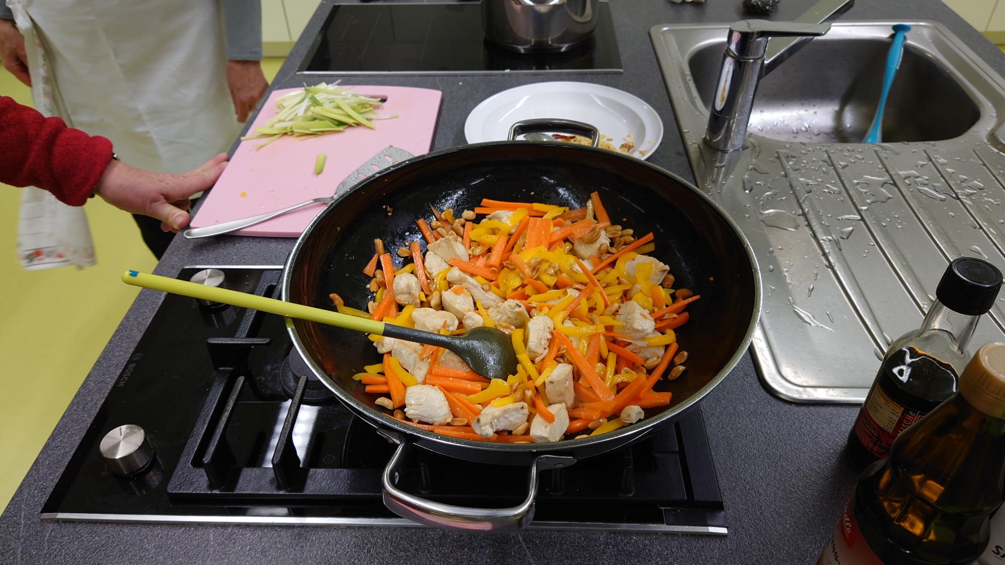 We discuss very interesting topics like cooking, travelling by bike, traditions all over the world or sustainabilty. Our two teachers have all the time a lot of good ideas.