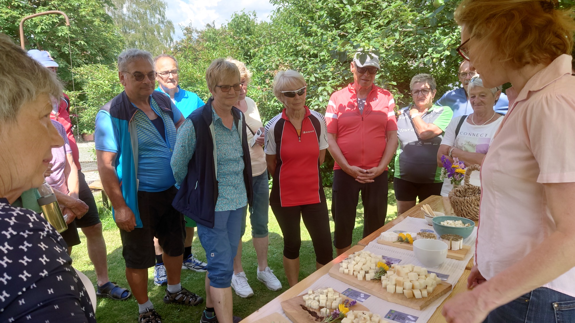 Nach viel Information über den Hof, die Ziegen, die Milch und die Käseherstellung durften wir die verschiedenen sehr leckeren und wunderhübsch präsentierten Käsesorten noch verkosten.