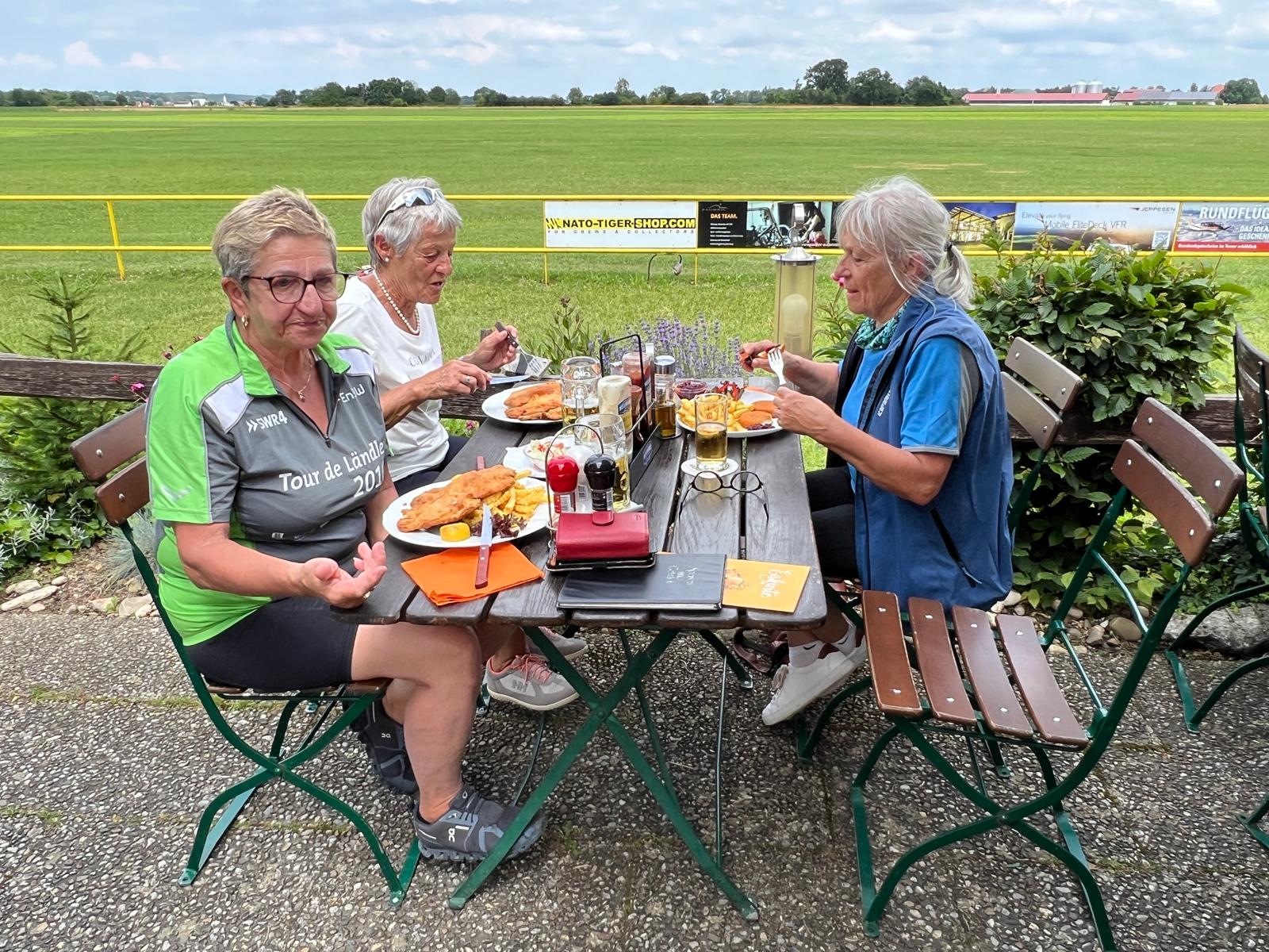 Nach der sehr interessanten Führung und einer kurzen Radstrecke stand für uns das Essen am Flugplatz Tannheim auf dem Programm.